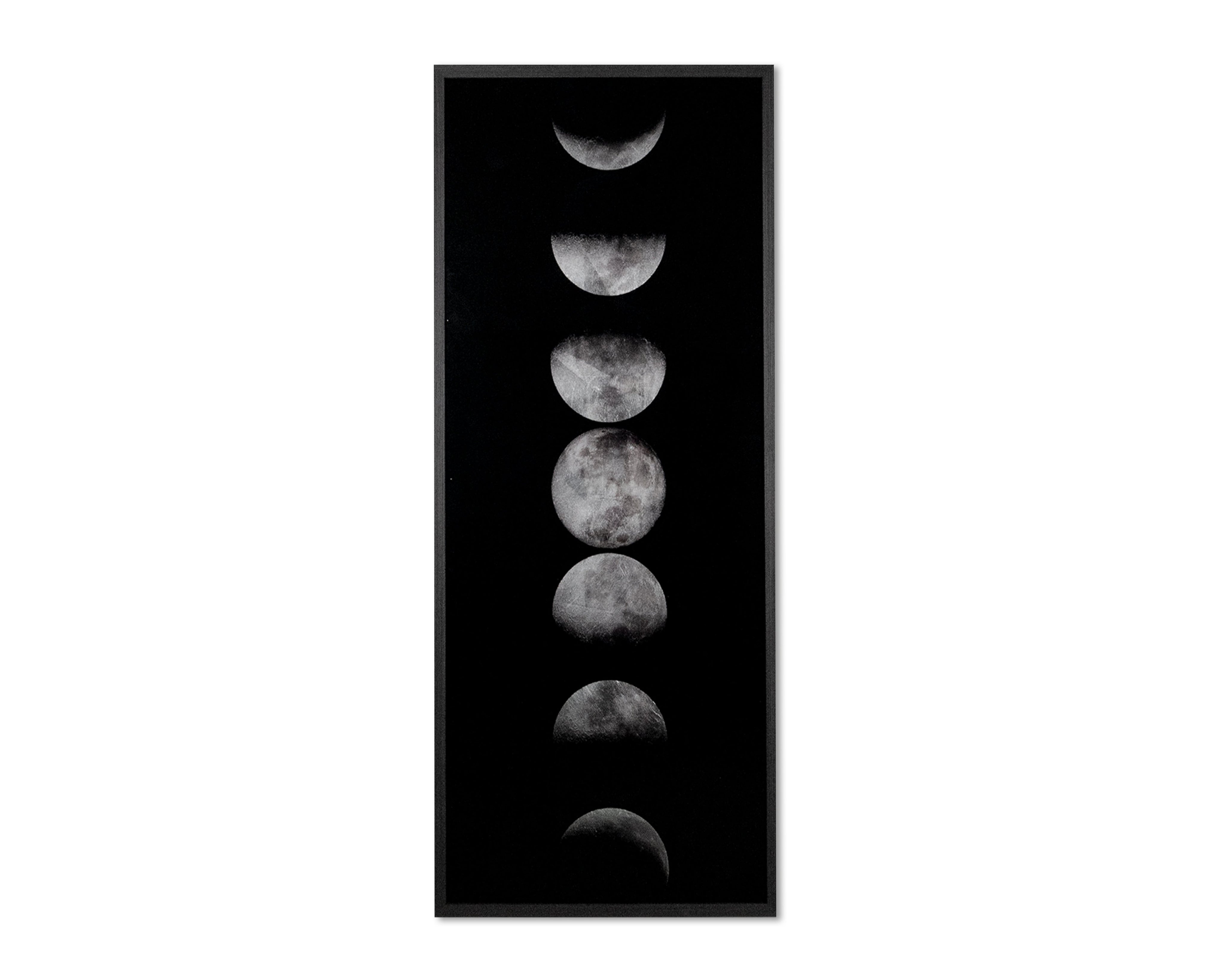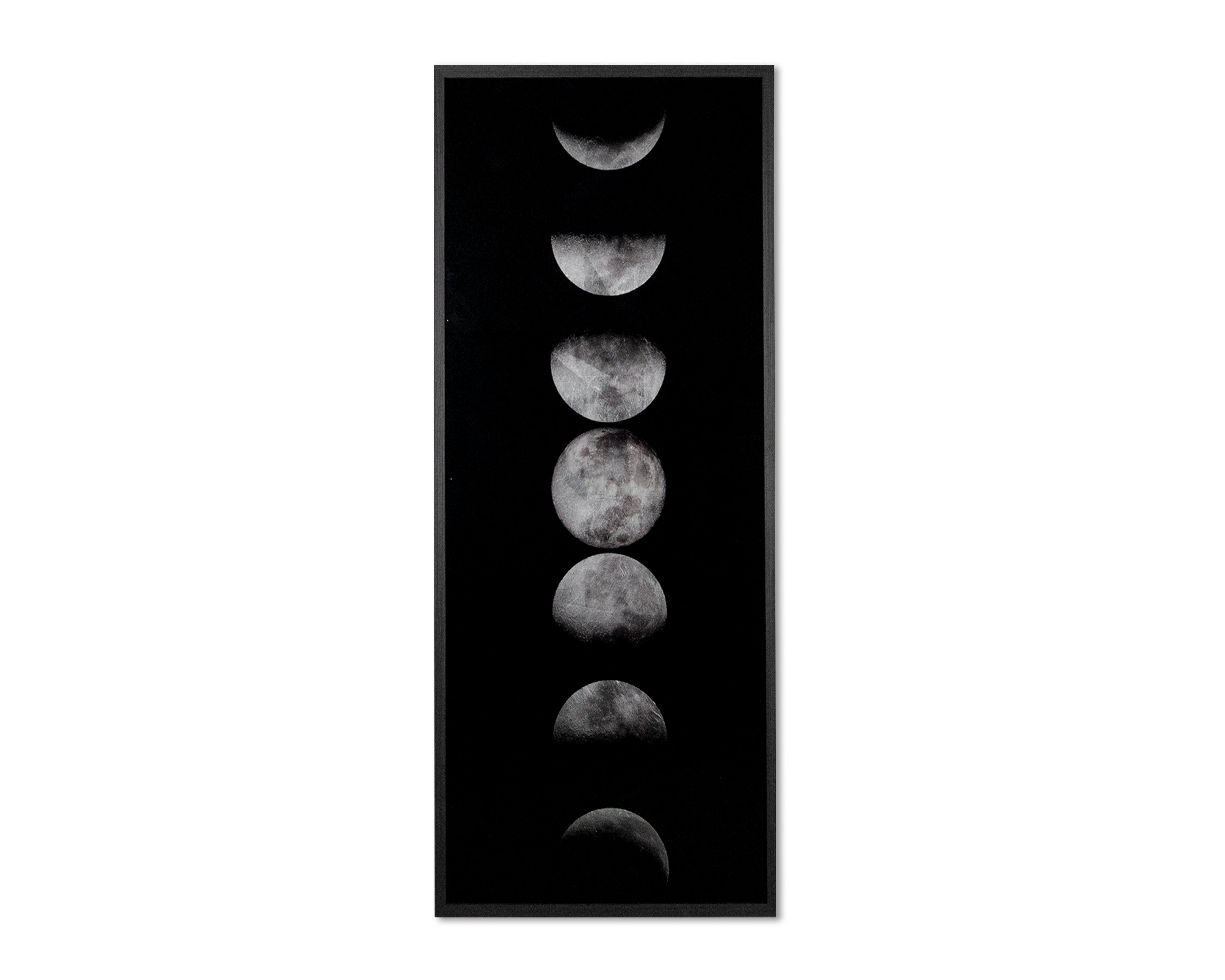 A landscape piece that depicts the natural beauty of lunar phases. Add a celestial touch to your space with this artwork that is part of our Luxe Art collection. This reverse printed acrylic piece with silver leaf accents is completed with a brushed solid wood frame in charcoal. Due to the reflective nature of acrylic and silver leaf, images on site may not capture the artisanal characteristics precisely.