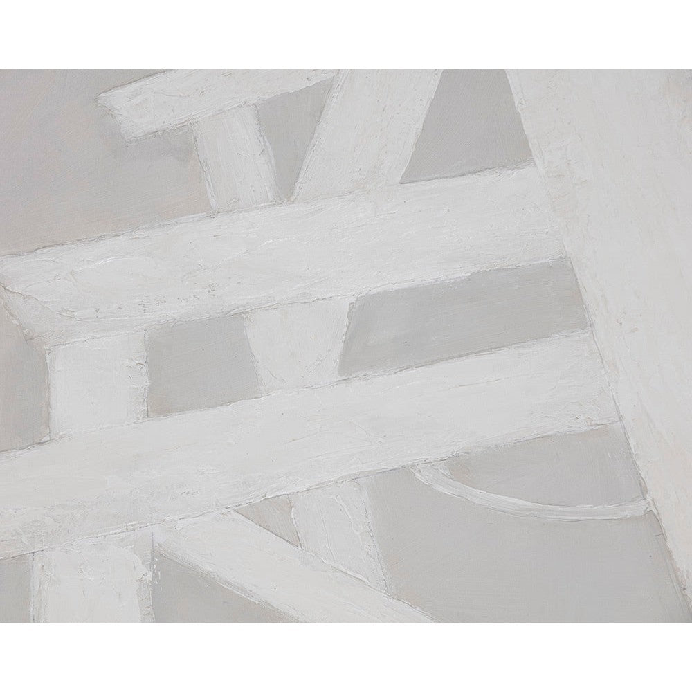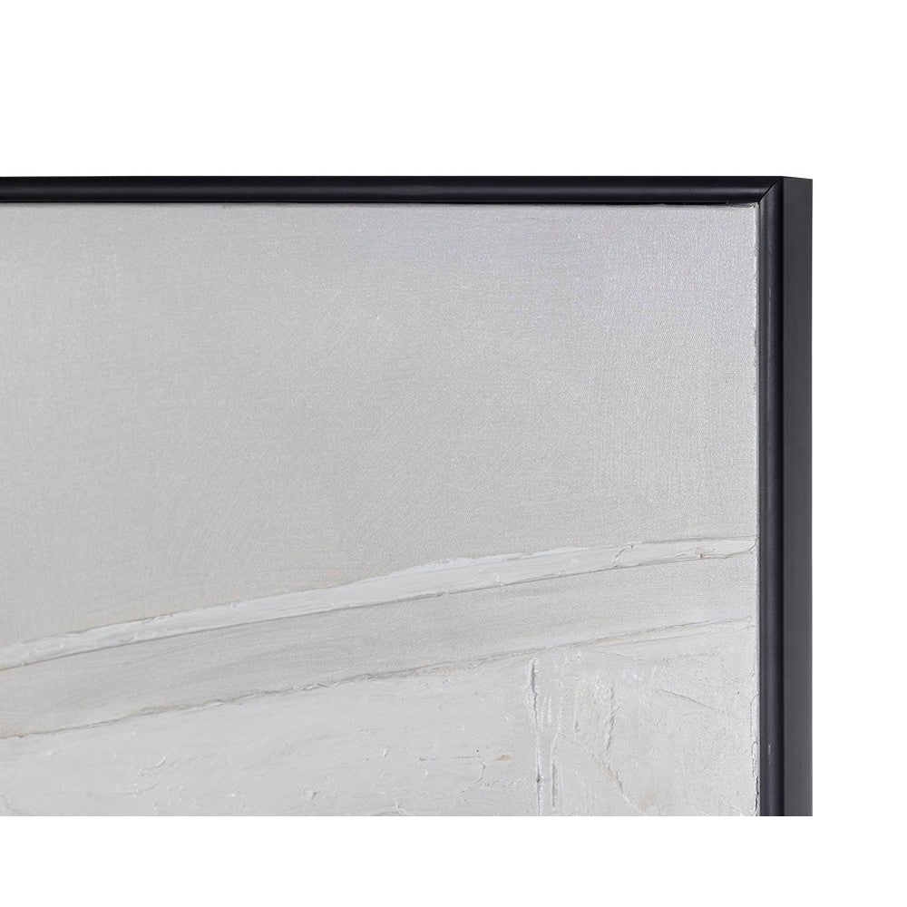 This contemporary painting is created with monochromatic brush strokes for a bold and stylish design. Features a black finished wood floater frame. Each artwork is hand-painted and will feature slight variations that make every piece unique.