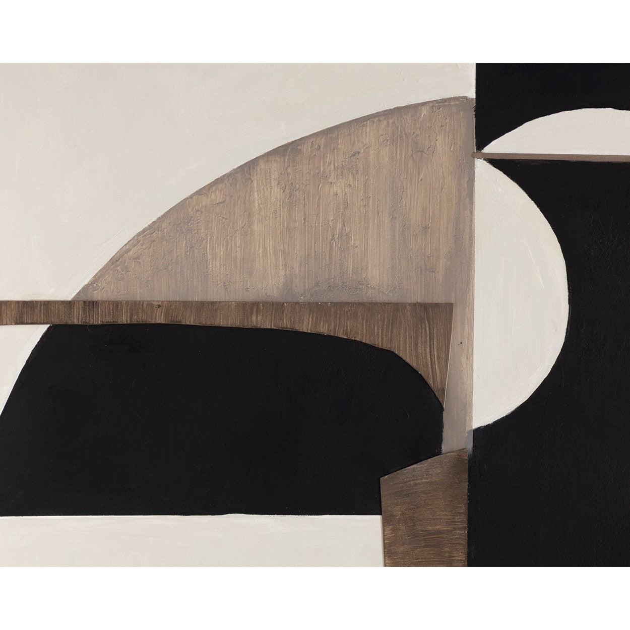 Good Neighbours is a story of abstract shapes and neutral tones. Strokes of brown paired with the solid colours of black and white add depth and dimension to each part of the diptych. Features a black wood floater frame. Each artwork is hand-painted and will feature slight variations that make every piece unique.
