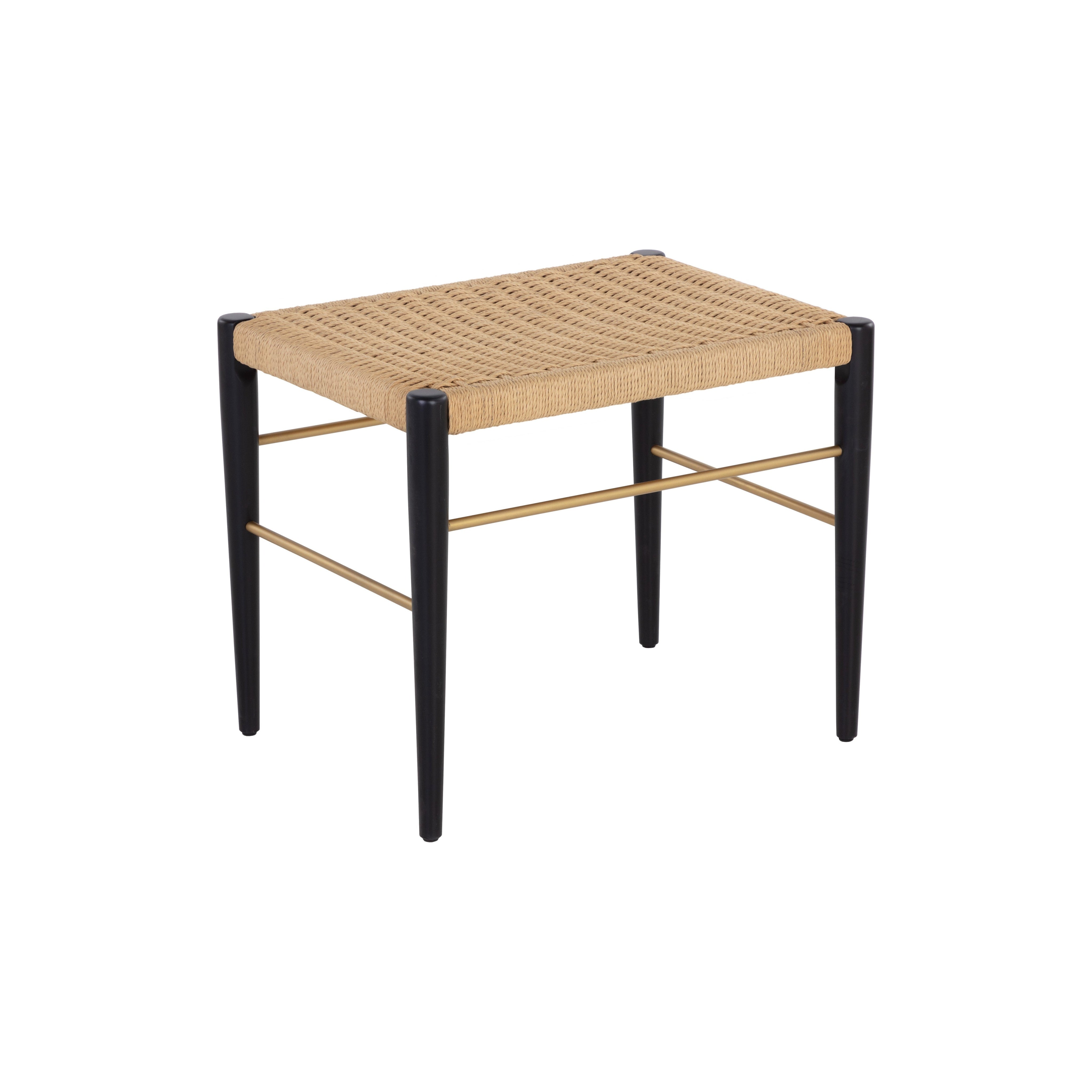 This modern take on a classic stool design offers timeless style for any space. Features a black beech timber wood frame with a natural rope seat.