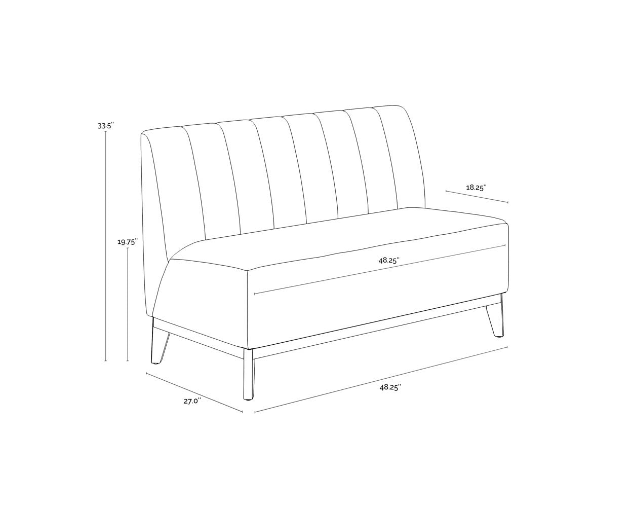 Elegantly designed, the Kosovo Banquette exudes luxe comfort. Upholstered in abbington navy fabric with vertical tufting, and completed with brown birch wood legs. As wood is an organic, porous material, these pieces will contain natural variation of texture and may also exhibit fine indentations and cracks. Wood pieces will also display a disparity of colour and grain, and visible knots and burls that add to the character of each piece.