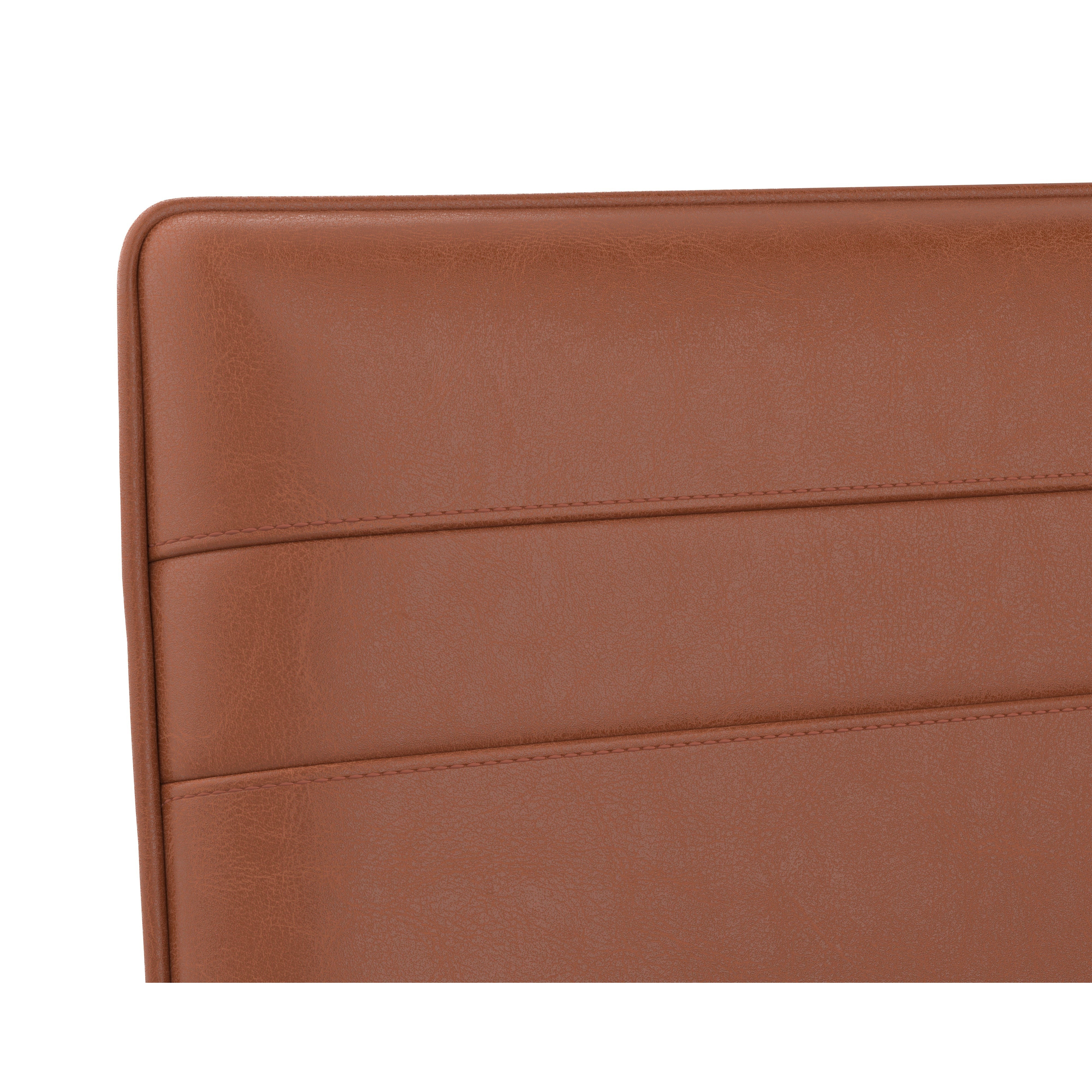 With a stylish, minimalist design, this mid-century modern banquette is a perfect addition to any space. Stocked in hazelnut faux leather and completed with a matte black powder-coated metal base. Handle With Care: This design has been crafted with faux leather. Faux leather is manufactured to reflect the natural characteristics of leather; as such, colour variations, markings wrinkles, grooves, and light scratches are appreciated characteristics. No two pieces will be alike. Visit our Product Care page for more information on how to ensure the lasting beauty of this piece.