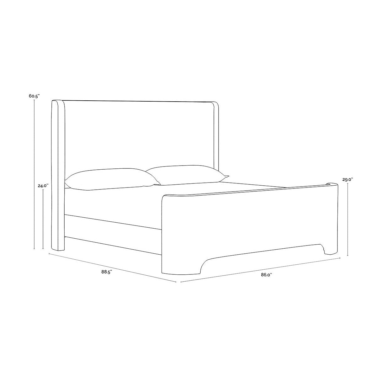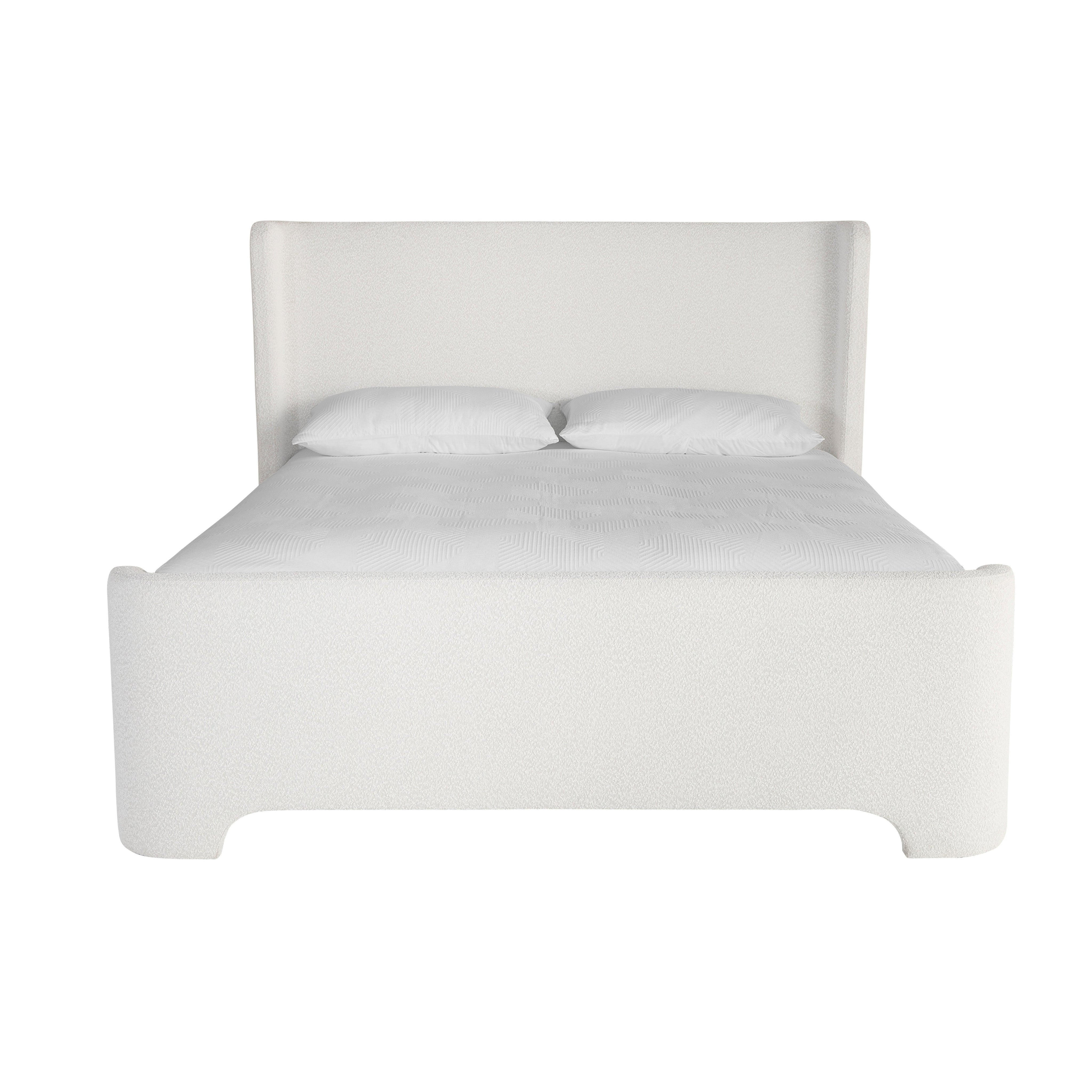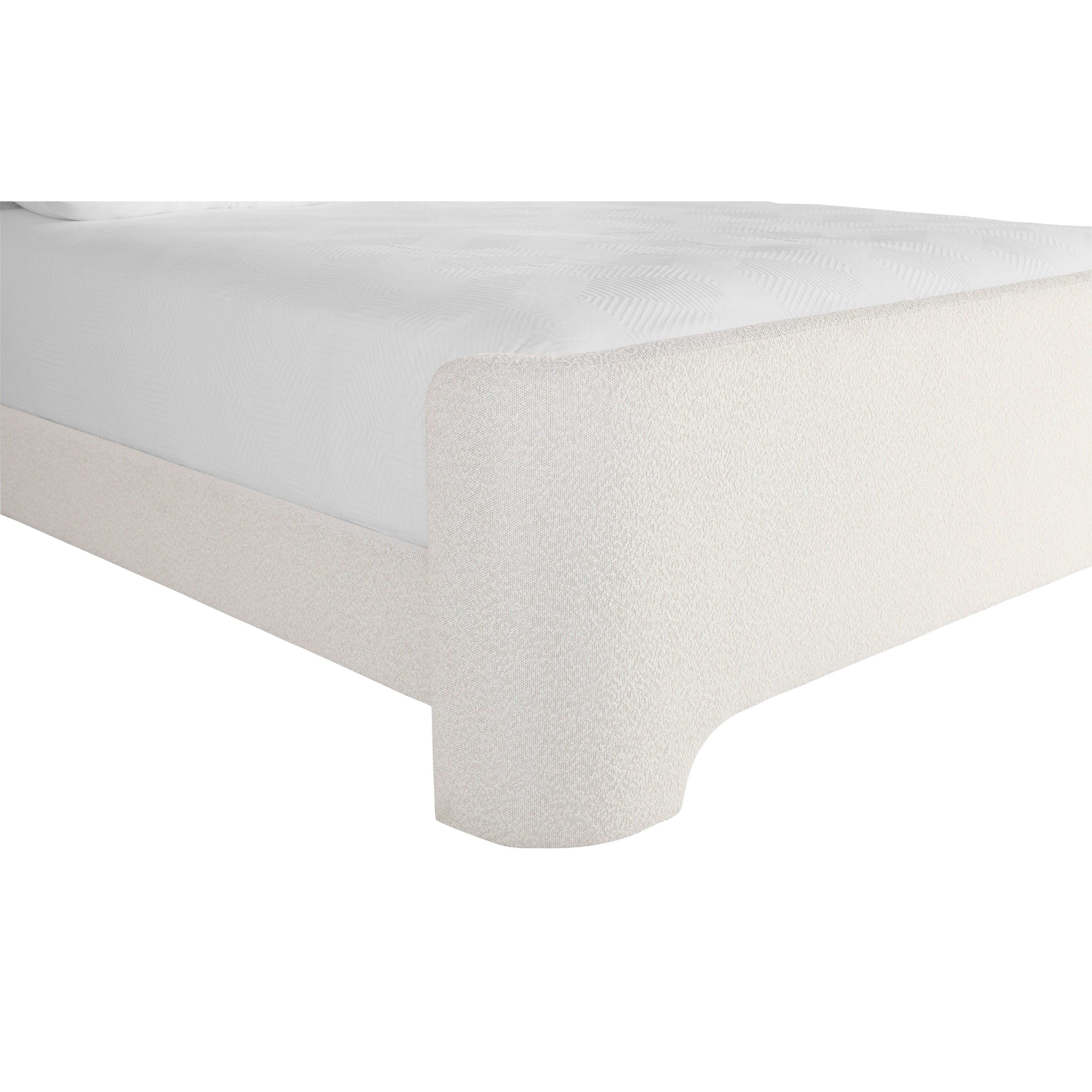 Sculpted subtle curves give the Ives Bed a gentle profile designed for the perfect slumber. Fully upholstered in copenhagen white boucle fabric. No box spring is required and slats are included.