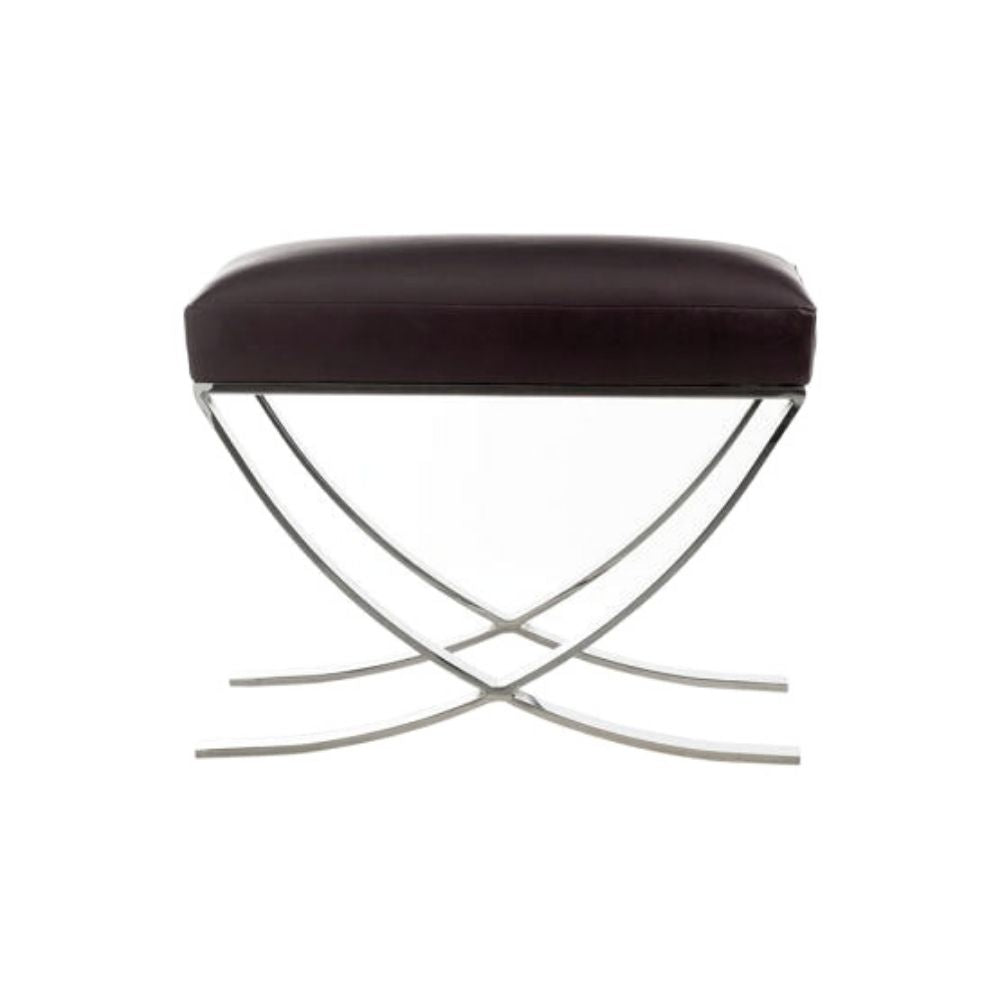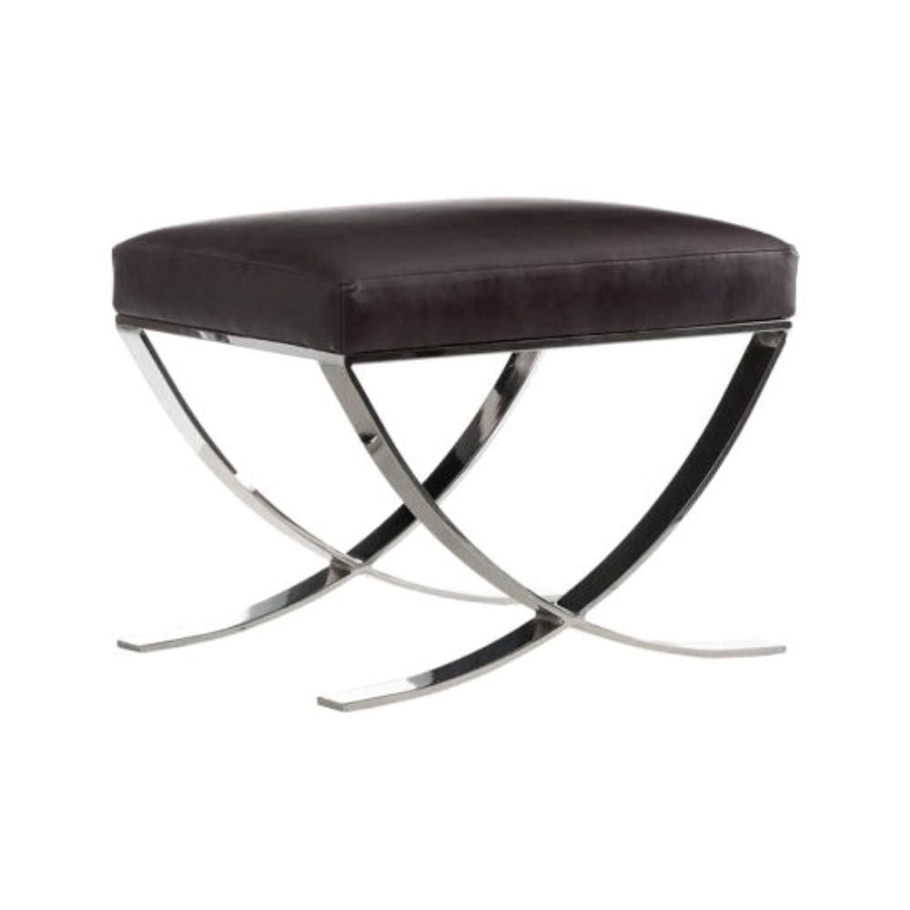 Add a flash of panache wherever you want with this dramatic sabre bench design. The mirror chrome finish on the legs will enhance any look you choose from our large selection of upholstery fabrics. Select a solid, a pattern or a bold print. Right-sized at 24.5”, your sabre bench will fit just about anywhere and yet it offers ample space as an extra seat, foot stool or table.