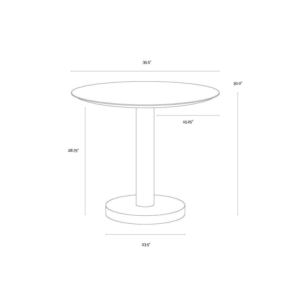 This bistro table offers a modern look with an organic feel. Features a substantial light grey marble and brushed gold iron base with a charcoal grey finished oak wood veneer top. As marble is a natural material, unique veining, pitting, fissures, micro-cracks and colour variations are all characteristics that add to the uniqueness and beauty of each piece. As wood is an organic, porous material, these pieces will contain natural variation of texture and may also exhibit fine indentations and cracks. Wood pieces will also display a disparity of colour and grain, and visible knots and burls that add to the character of each piece.