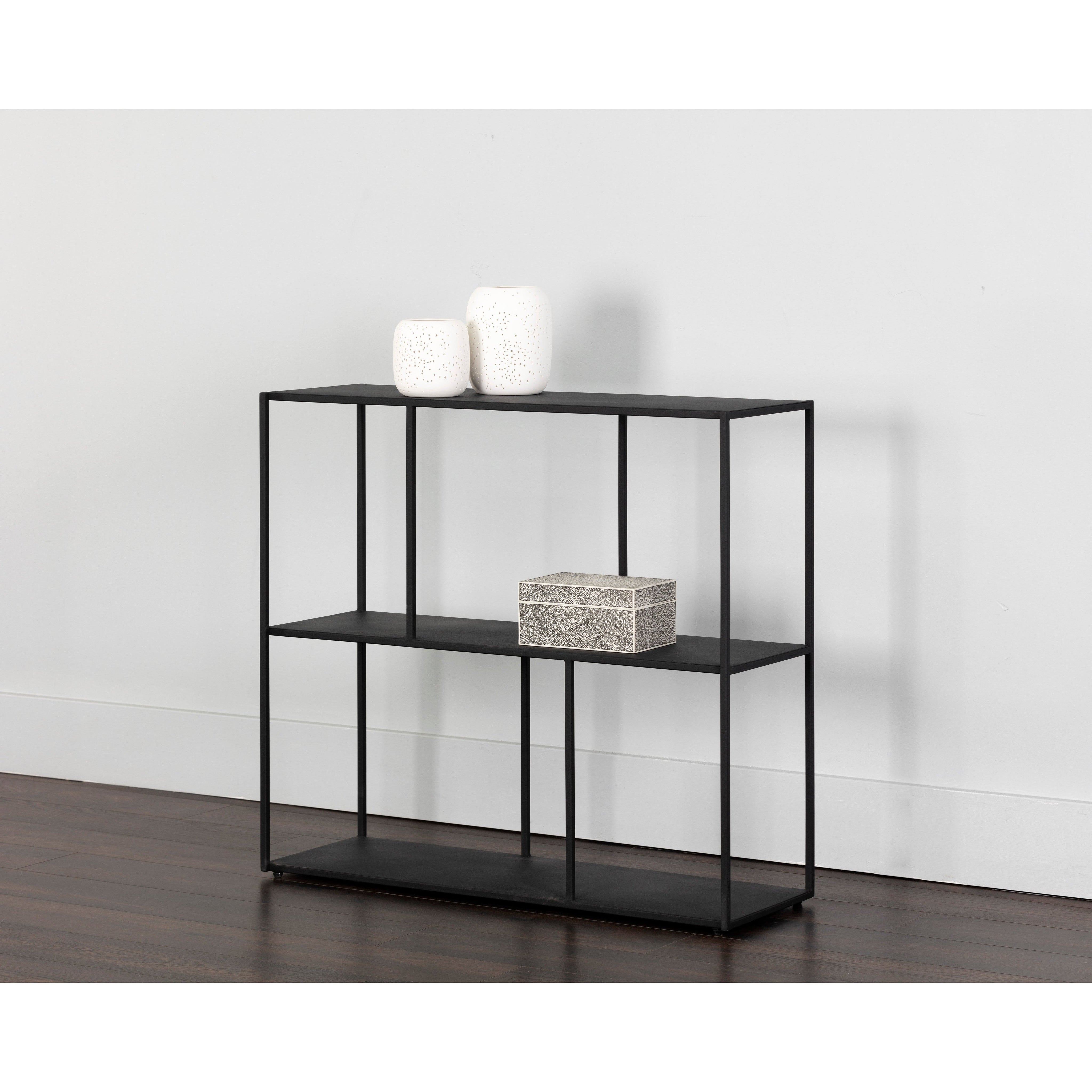 Add style and warmth to living and office spaces with this well-designed low bookcase in matte black iron. Can be placed in pairs or multiples for added impact and functionality. Anti-tipping kit included.