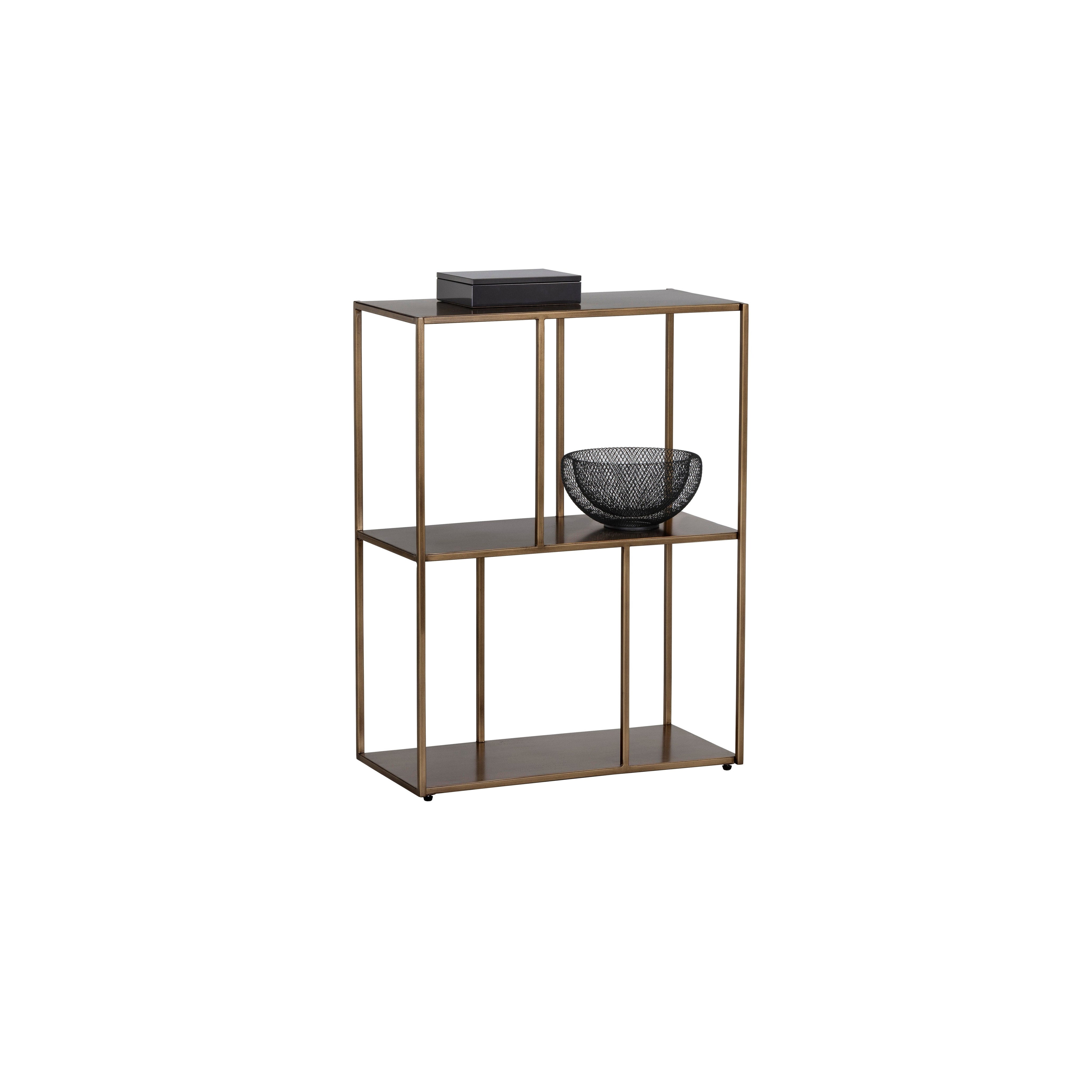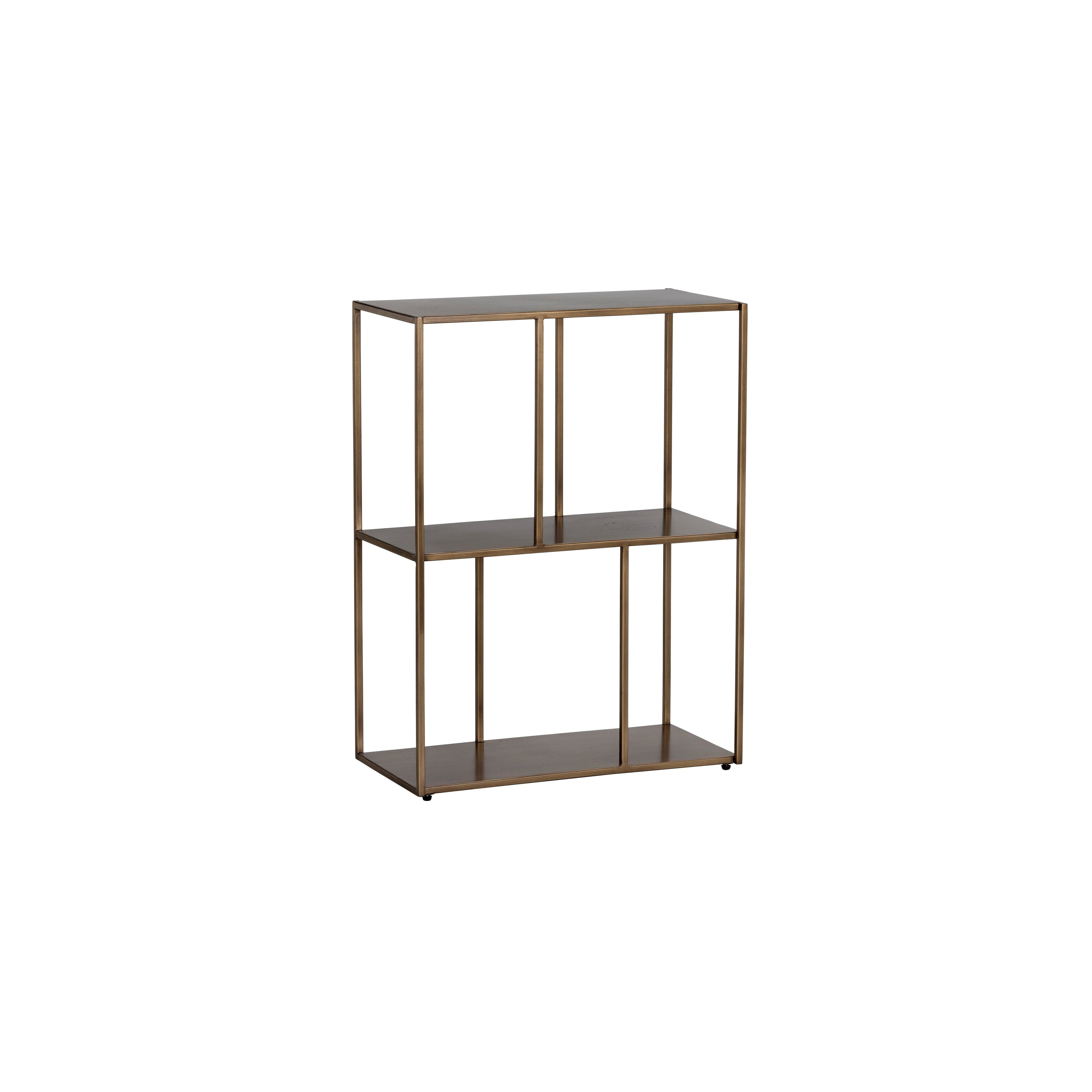 Add style and warmth to living and office spaces with this well-designed low bookcase in antique brass iron. Can be placed in pairs or multiples for added impact and functionality. Anti-tipping kit included.