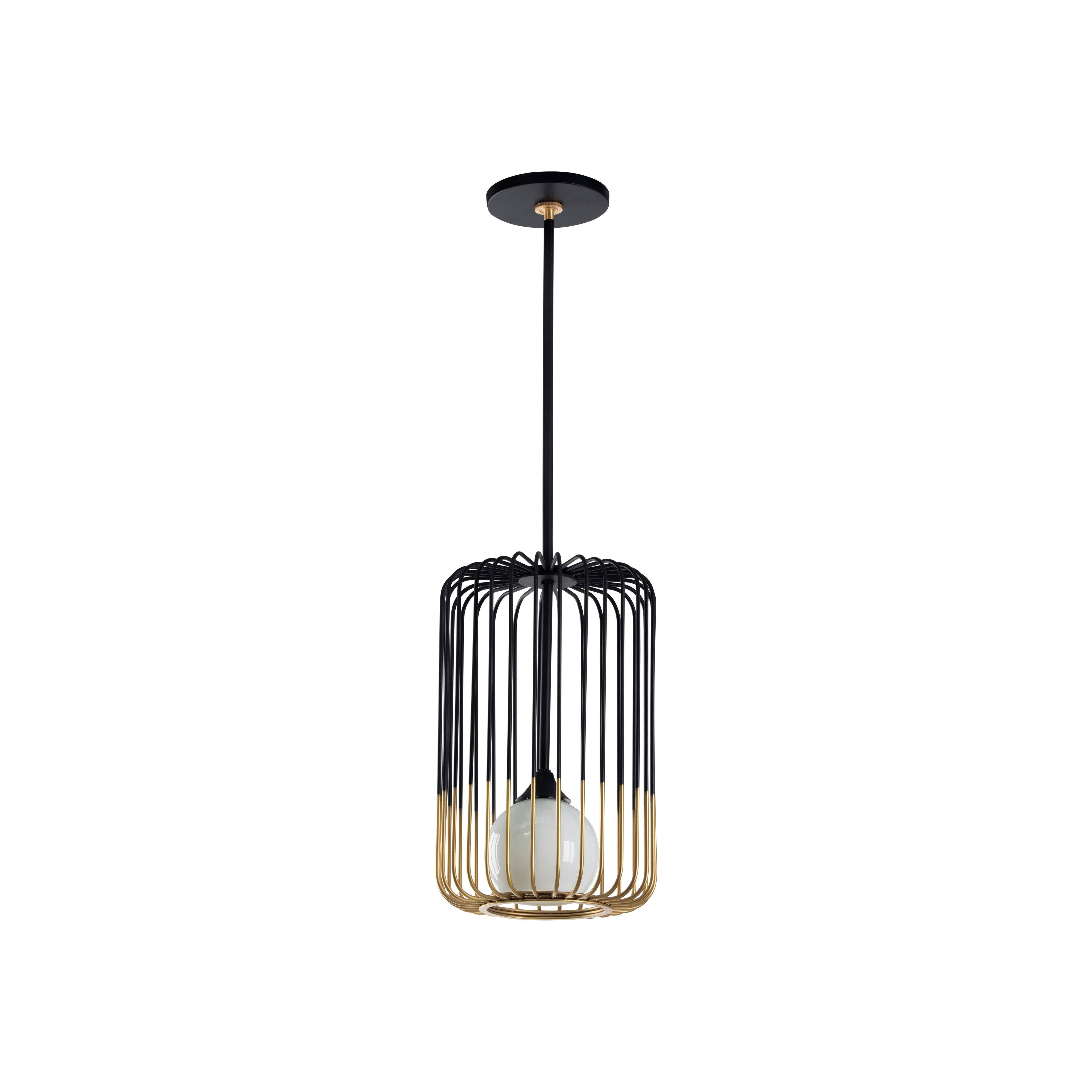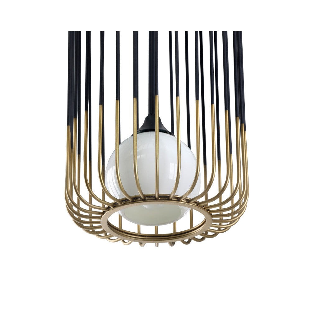 A fusion of industrial and Art Deco design unite to create this captivating pendant light. Features a misted glass globe encapsuled by a brushed black and brass frame for additional depth. Made in India. With refined craftsmanship, this design was brought to life by skilled local artisans. Due to the nature of handcraftsmanship, unique imperfections such as fissures, markings and variations in colour and shape are welcomed and appreciated characteristics for a truly one-of-a-kind piece.