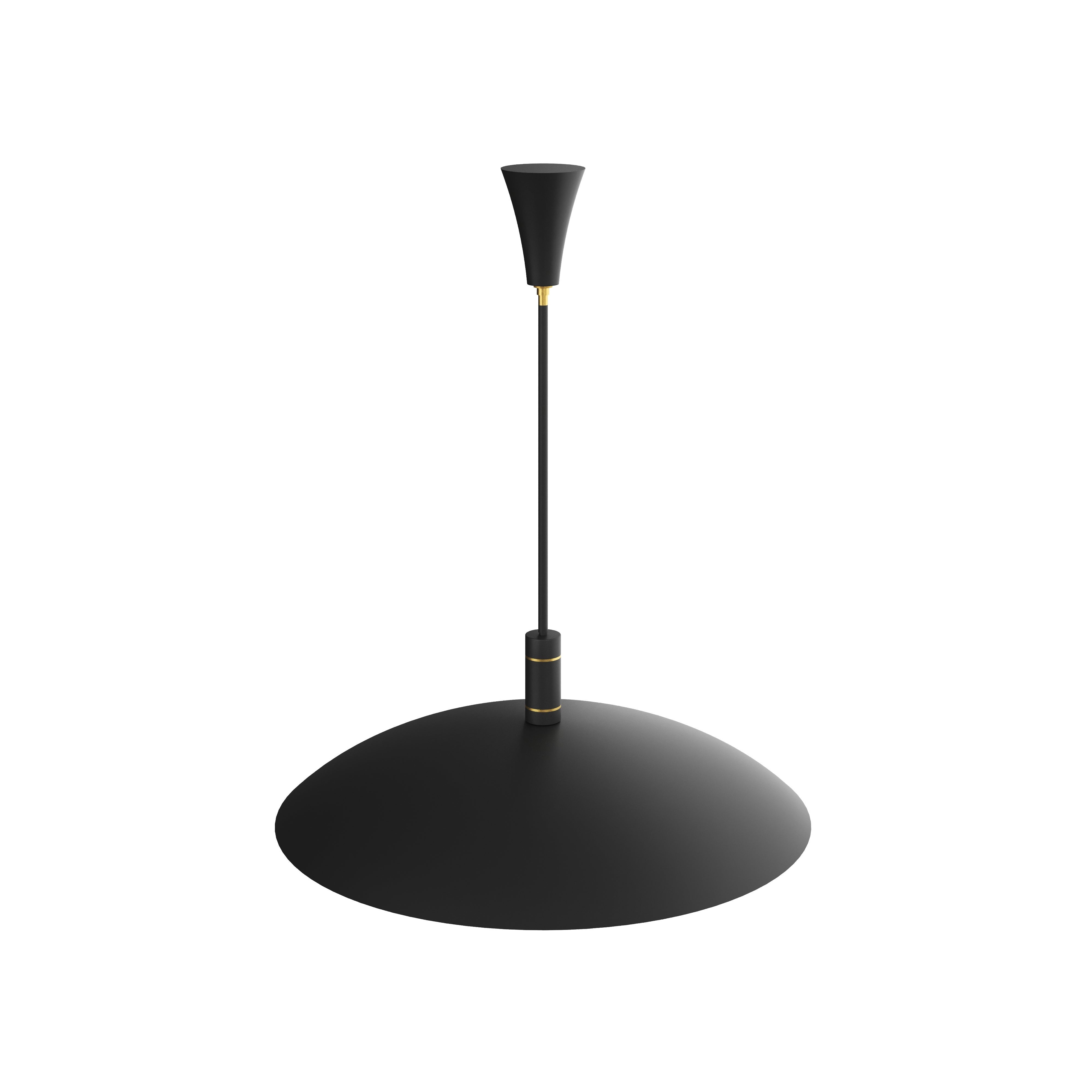 With a beautiful industrial-inspired design, this modern pendant light is a stylish addition to any space. Features a dome shape with a suspended bulb covering. Crafted with a black aluminum exterior and a brass iron interior. Made in India. With refined craftsmanship, this design was brought to life by skilled local artisans. Due to the nature of handcraftsmanship, unique imperfections such as fissures, markings and variations in colour and shape are welcomed and appreciated characteristics for a truly one-of-a-kind piece.