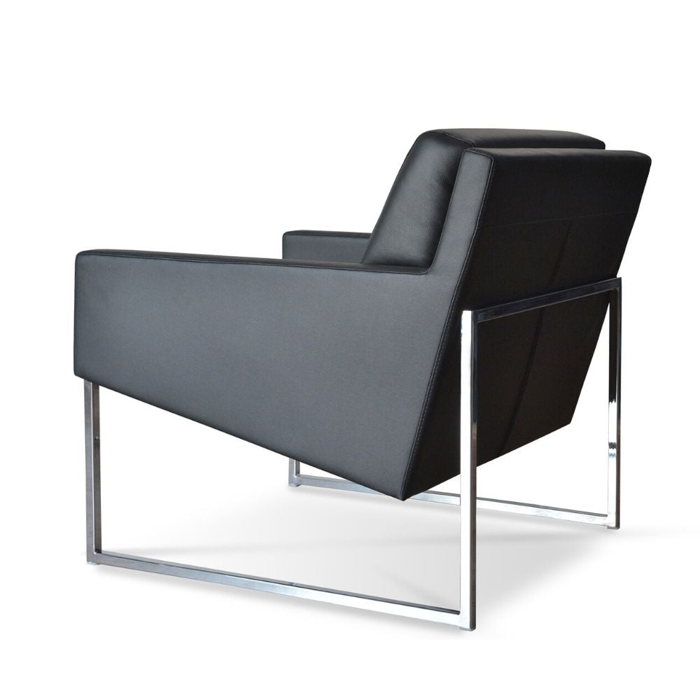 Nova Chrome & Nova Wood Occasional Chairs are available in Black & White Leatherette, Black Leather, and Grey & Red Wool Fabrics.