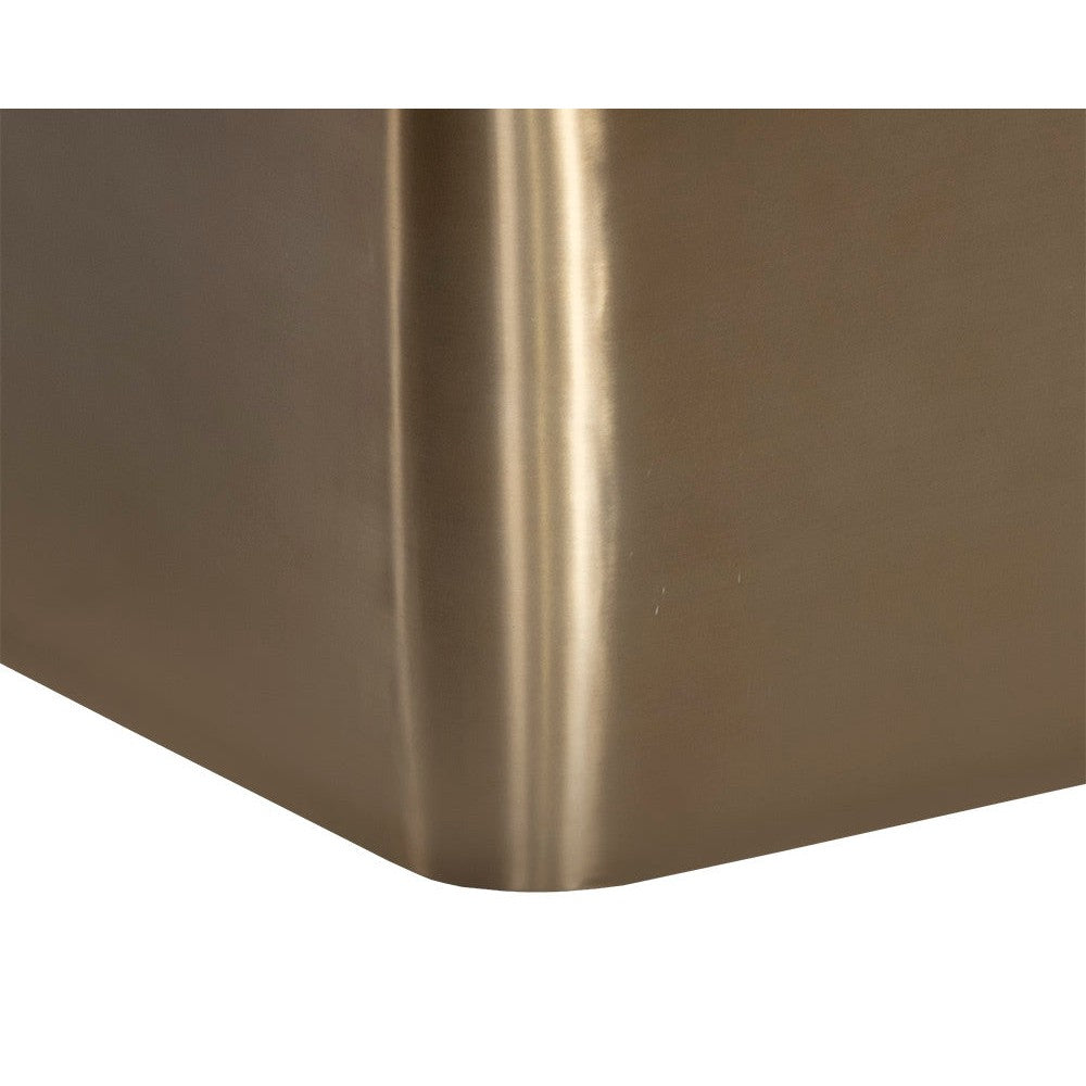 Bring boldness to any space with this eye-catching coffee table. Crafted with a rectangular stainless steel base in an antique brass finish. Completed with a grey glass top for a contemporary look.