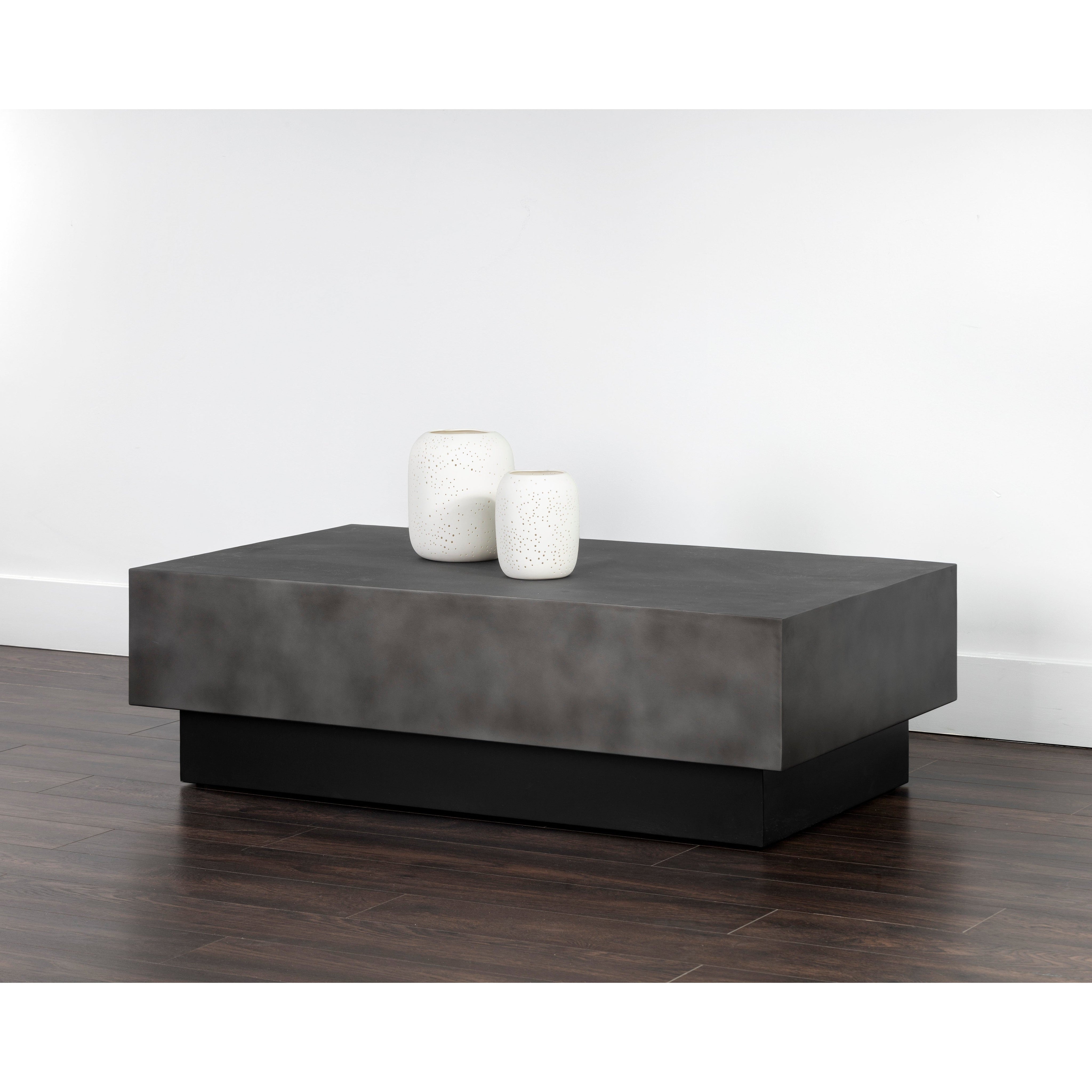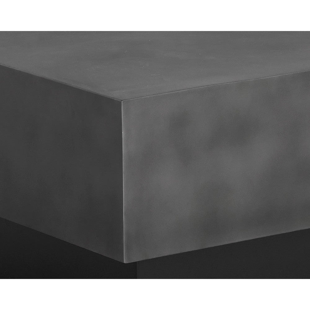 Turn heads with this contemporary, rectangular coffee table that features a bold design. Crafted with a gunmetal steel top and a matte black powder coated steel base. Made in India. With refined craftsmanship, this design was brought to life by skilled local artisans. Due to the nature of handcraftsmanship, unique imperfections such as fissures, markings and variations in colour and shape are welcomed and appreciated characteristics for a truly one-of-a-kind piece.