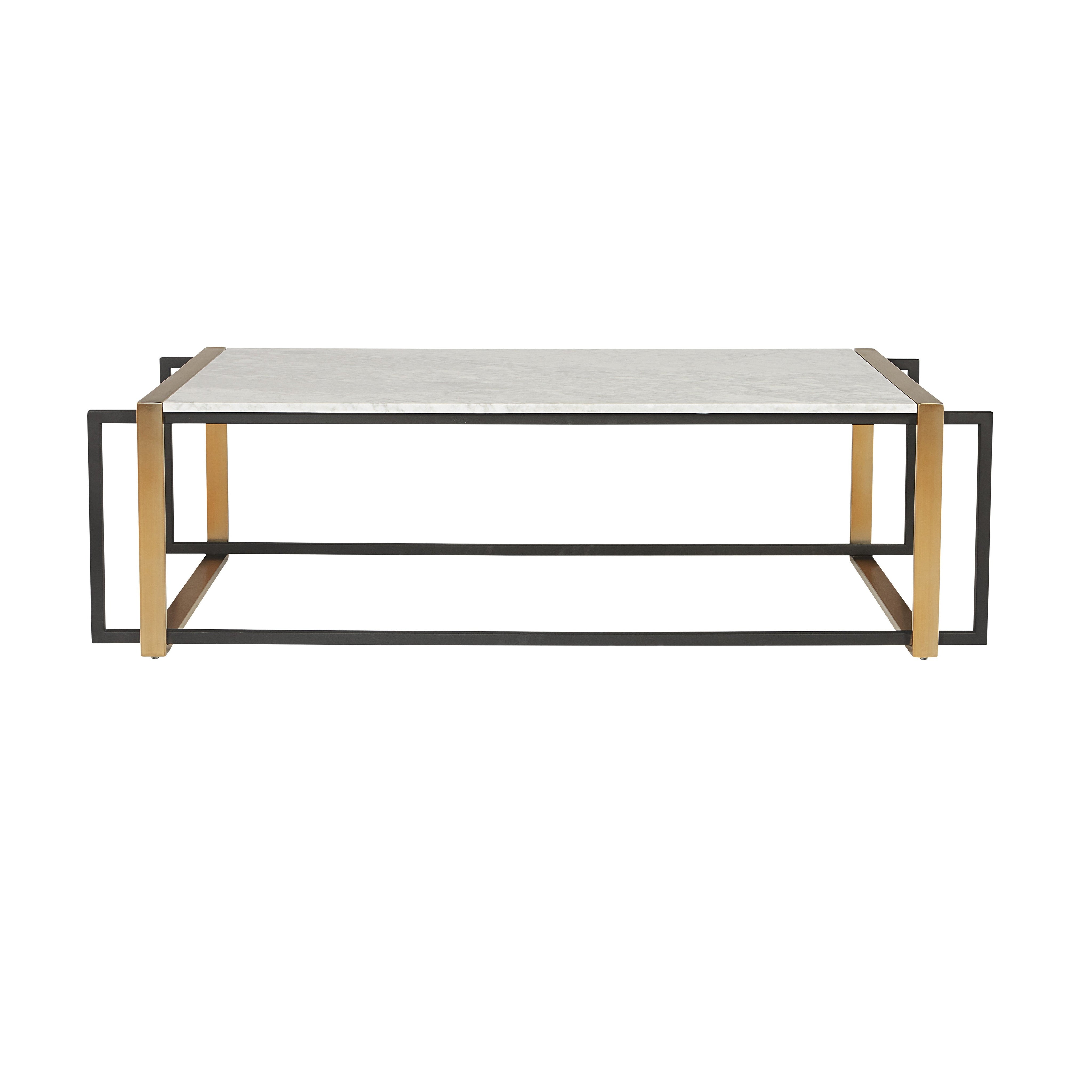 This stylish coffee table offers a streamlined design with mid-century elements. Features a beautiful white marble top and an antique brass and black powder coated frame. As marble is a natural material, unique veining, pitting, fissures, micro-cracks and colour variations are all characteristics that add to the uniqueness and beauty of each piece.