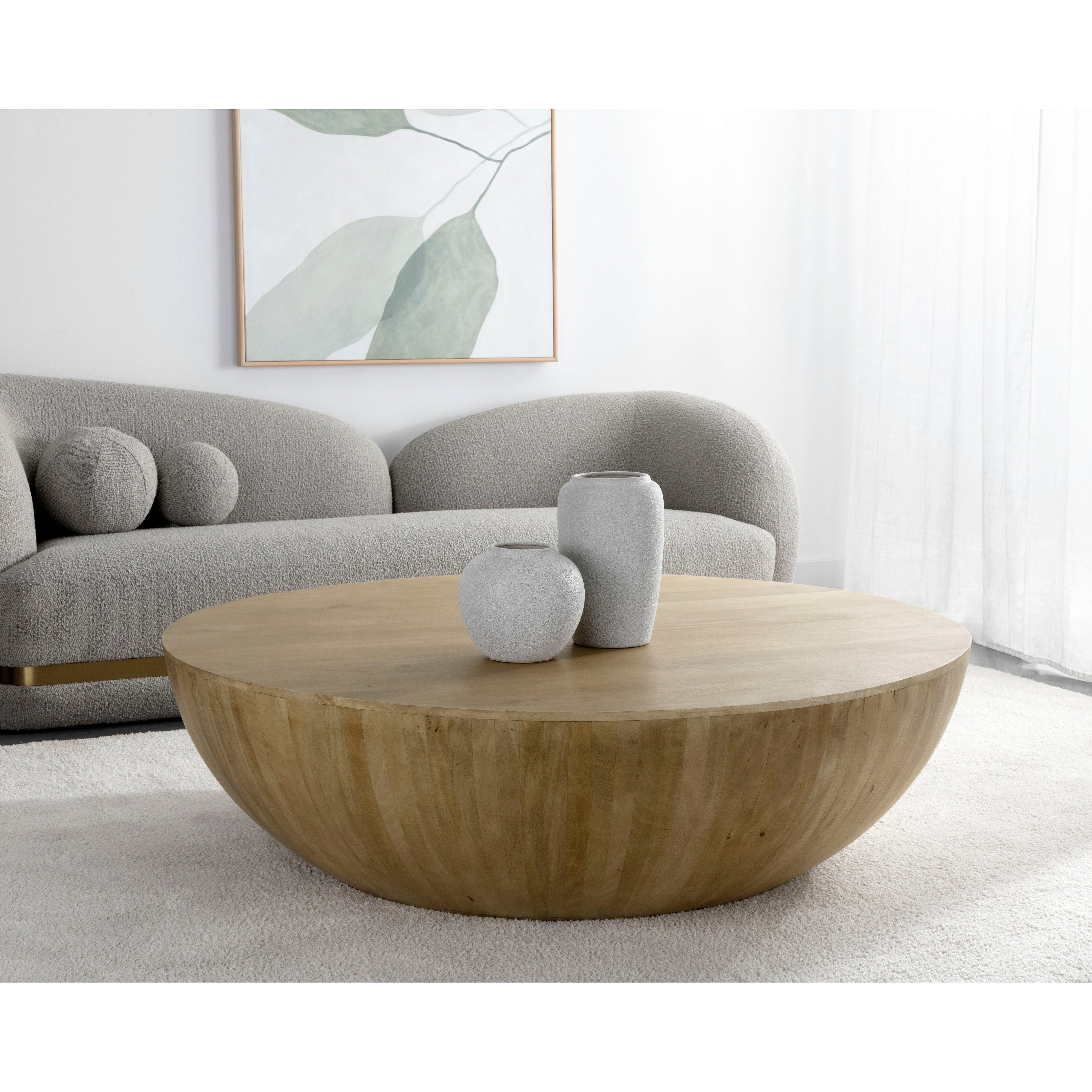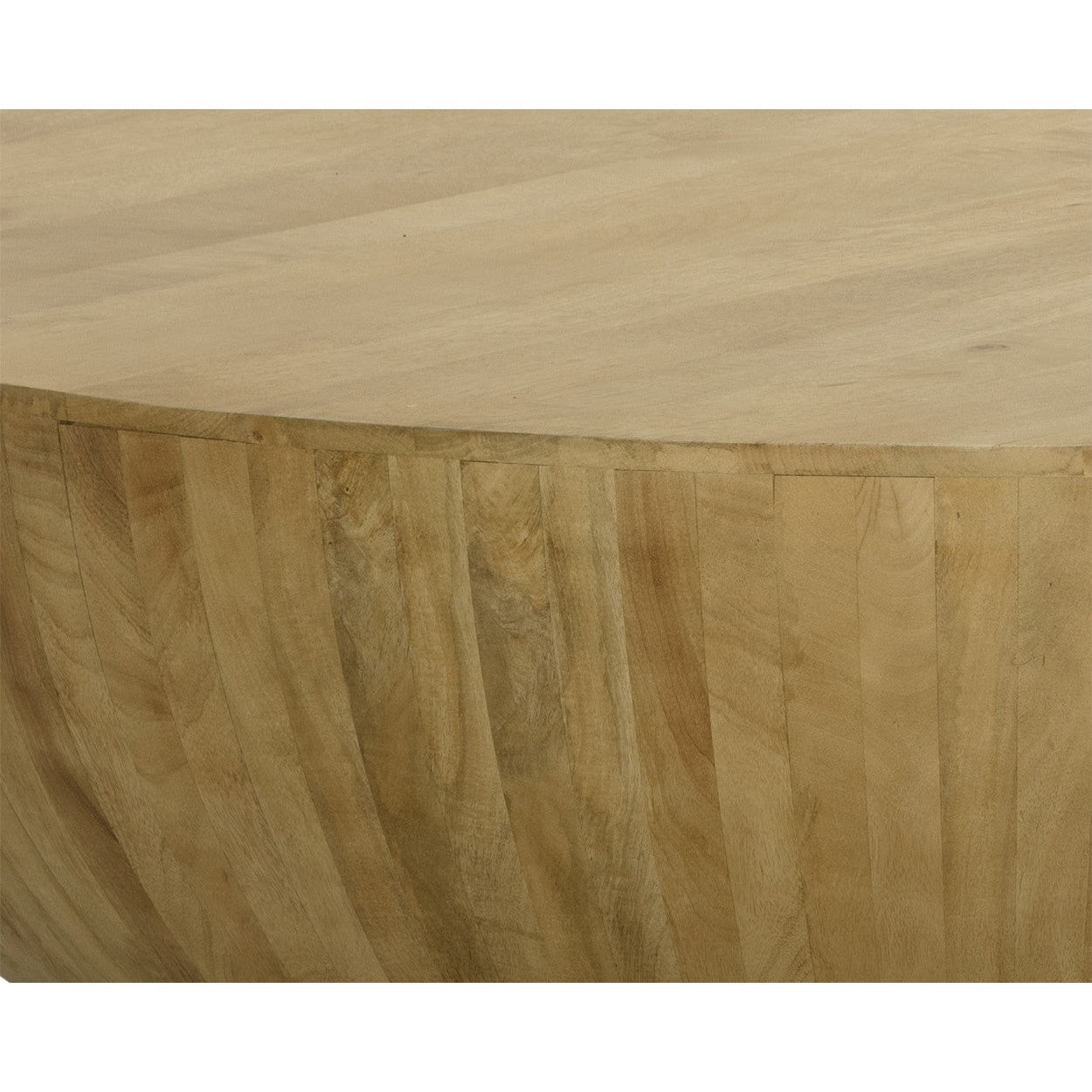 Inspired by global travels, this, round, handcrafted large drum-style coffee table will certainly add wonder to any space. Made from brown solid mango wood. Also available in a natural finish. Small version also available. Made in India. With refined craftsmanship, this design was brought to life by skilled local artisans. By nature, these materials develop unique imperfections such as fissures, markings and colour variations for a truly one-of-a-kind piece. As wood is an organic, porous material, these pieces will contain natural variation of texture and may also exhibit fine indentations and cracks. Wood pieces will also display a disparity of colour and grain, and visible knots and burls that add to the character of each piece.