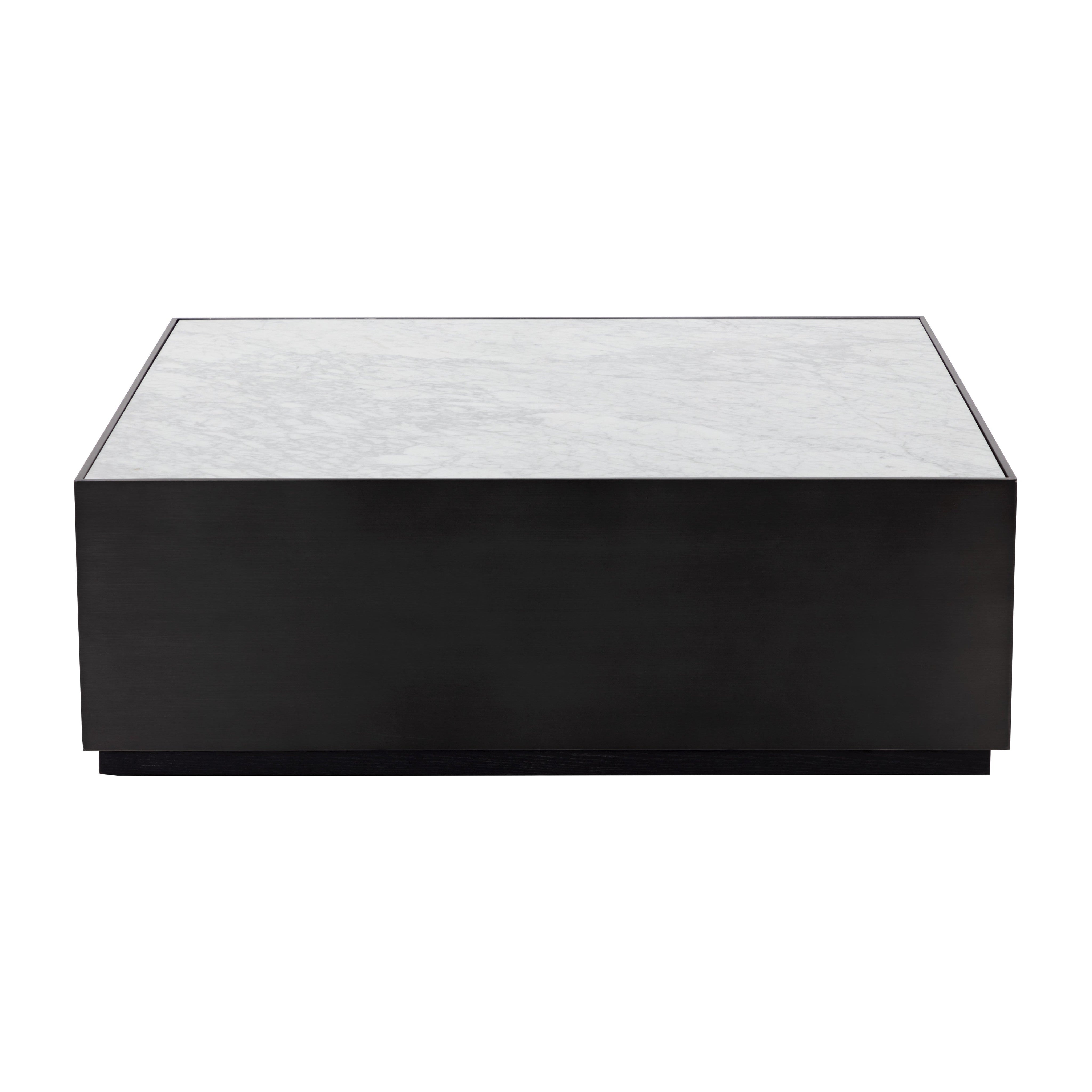 The Selah Coffee Table will elevate any modern living space with its minimal design. The white Carrara marble table top is elegantly complemented with a black powder coated stainless steel frame. Supported by a black oak wood base. As wood is an organic, porous material, these pieces will contain natural variation of texture and may also exhibit fine indentations and cracks. Wood pieces will also display a disparity of colour and grain, and visible knots and burls that add to the character of each piece. As marble is a natural material, unique veining, pitting, fissures, micro-cracks and colour variations are all characteristics that add to the uniqueness and beauty of each piece.