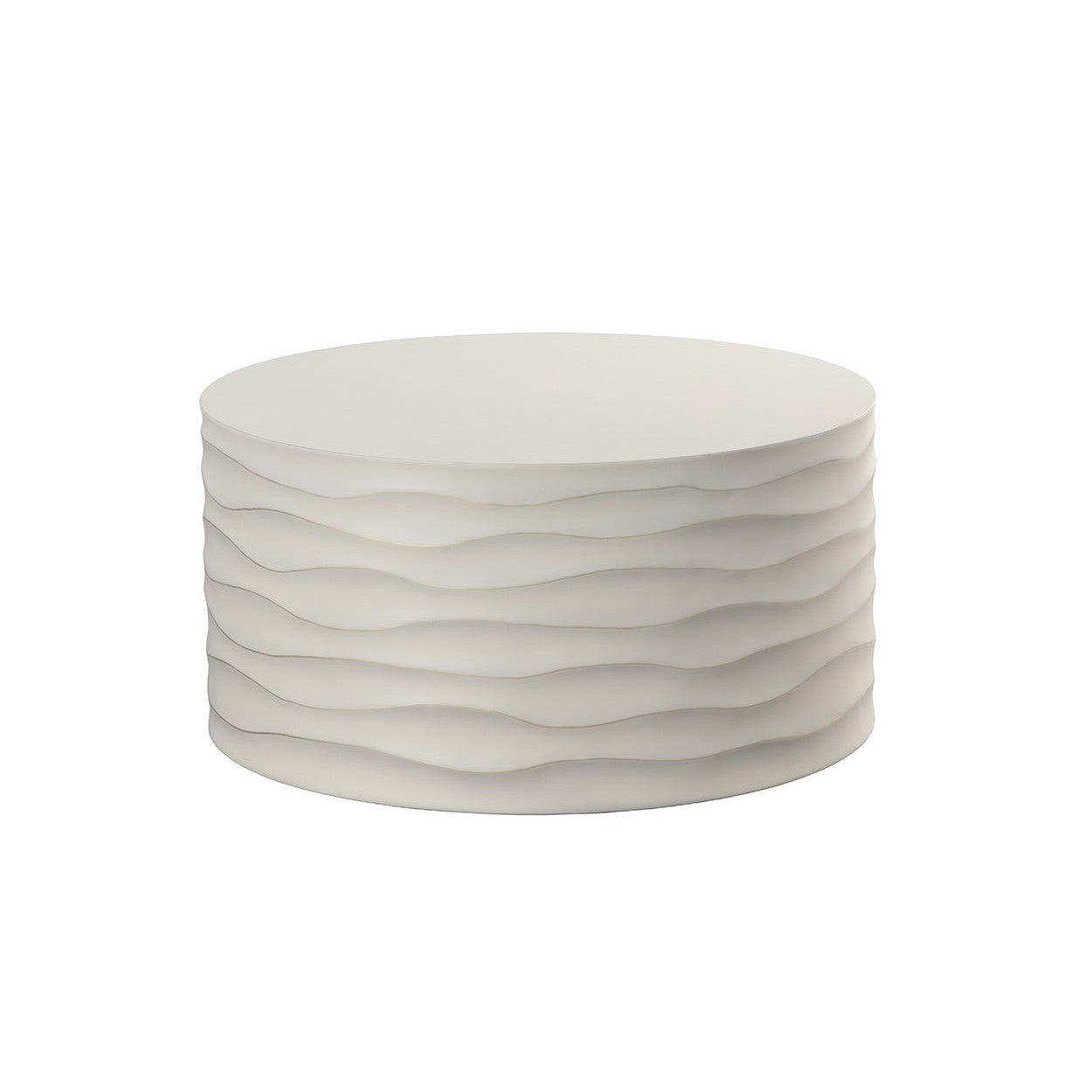 This round coffee table will bring a minimal aesthetic to any environment. Crafted from concrete, this piece features hand sculpted ridges with a painted brass finish. The perfect addition to living, lounge and office spaces.