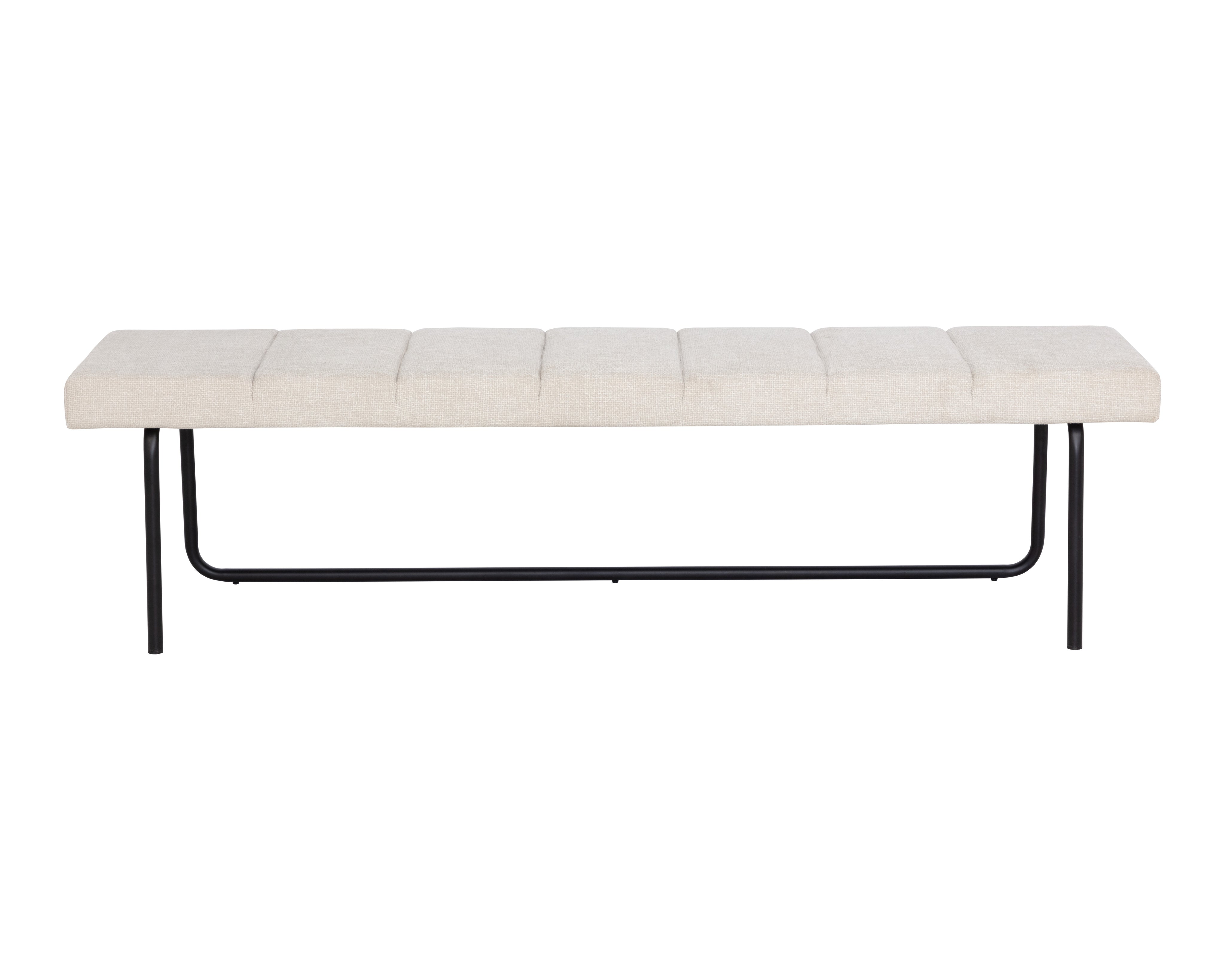 A modern bench that will add function and sleek modern style to any space. Stocked in Chacha Cream fabric and completed with an alluring matte black powder coated metal base.