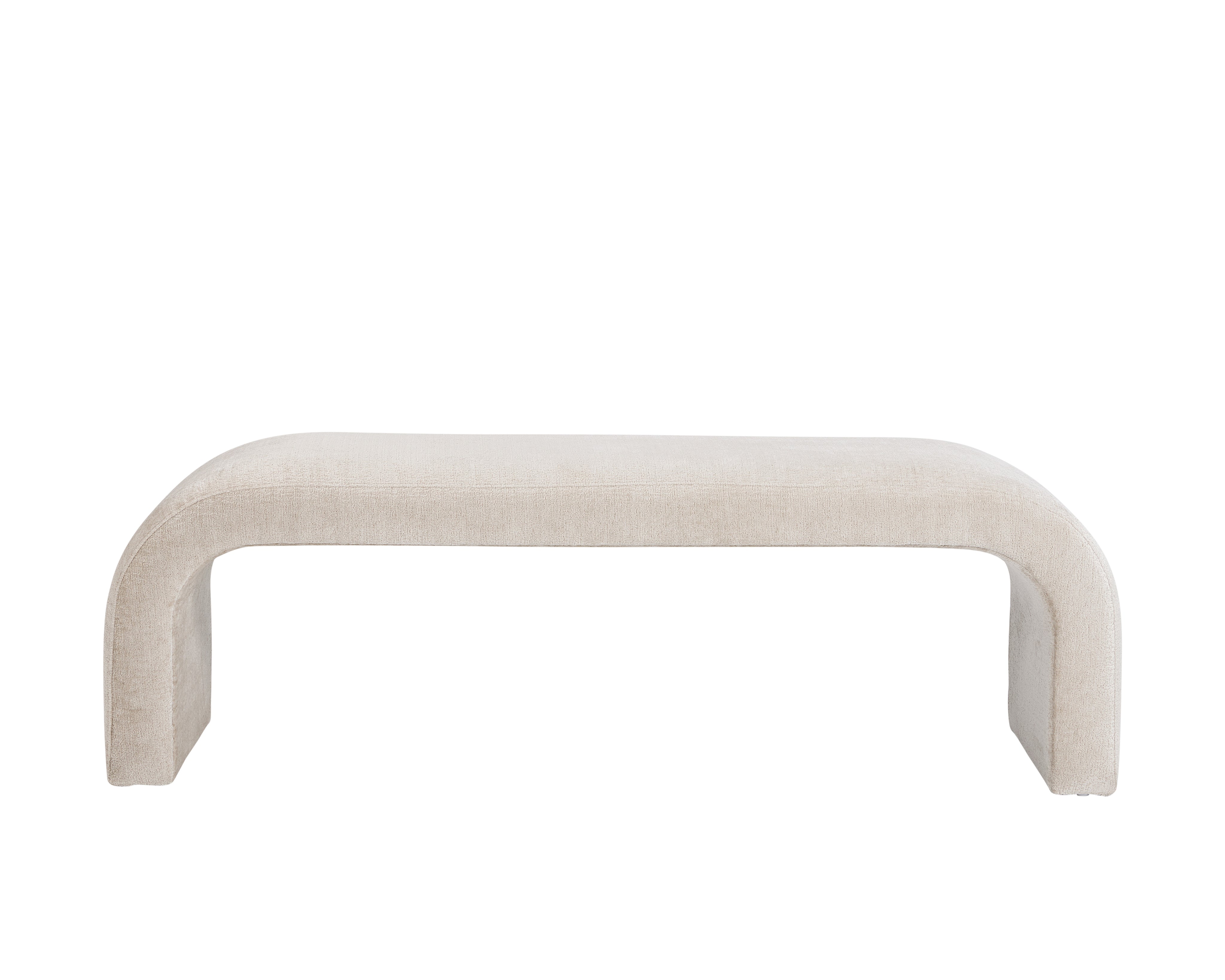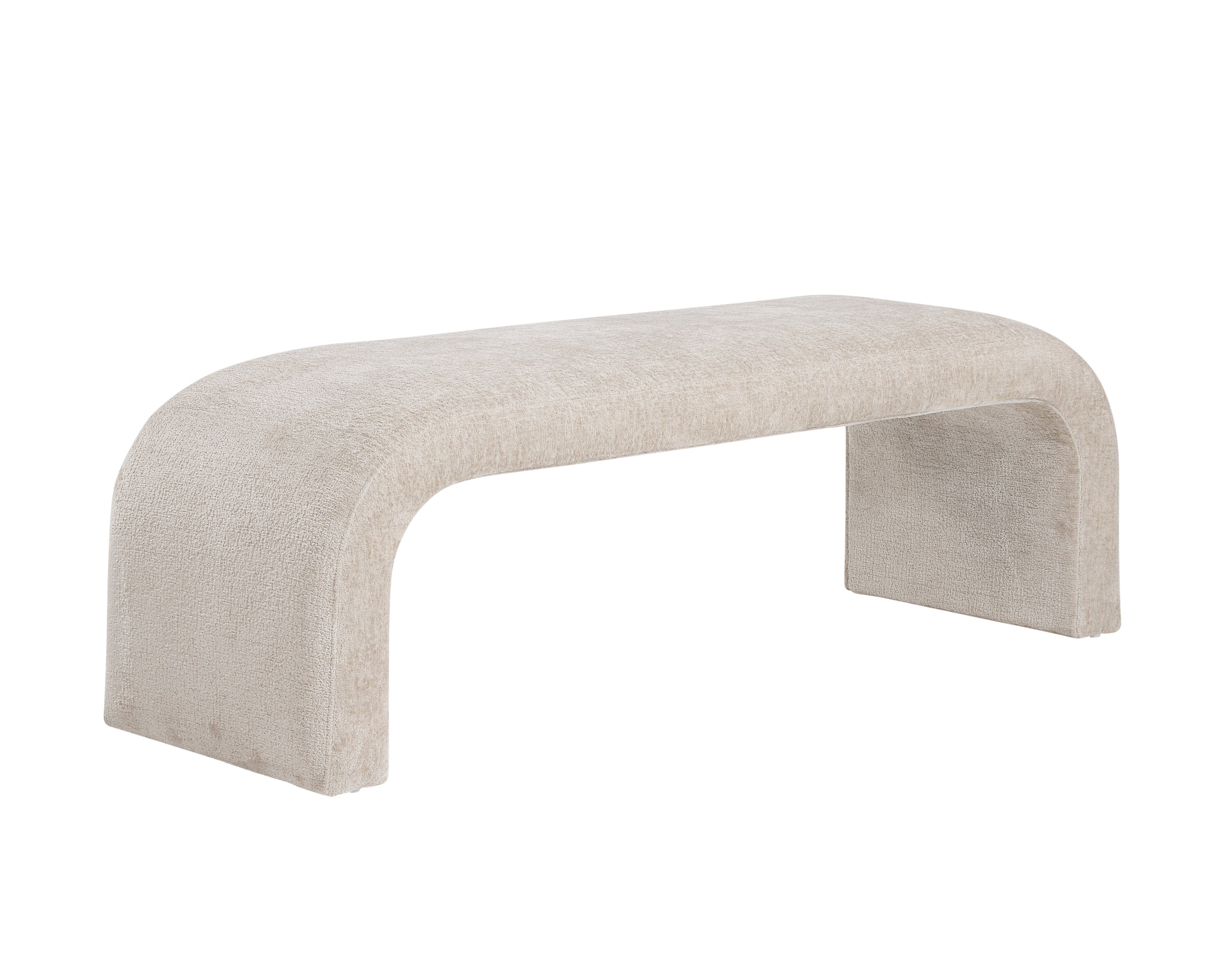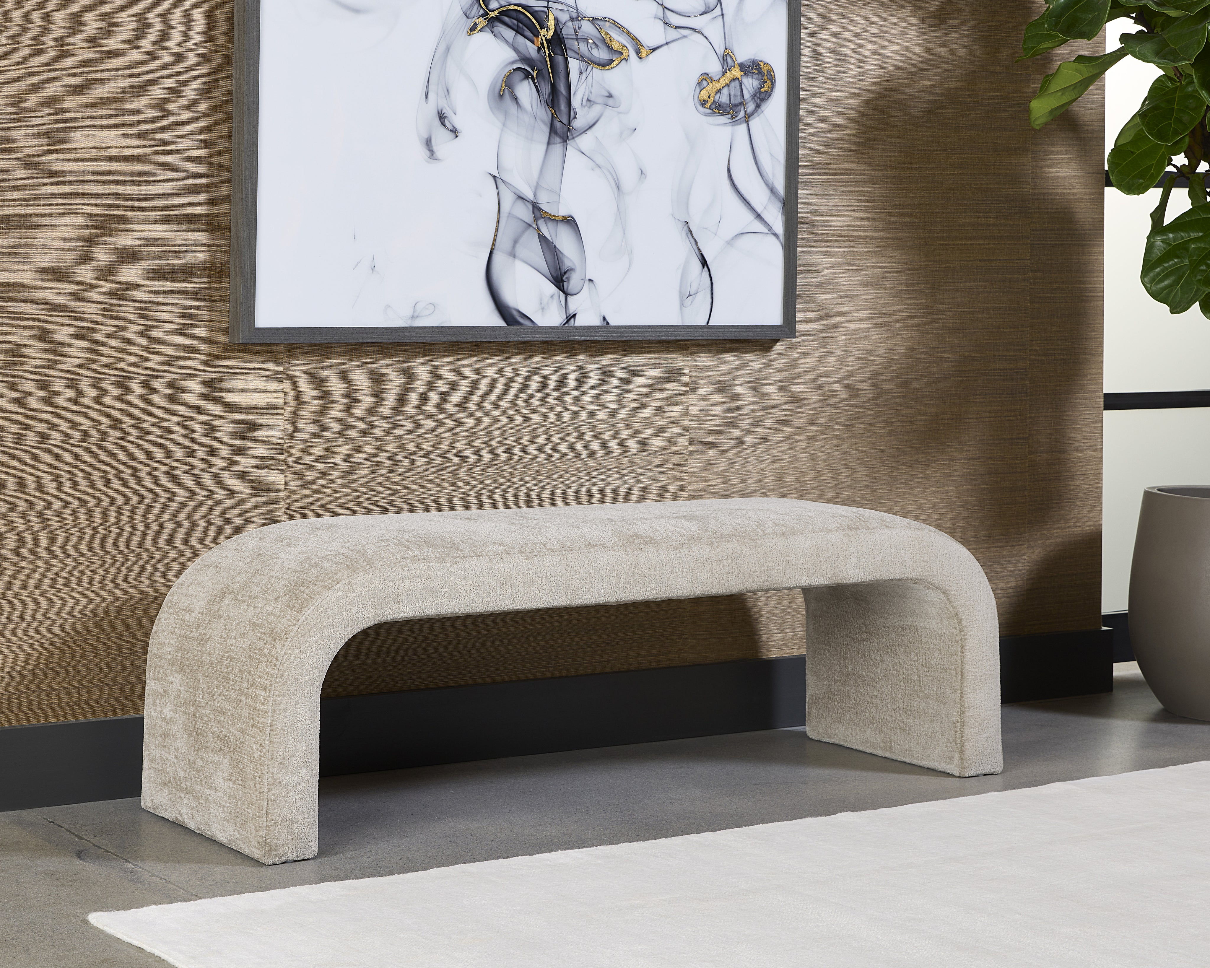 With an understated design, this arch shaped bench offers a contemporary style that will add dimension to any space. Stocked in bergen olive and taupe fabrics, and completed with a black base.