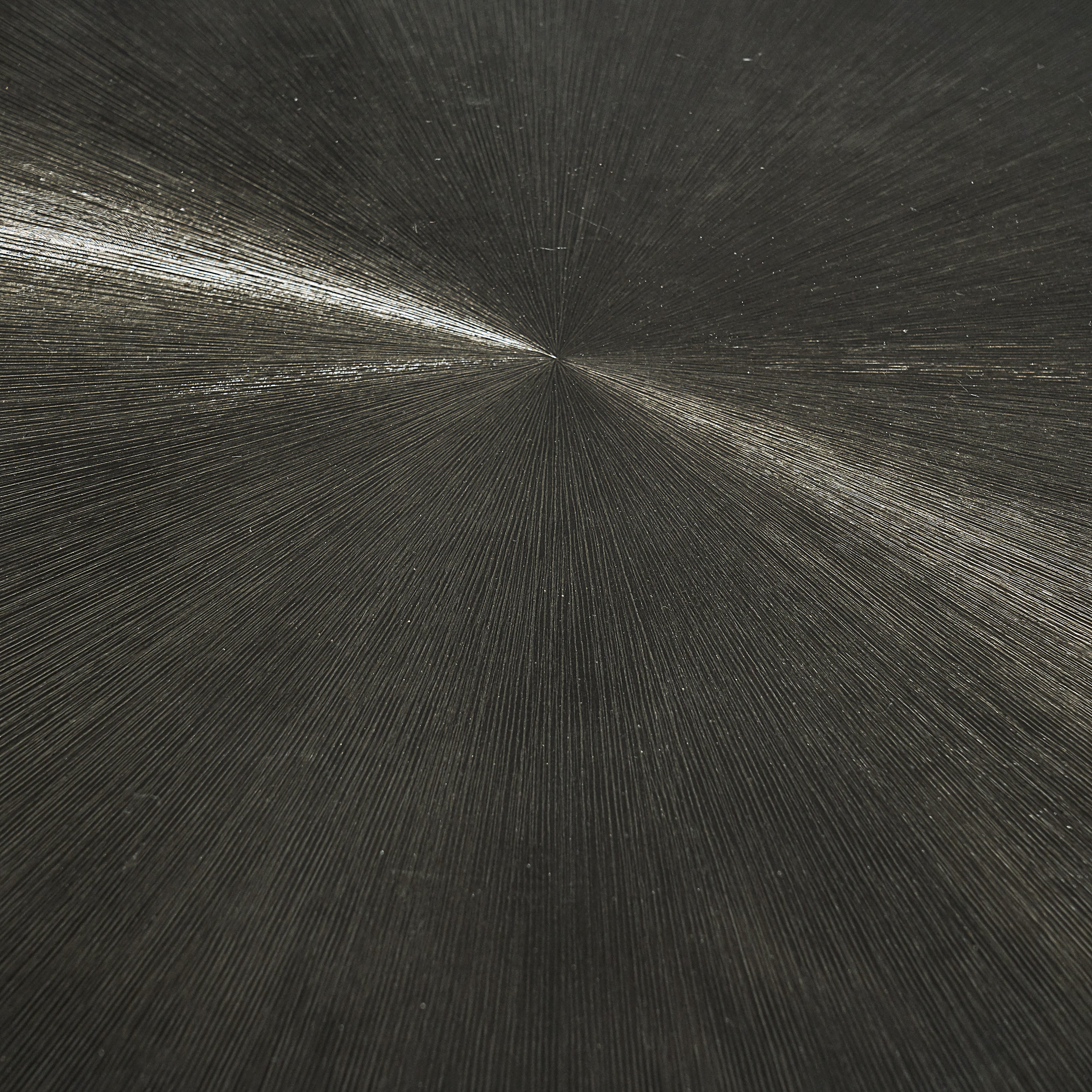 This round bistro table will evoke luxury and drama into any space. Features an exquisite bronzed gunmetal frame with a starburst pattern and a glass top. Made in India. With refined craftsmanship, this design was brought to life by skilled local artisans. Due to the nature of handcraftsmanship, unique imperfections such as fissures, markings and variations in colour and shape are welcomed and appreciated characteristics for a truly one-of-a-kind piece.