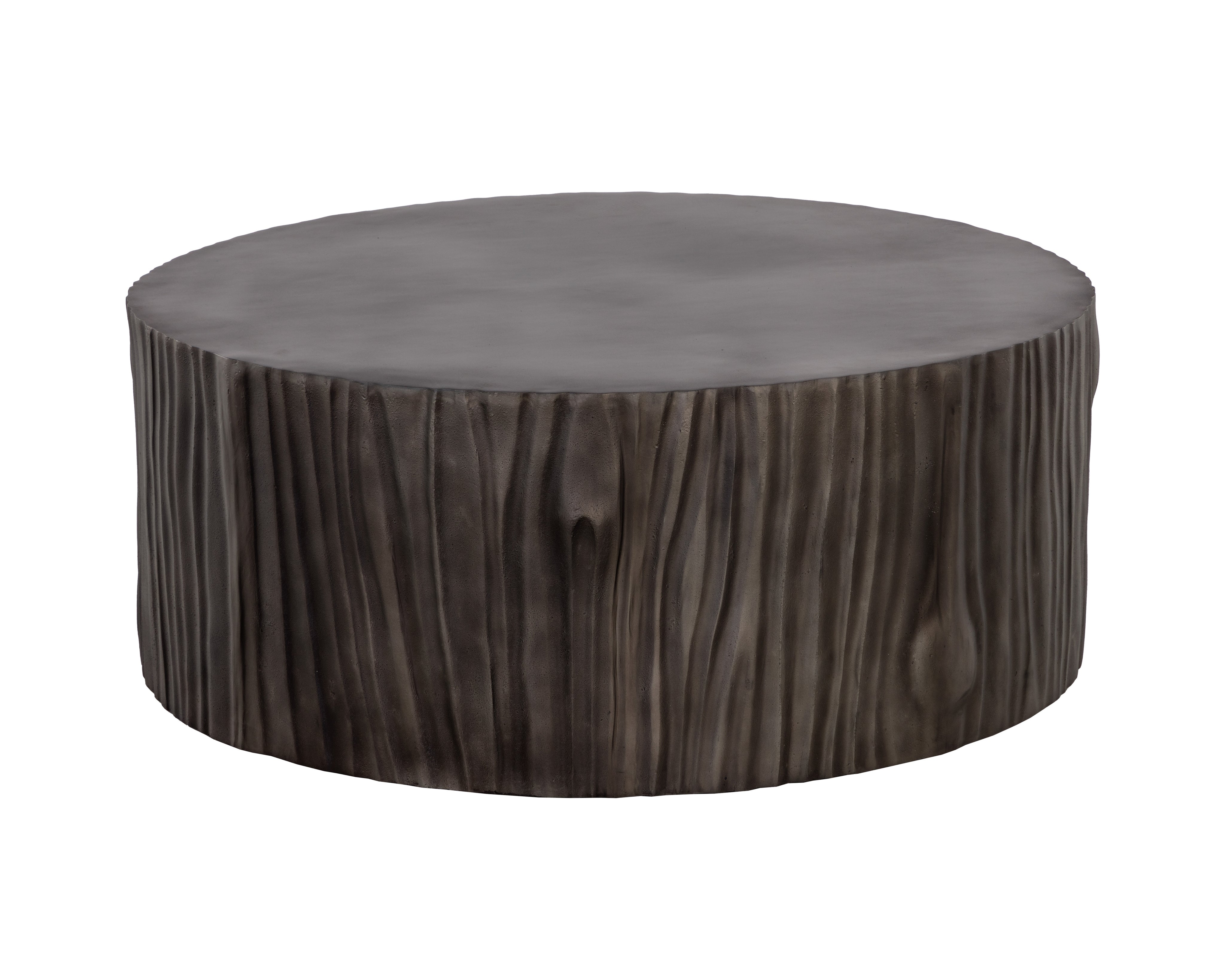 Mimicking the natural beauty of tree trunks, this fascinating coffee table will add a sense of nature to any space. Crafted from grey polished aluminum with rich texturing. Made in India. With refined craftsmanship, this design was brought to life by skilled local artisans. Due to the nature of handcraftsmanship, unique imperfections such as fissures, markings and variations in colour and shape are welcomed and appreciated characteristics for a truly one-of-a-kind piece.
