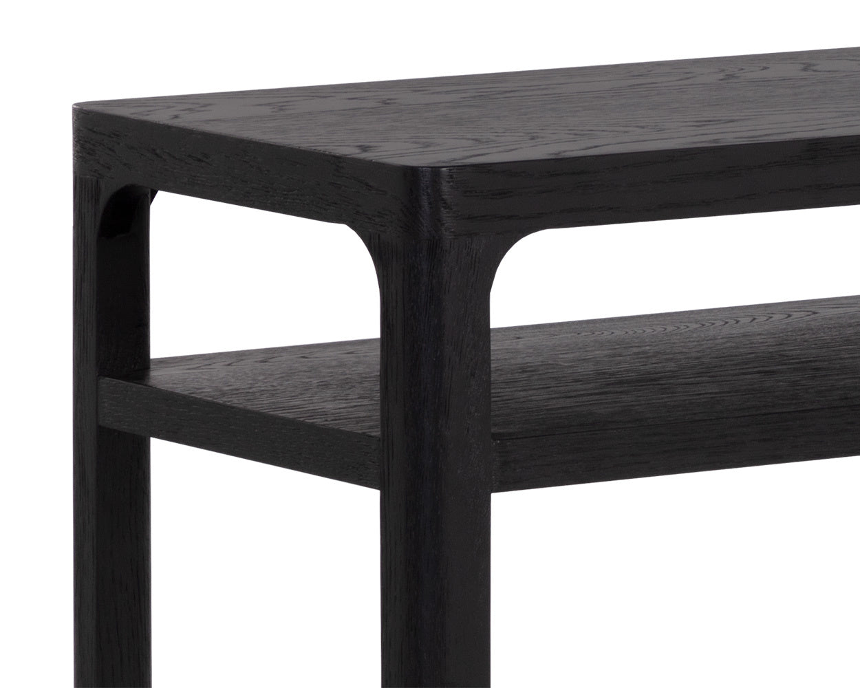With a clean and modern composition, the Doncaster Console Table will add minimalist style into any space. Crafted from a black solid oak wood frame with a black oak veneer. As wood is an organic, porous material, these pieces will contain natural variation of texture and may also exhibit fine indentations and cracks. Wood pieces will also display a disparity of colour and grain, and visible knots and burls that add to the character of each piece.