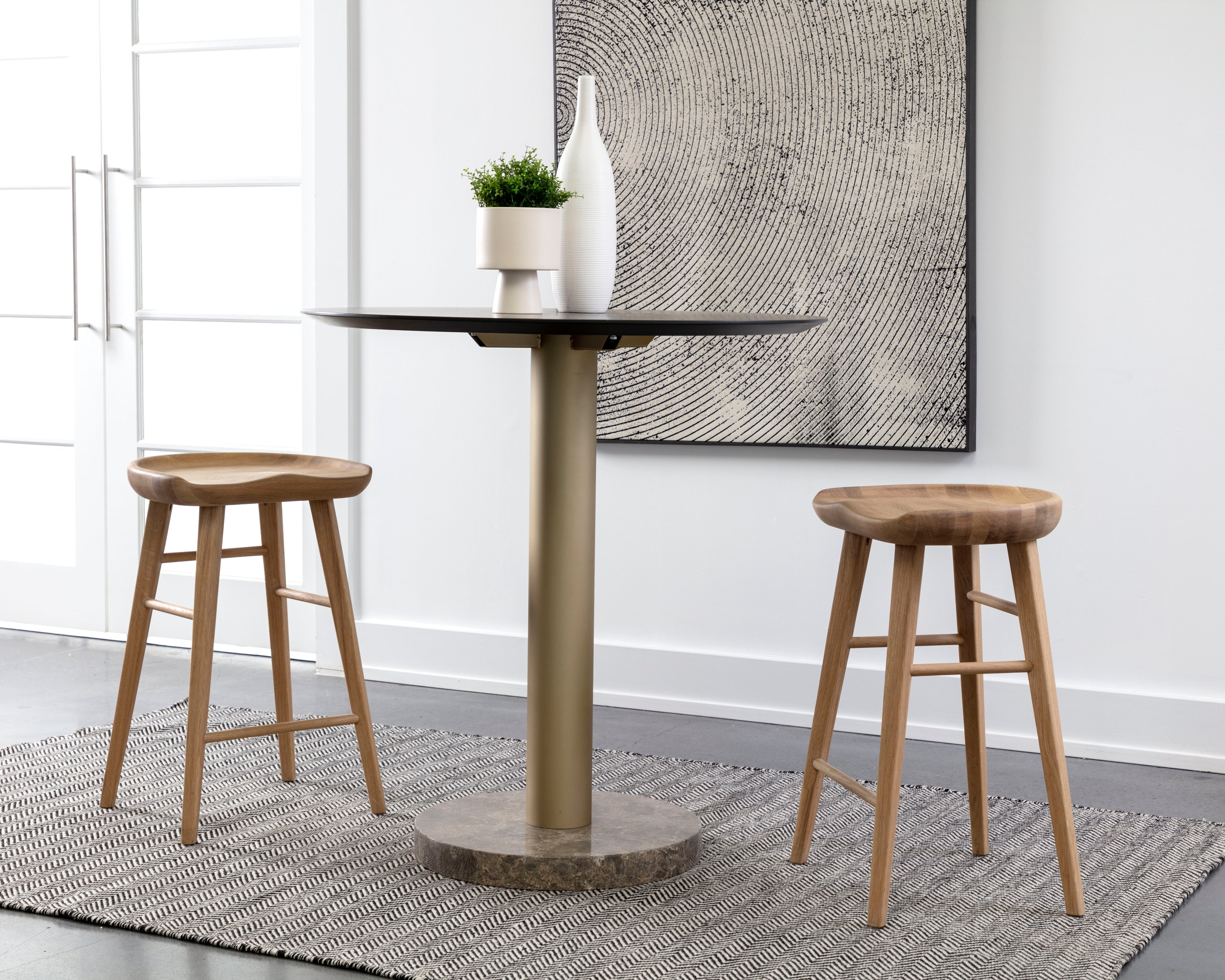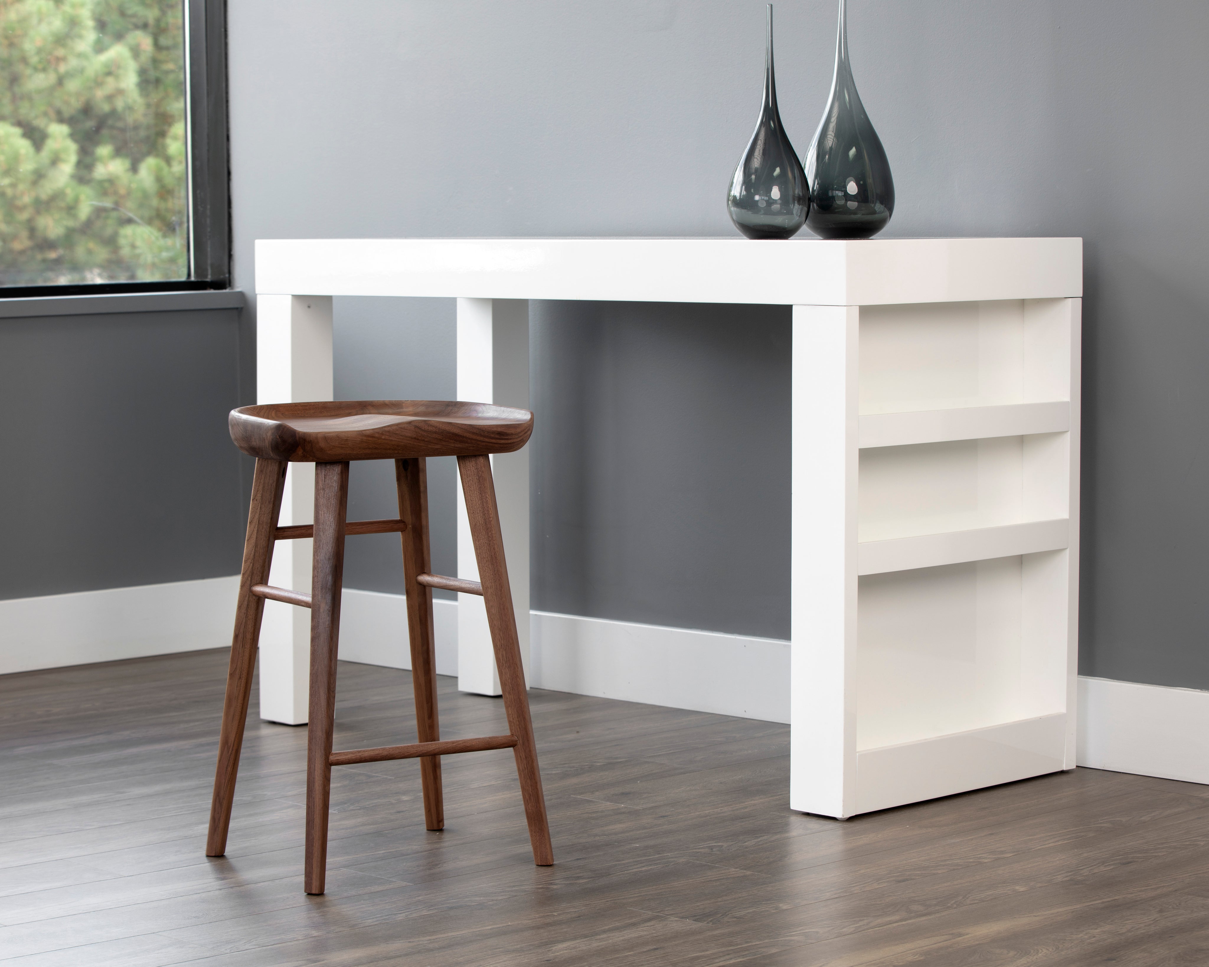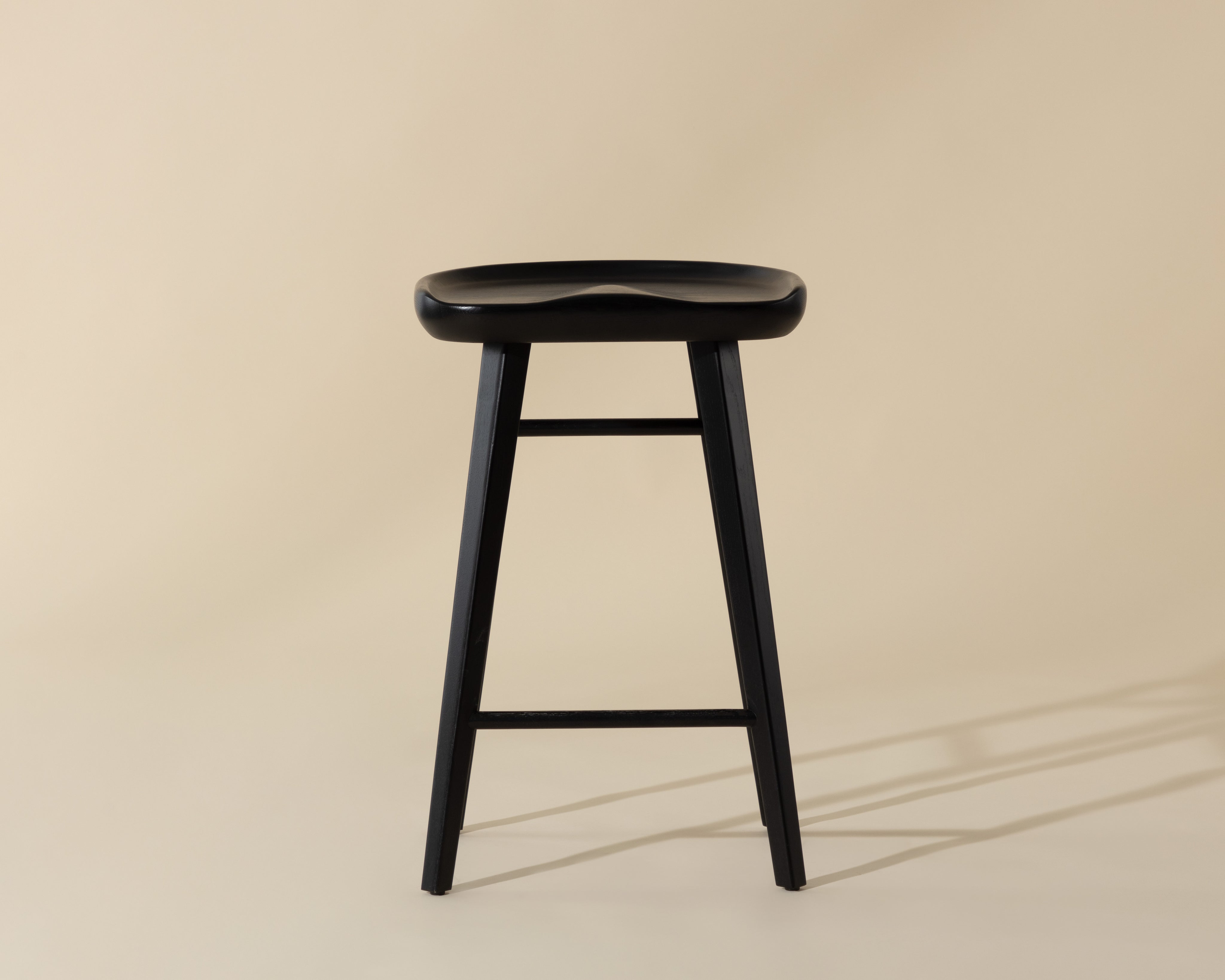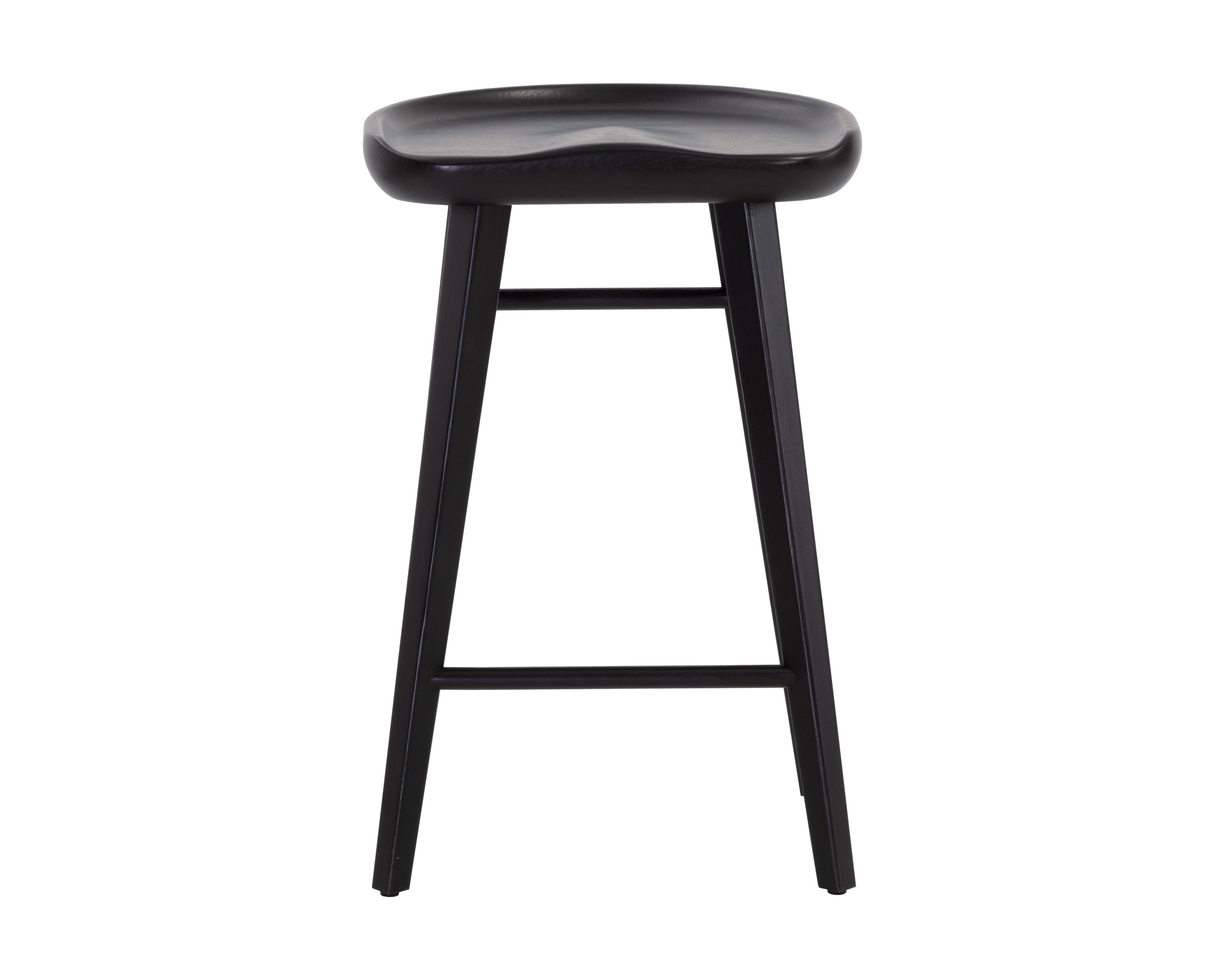 An impressive counter stool crafted from solid oak wood. The sculpted seat and traditional design will complement transitional, contemporary and modern spaces of any size. As wood is an organic, porous material, these pieces will contain natural variation of texture and may also exhibit fine indentations and cracks. Wood pieces will also display a disparity of colour and grain, and visible knots and burls that add to the character of each piece.