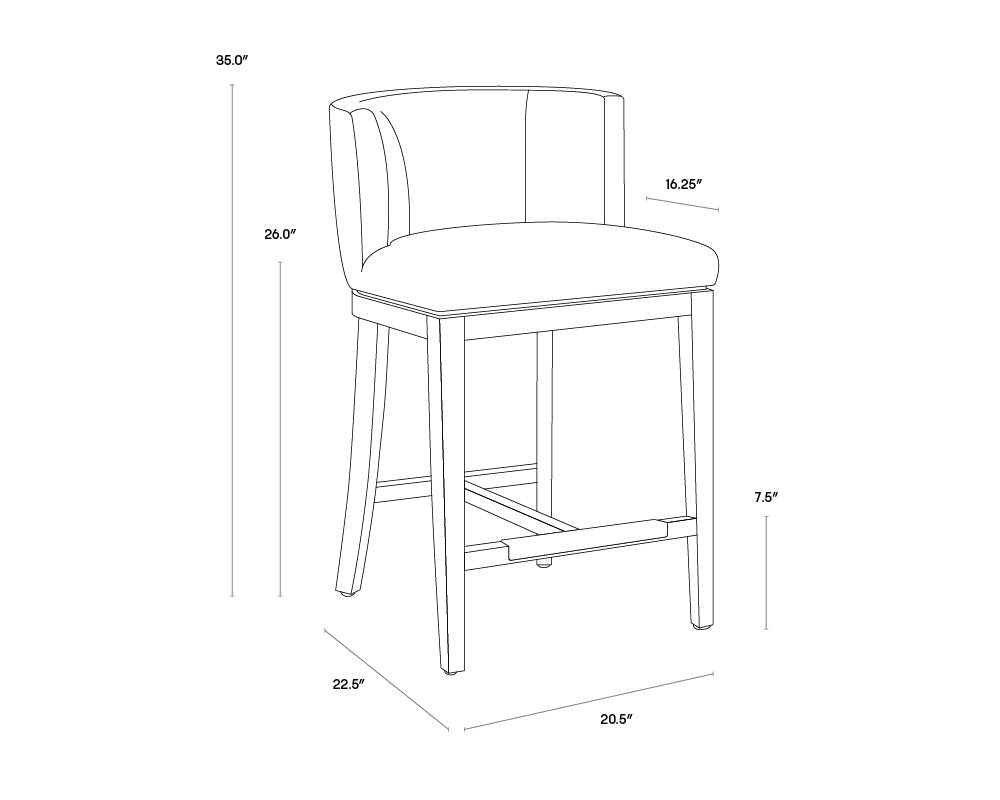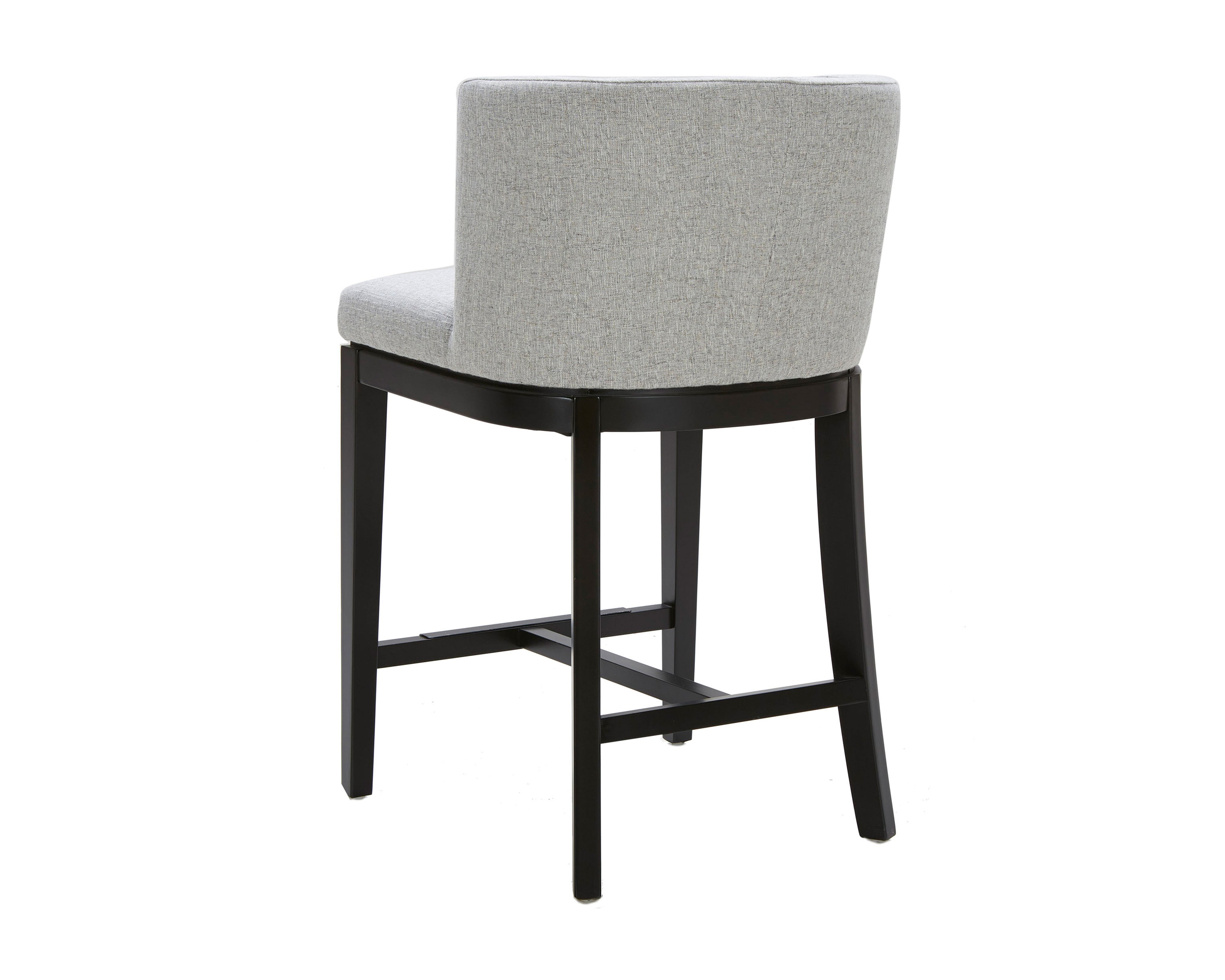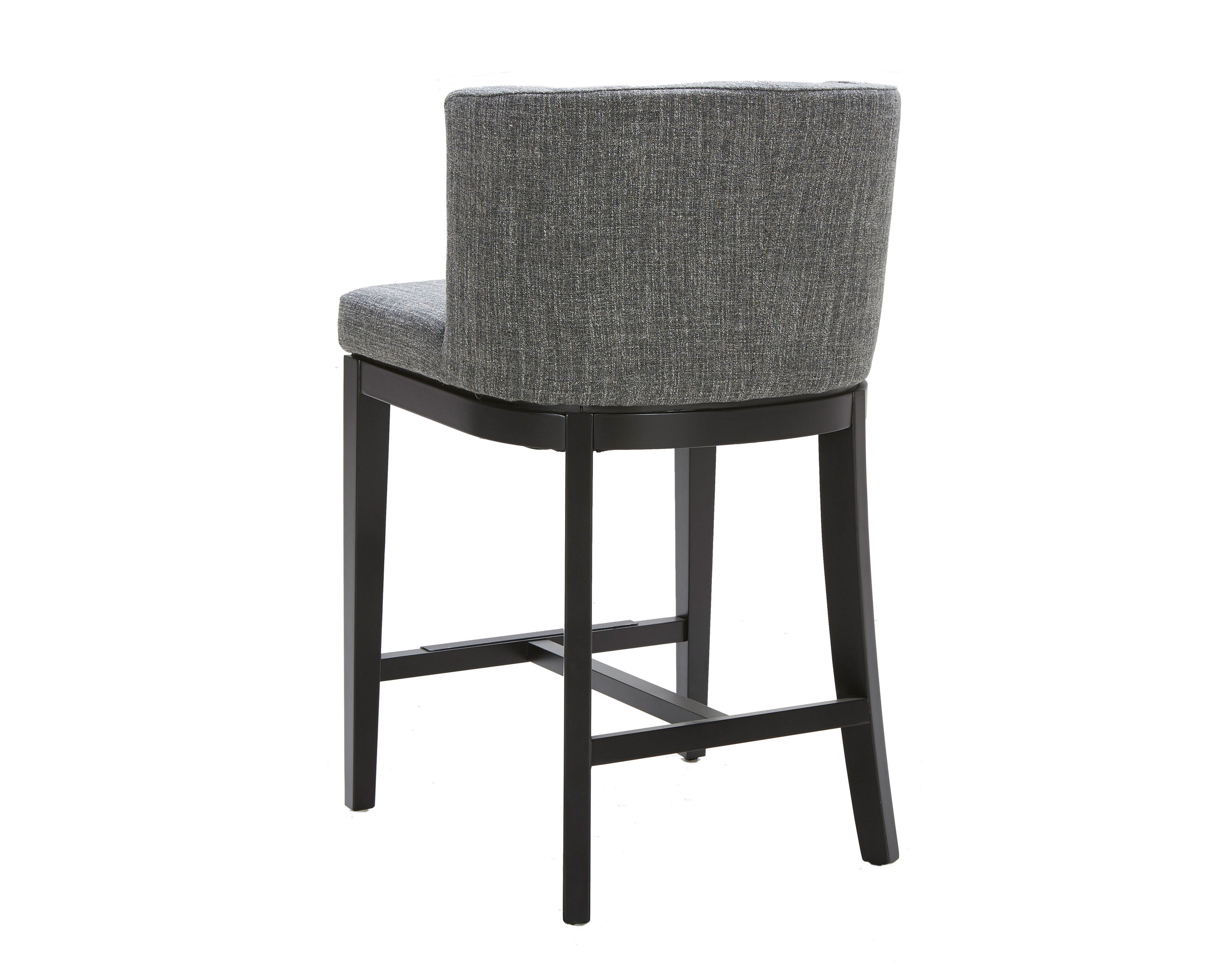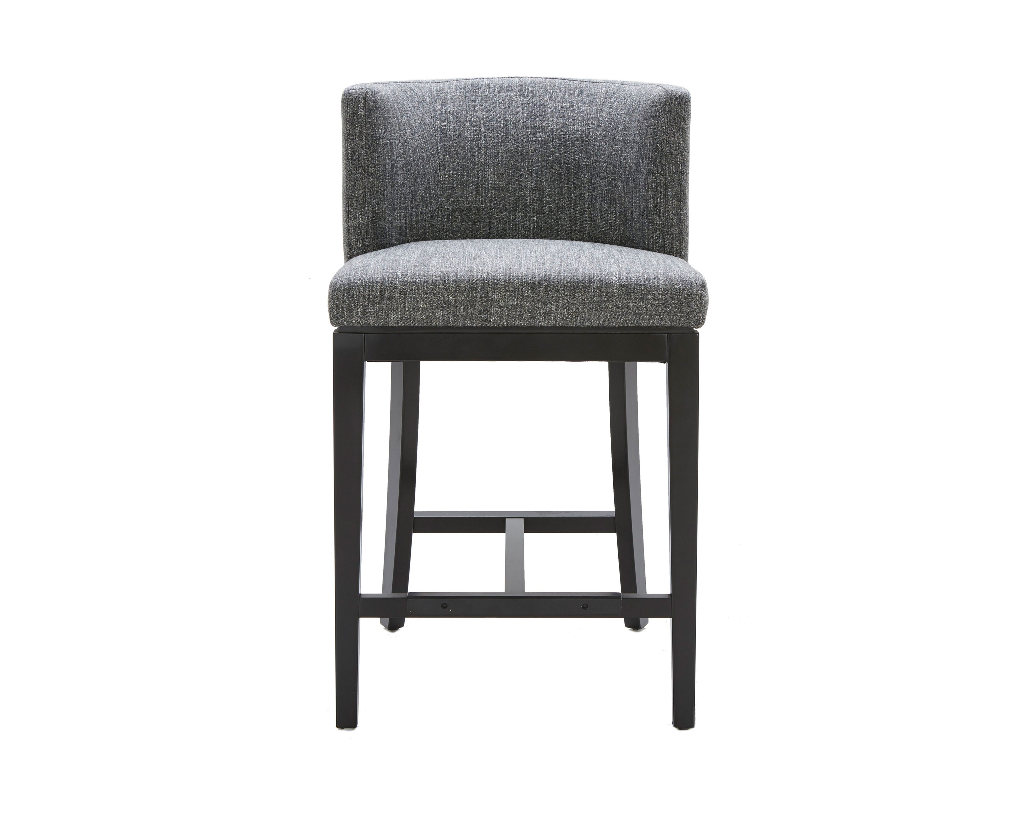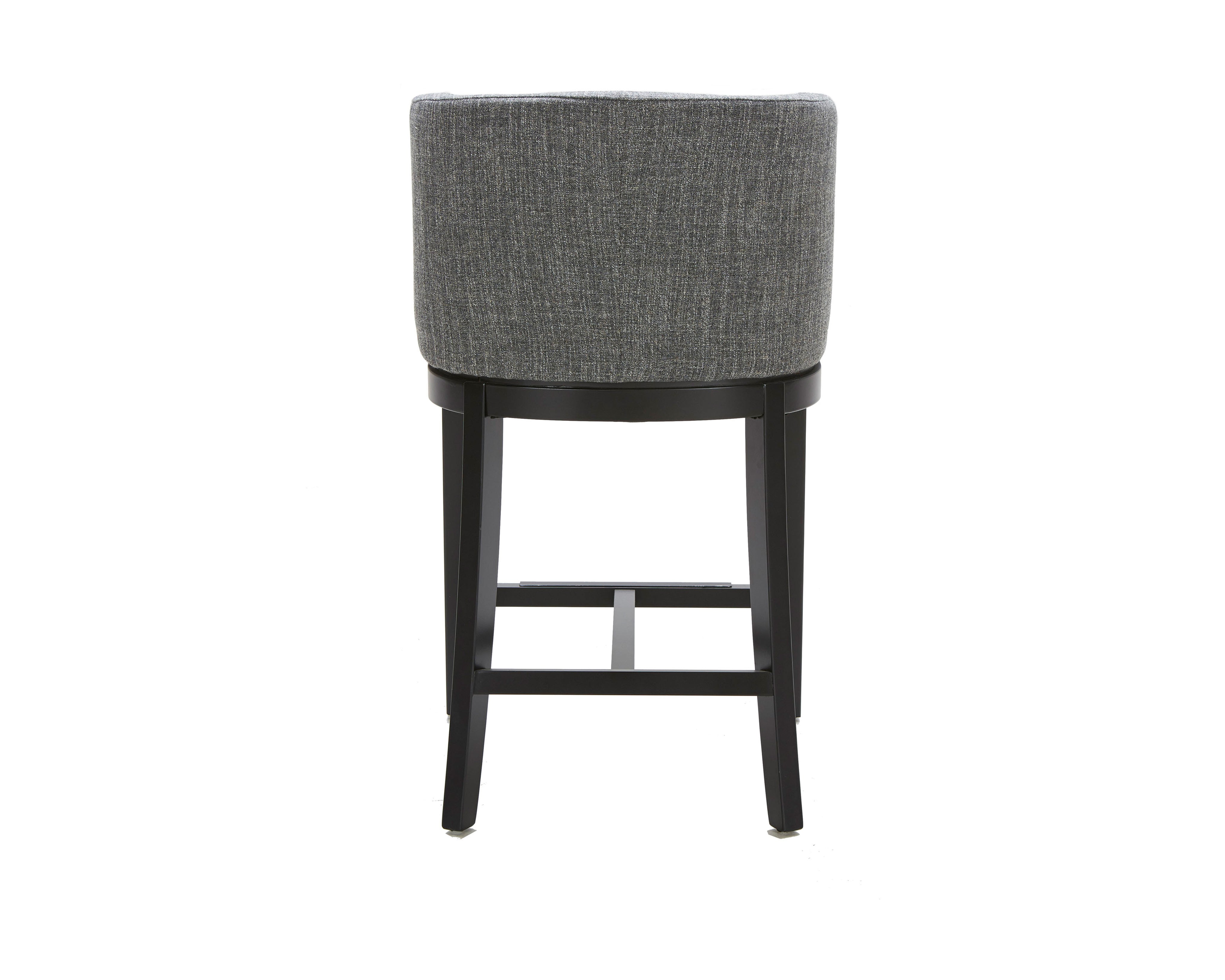 This handsome barrel back counter stool is stocked in marble fabric for comfort and class. Features matte black legs with a centre stretcher and black metal plate for added durability. Suitable for various dining, kitchen and bar spaces of all sizes. As wood is an organic, porous material, these pieces will contain natural variation of texture and may also exhibit fine indentations and cracks. Wood pieces will also display a disparity of colour and grain, and visible knots and burls that add to the character of each piece.