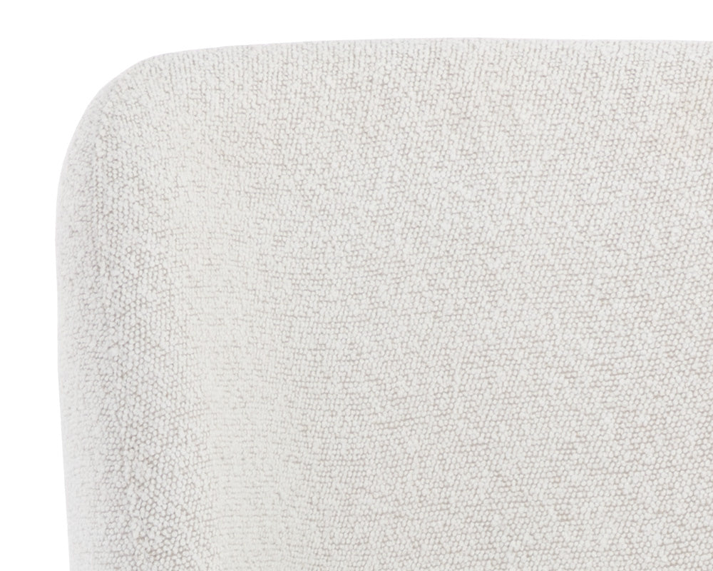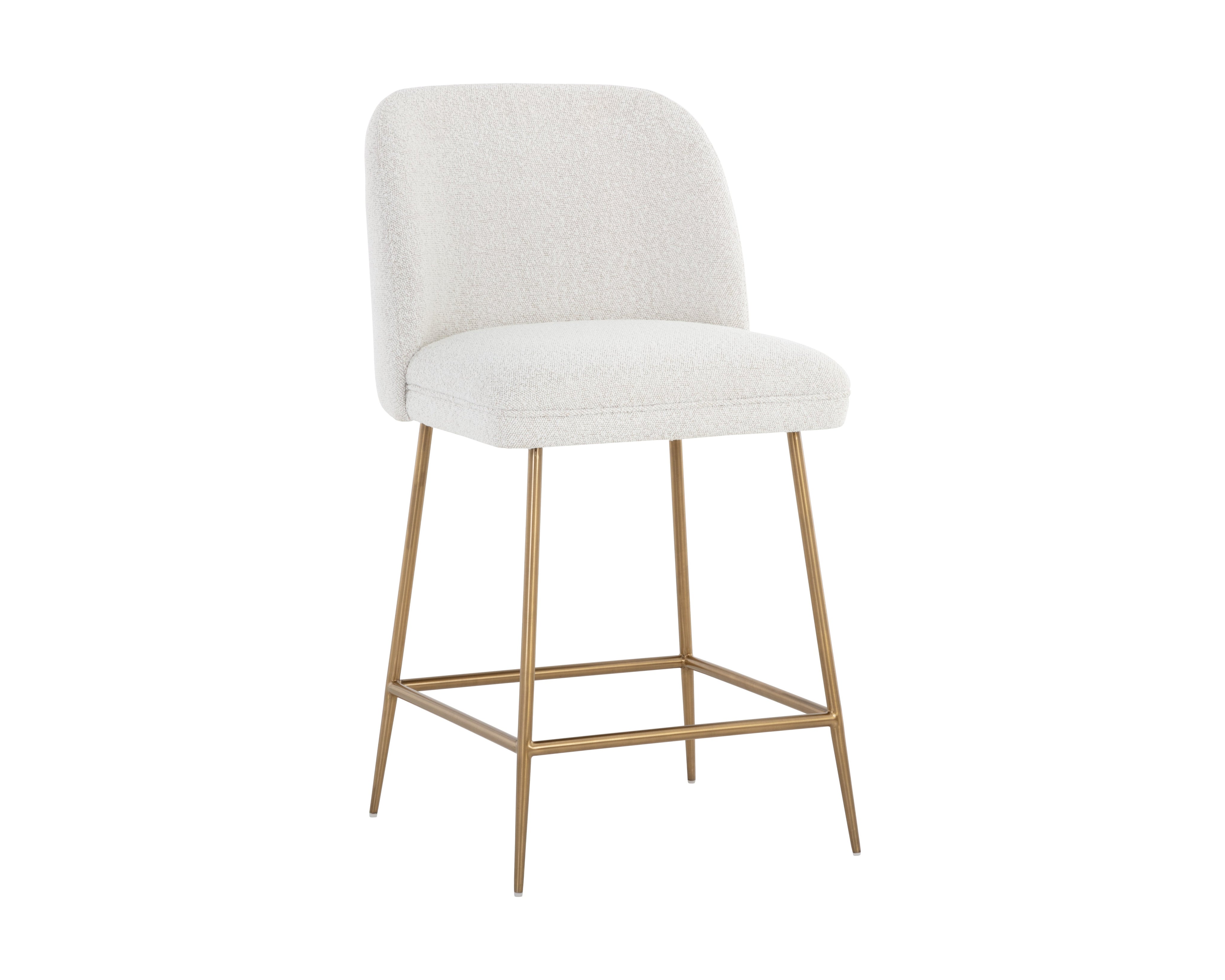Chic and sophisticated, this stunning counter stool will dazzle any dining or kitchen space. Features a stylish copenhagen white boucle fabric seat with gold stainless steel legs.
