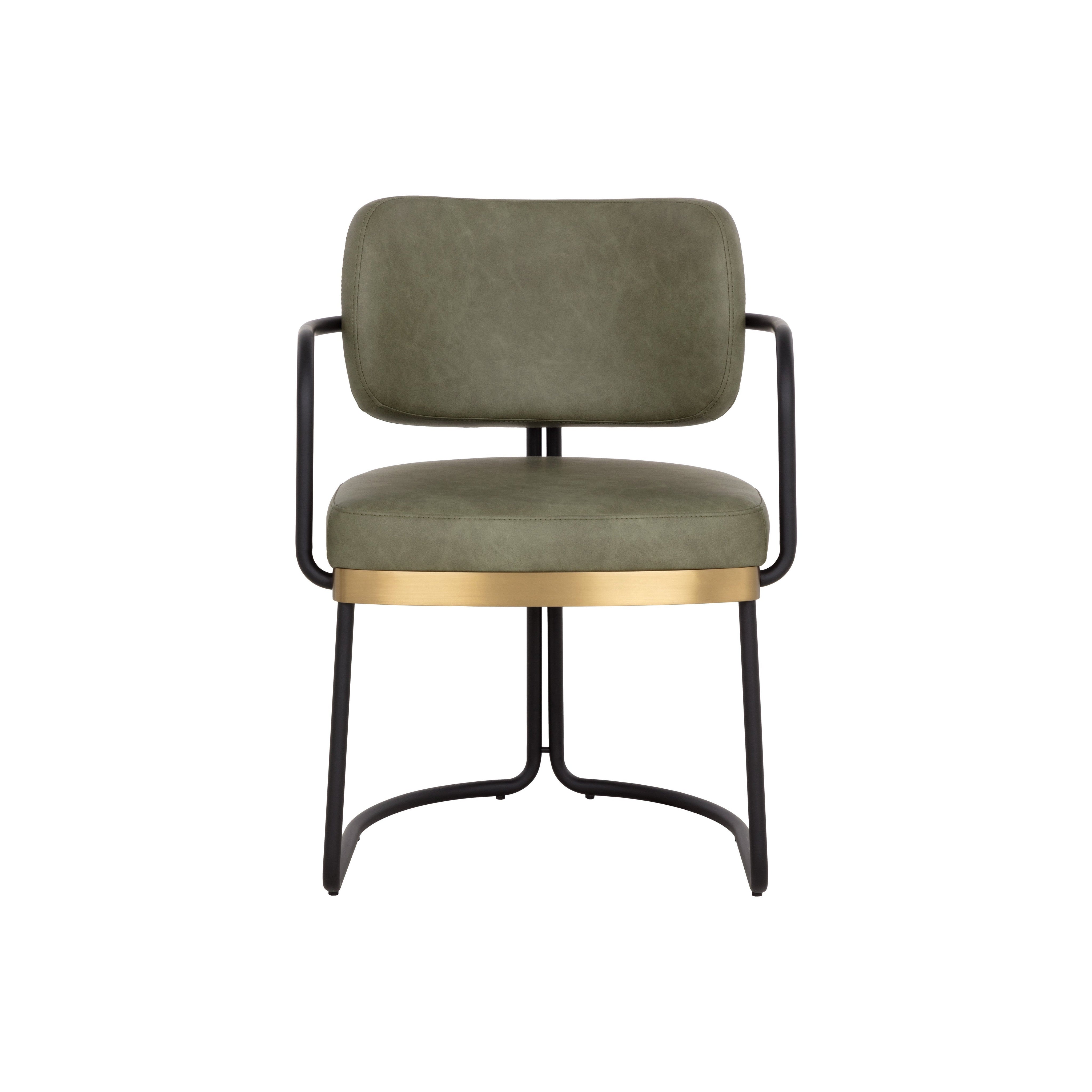 The Jalen Dining Armchair is poised to be a guest favourite thanks to its free flowing curves and gold stainless steel accents. Made from powder-coated iron with a supportive seat and back upholstered in smooth faux leather, this armchair will fit into any residential or commercial setting.