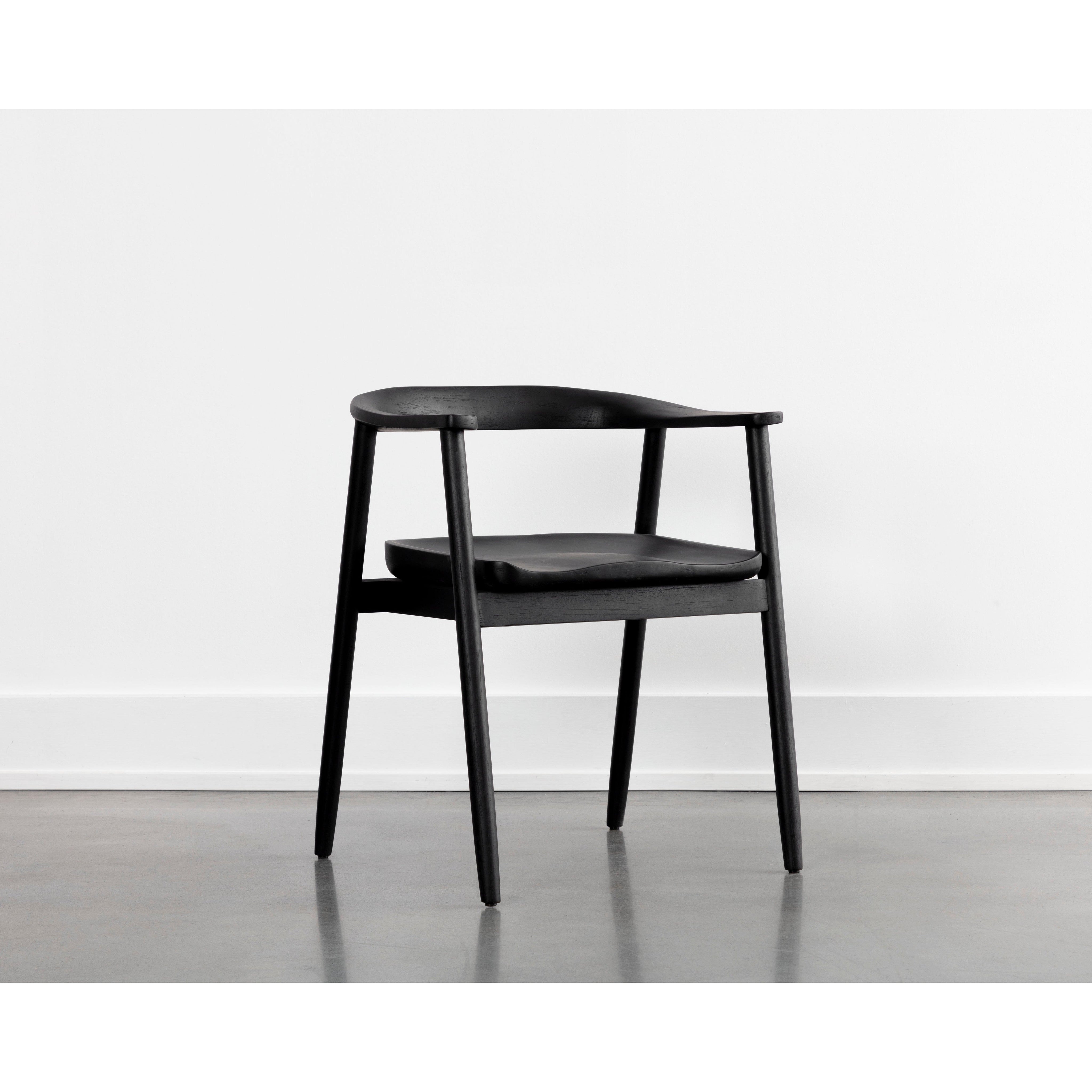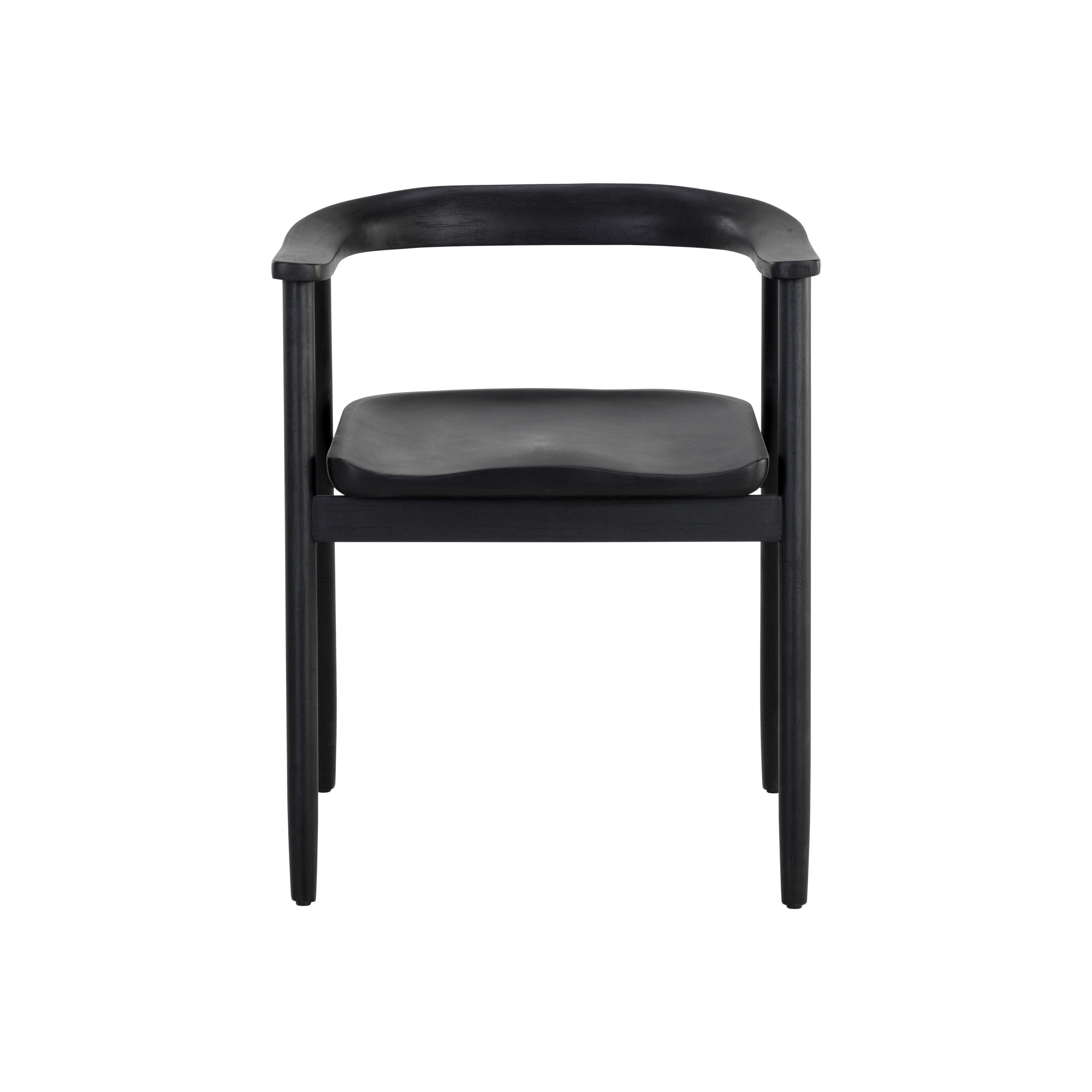 An alluring mid-century dining armchair that embraces the beauty of simplicity. Expertly crafted from black acacia wood for a sleek look. As wood is an organic, porous material, these pieces will contain natural variation of texture and may also exhibit fine indentations and cracks. Wood pieces will also display a disparity of colour and grain, and visible knots and burls that add to the character of each piece.
