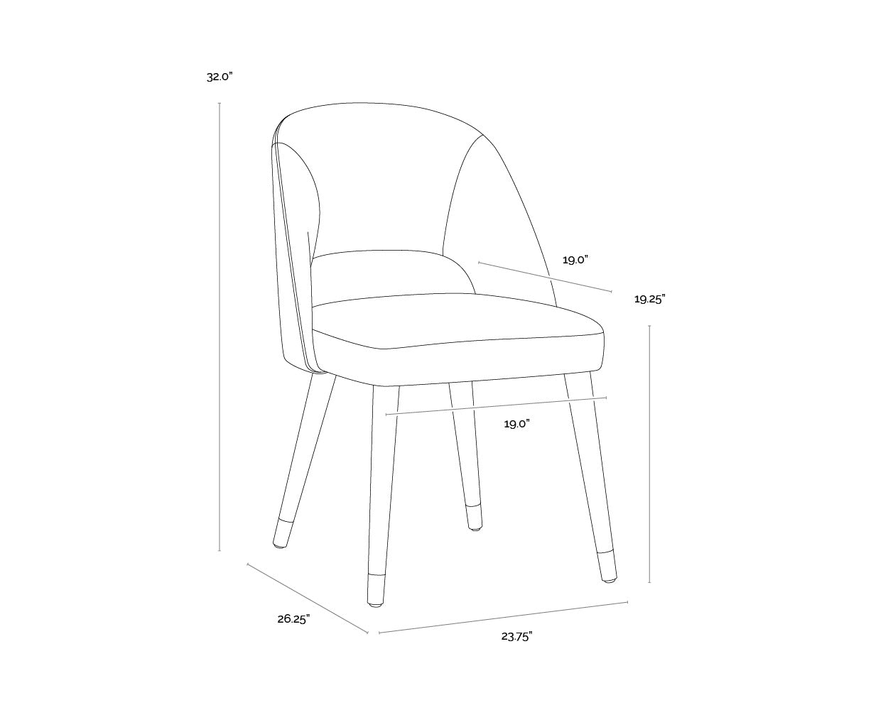 A chic barrel back dining chair with vintage influence. Crafted with abbington black fabric and finished with brown birch wood legs and antique brass caps. Suitable for various dining and kitchen spaces of all sizes.