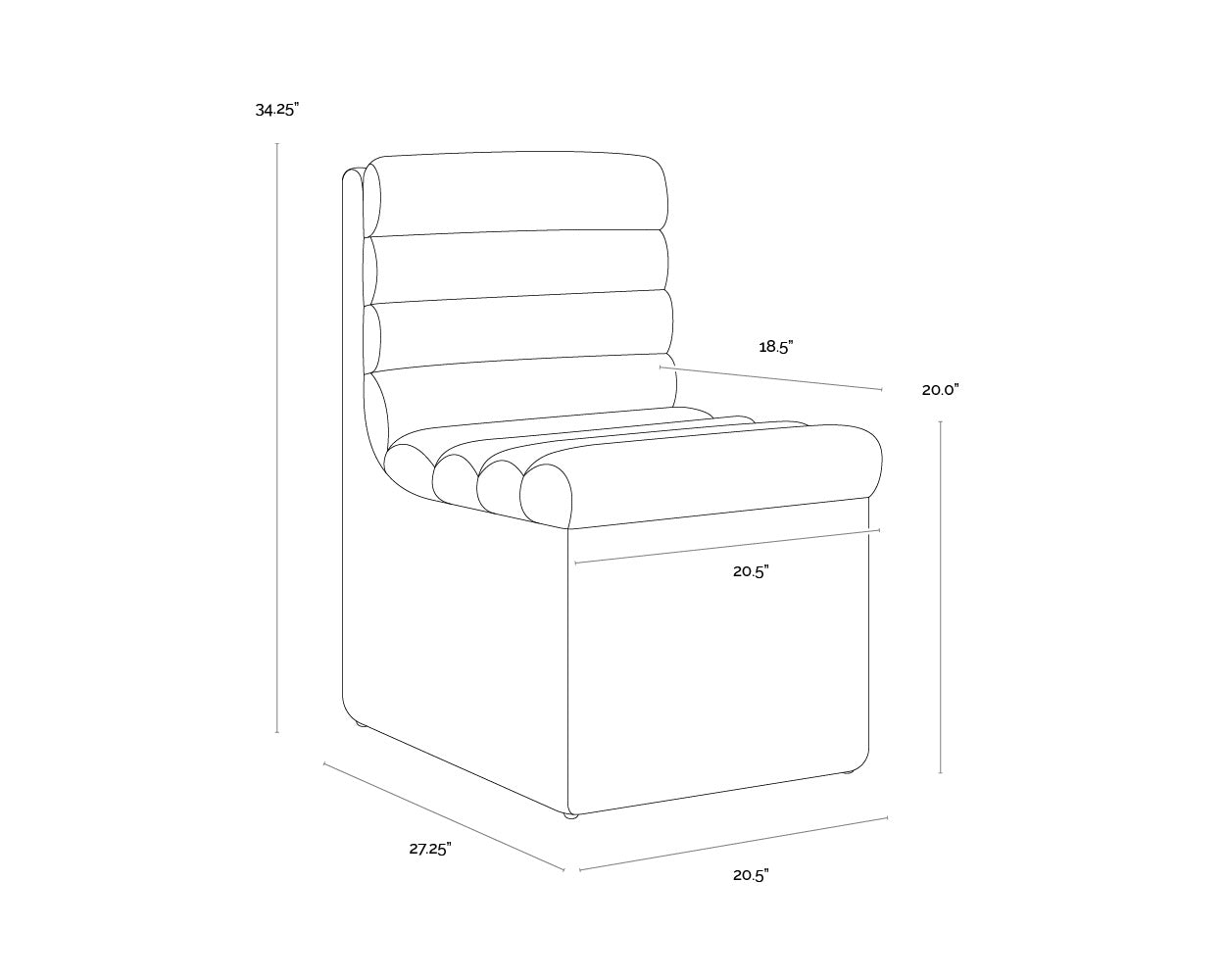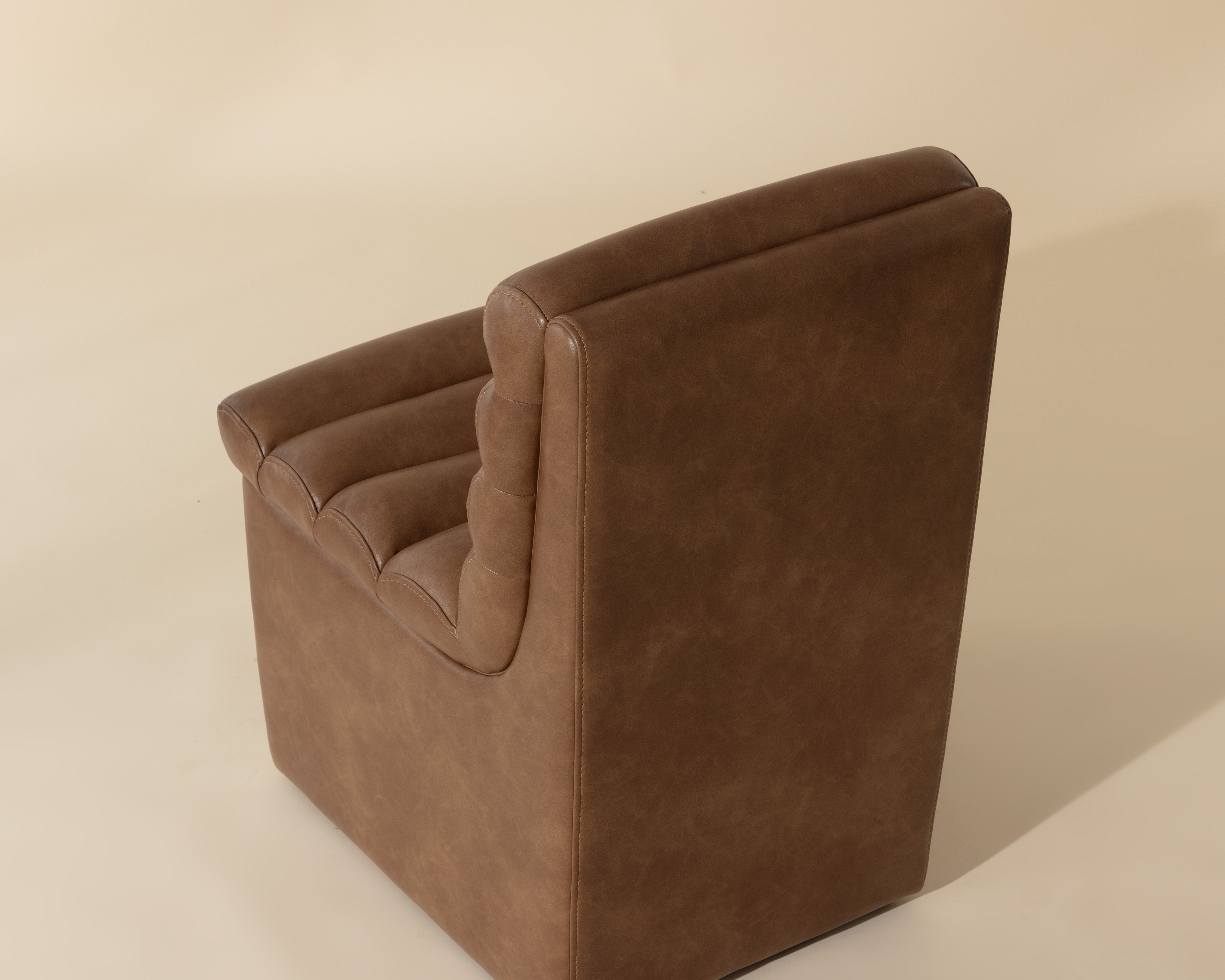 The Norm Wheeled Dining Chair features a modern silhouette with heavy channel cushioning that delivers luxe contours for an enjoyable sitting experience. Copley cognac faux leather adds fresh appeal to this sculpted chair.