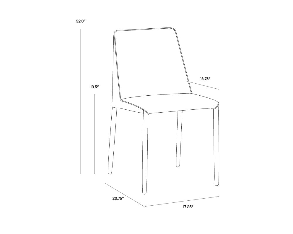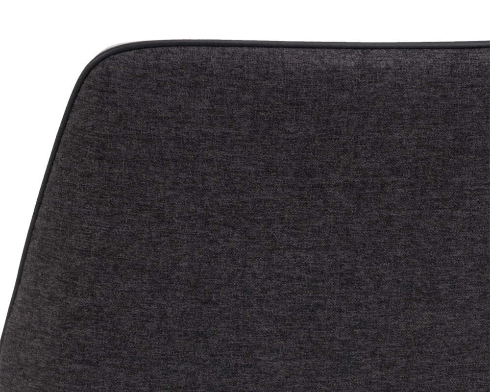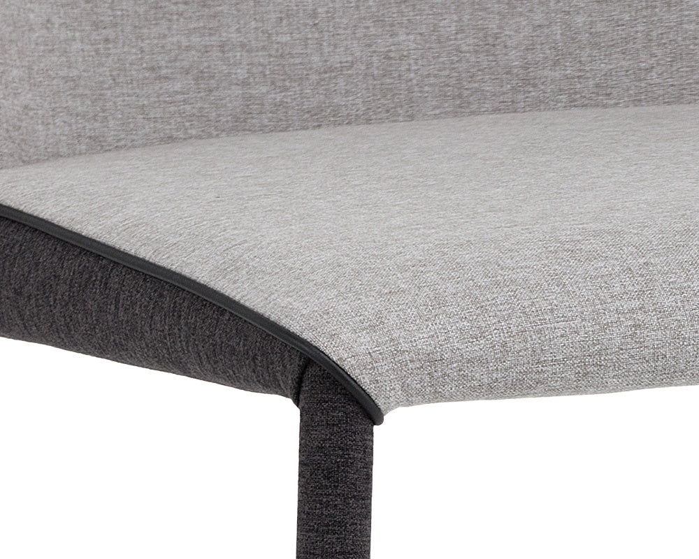 This modern dining chair offers a minimalist silhouette perfect for small urban settings. Features a comfortable seat in armour grey fabric with a contrasting seat back and steel legs upholstered legs in dark slate fabric.