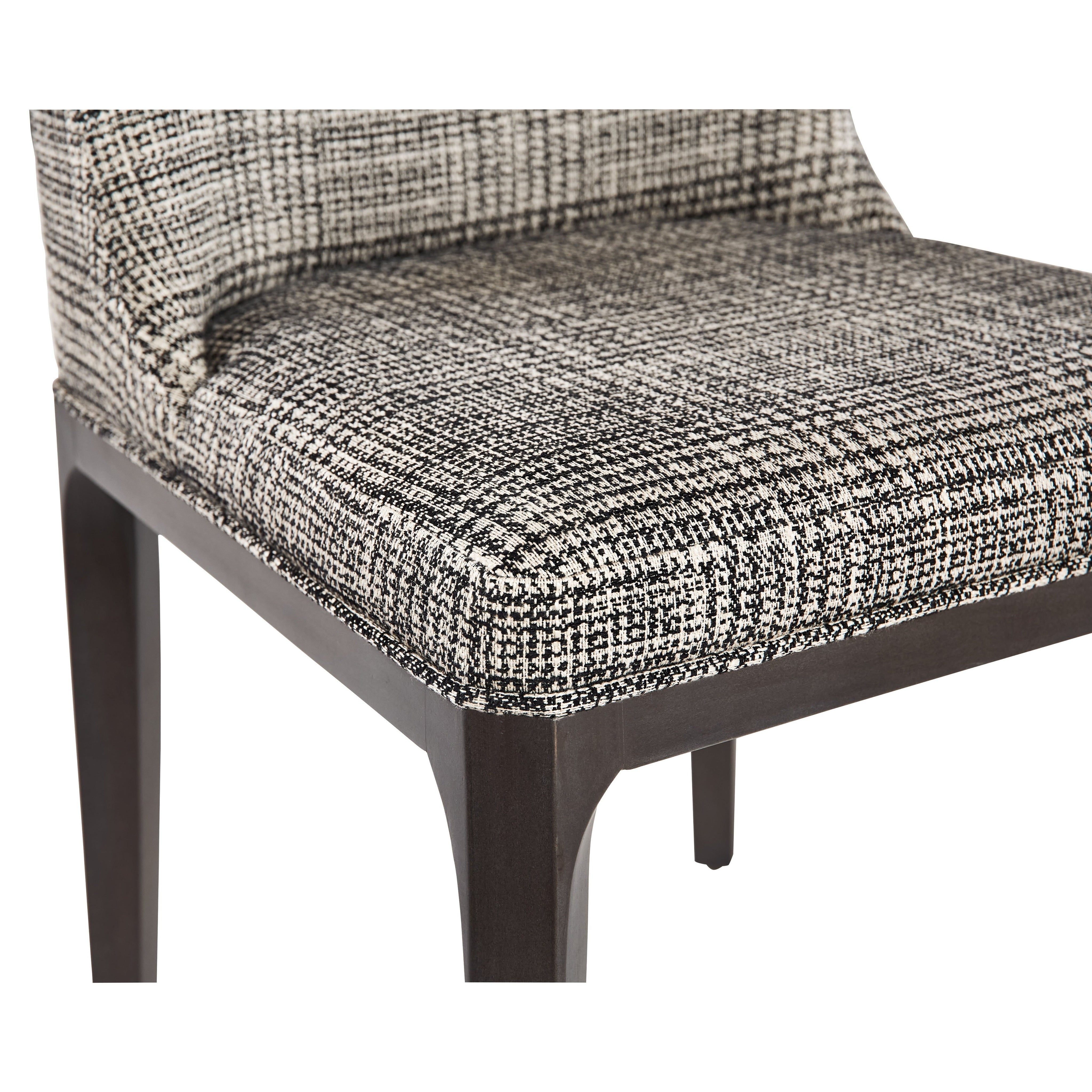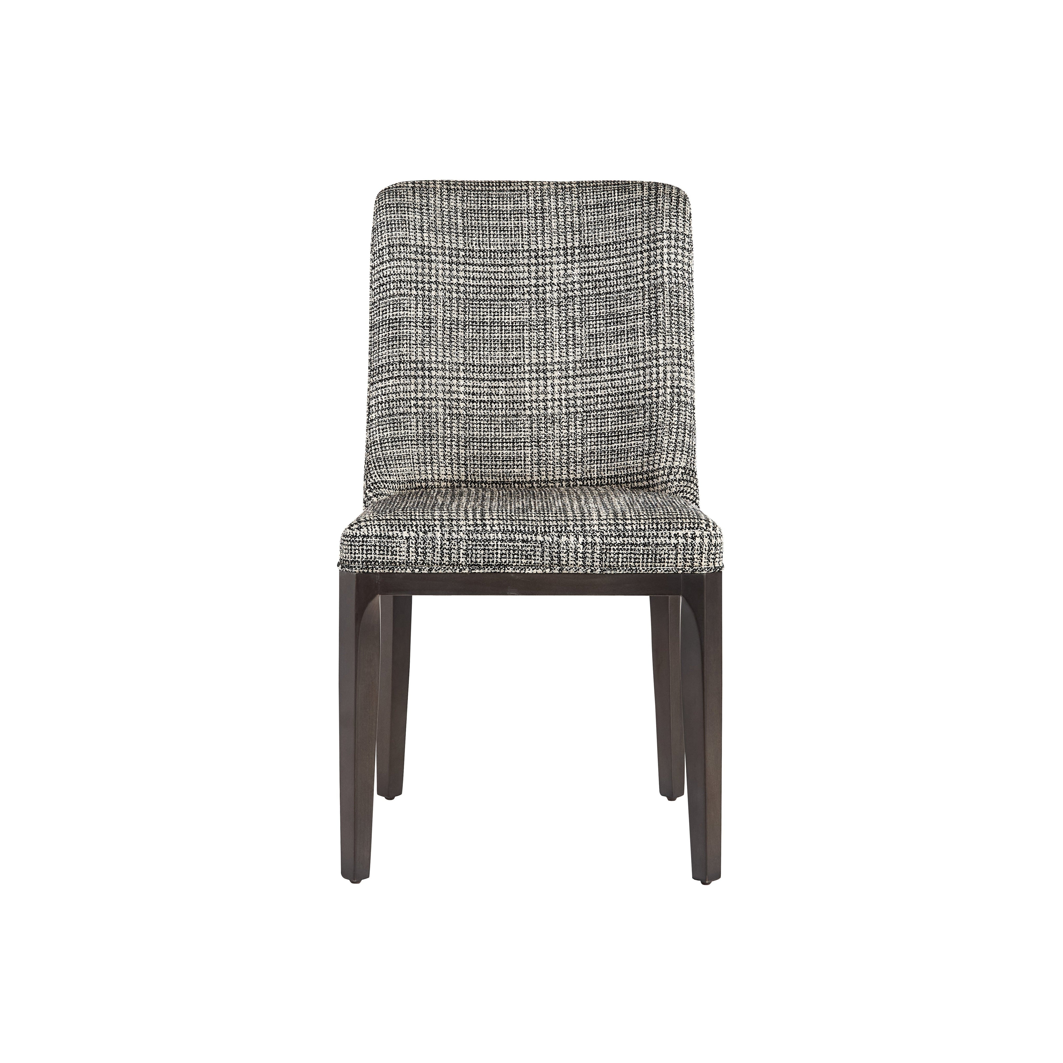 With a timeless design, this dining chair boasts a stunning mid-century appeal. Stocked in our beautiful naya check black fabric with solid poplar wood legs in a grey oak finish. As wood is an organic, porous material, these pieces will contain natural variation of texture and may also exhibit fine indentations and cracks. Wood pieces will also display a disparity of colour and grain, and visible knots and burls that add to the character of each piece.