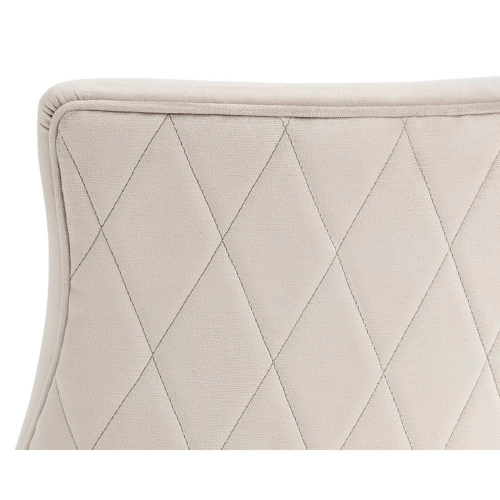 This dining chair offers transitional elegance. Features a beautifully sculpted seat in our soft piccolo prosecco performance fabric with a rustic bronze cantilever frame. A diamond stitched pattern on the exterior seatback adds a touch of beauty to complete the look.