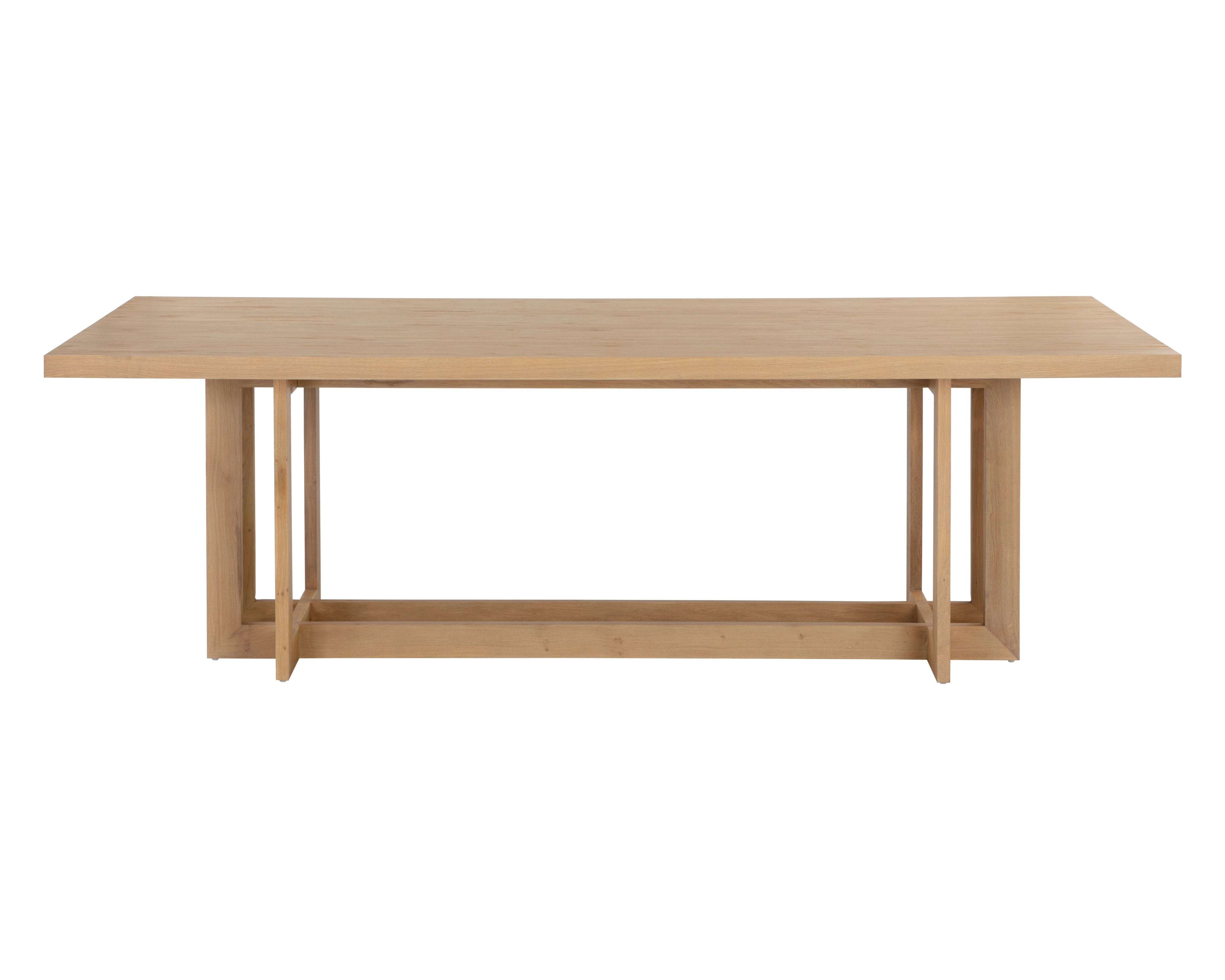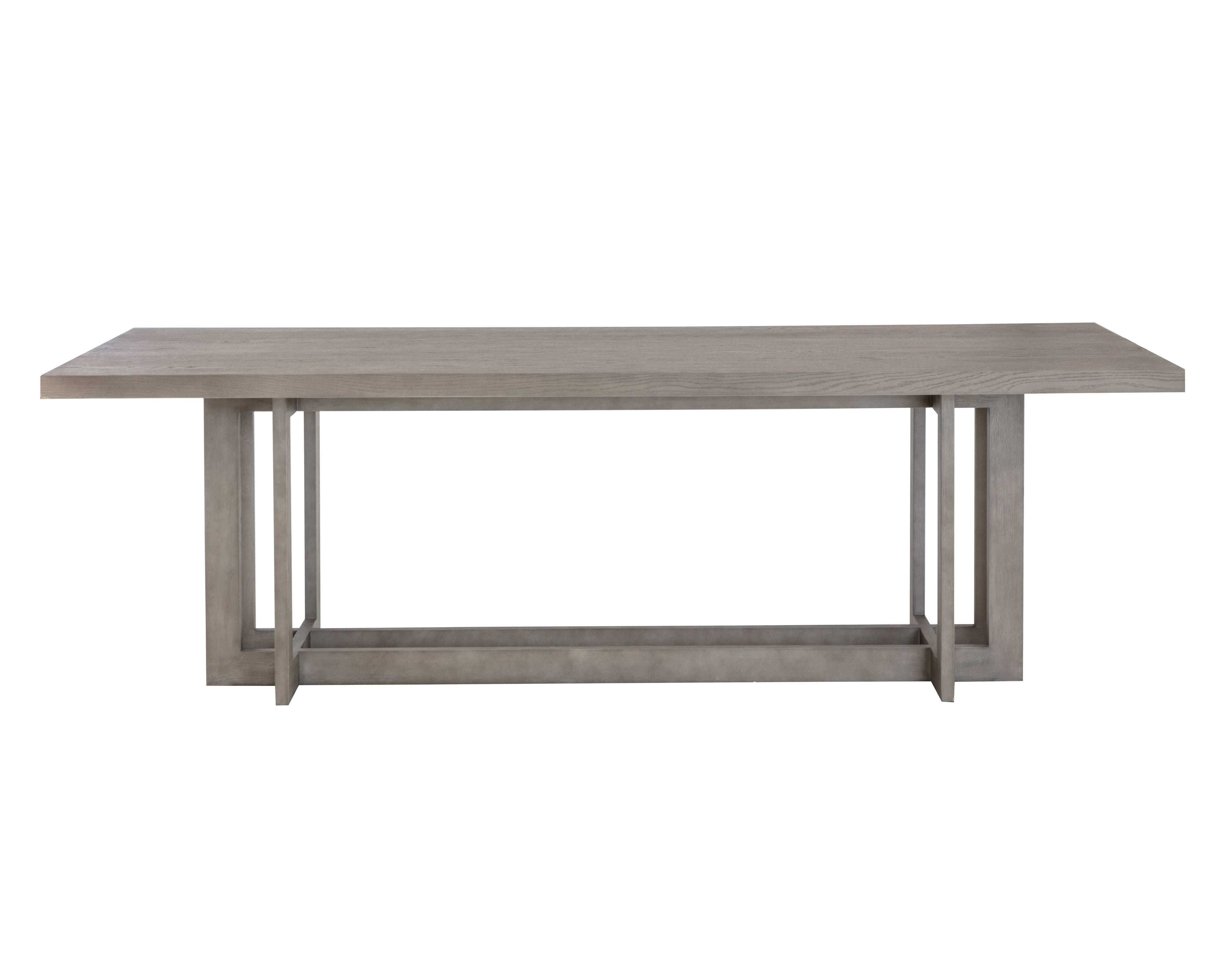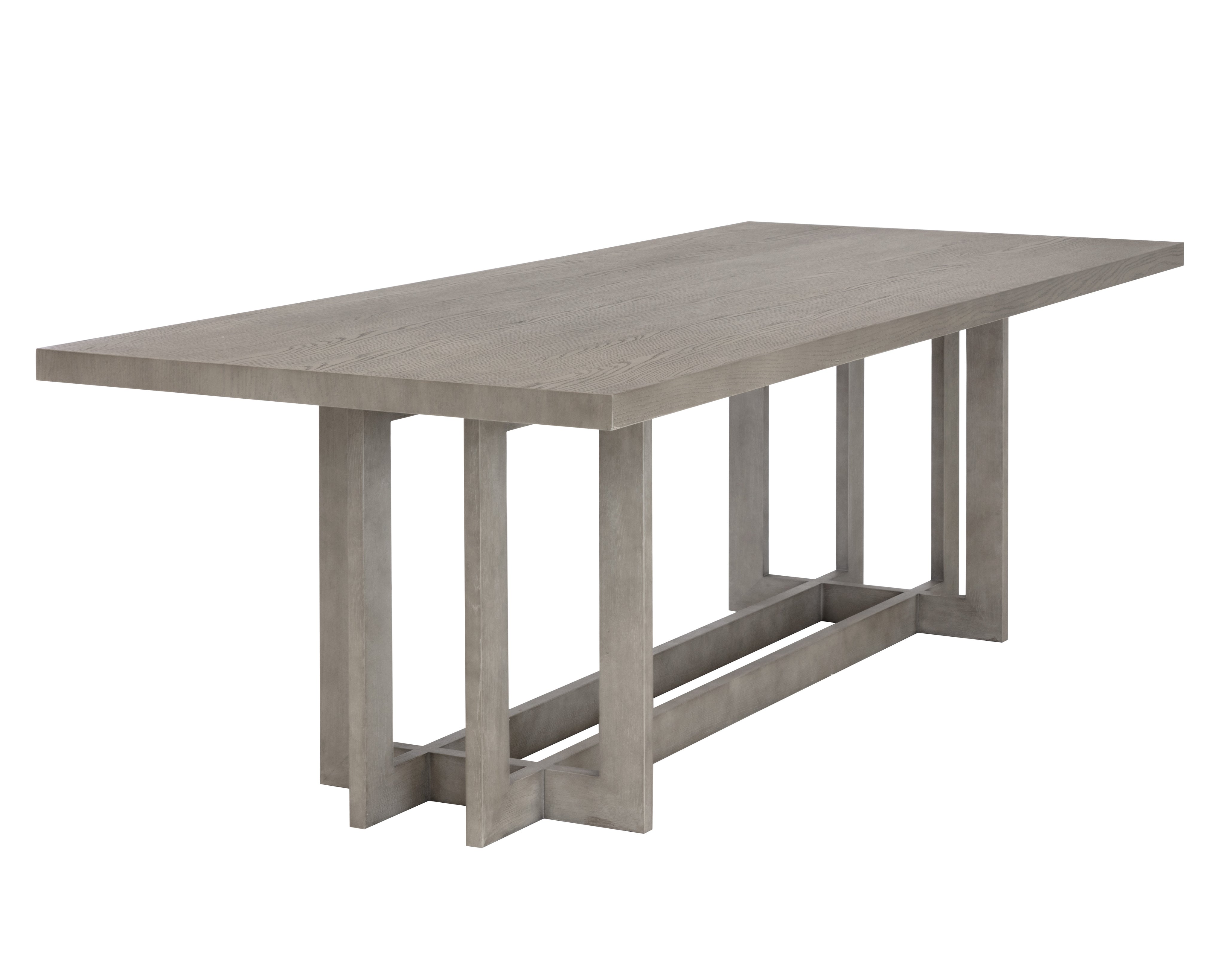 Impress your guests with this eye-catching dining table that features a beautiful linear base that is rich with detail. This wooden table in ash grey oak features a matching oak veneer and is finished with solid oak wood legs. Also available in a natural and dark brown finish. As wood is an organic, porous material, these pieces will contain natural variation of texture and may also exhibit fine indentations and cracks. Wood pieces will also display a disparity of colour and grain, and visible knots and burls that add to the character of each piece.