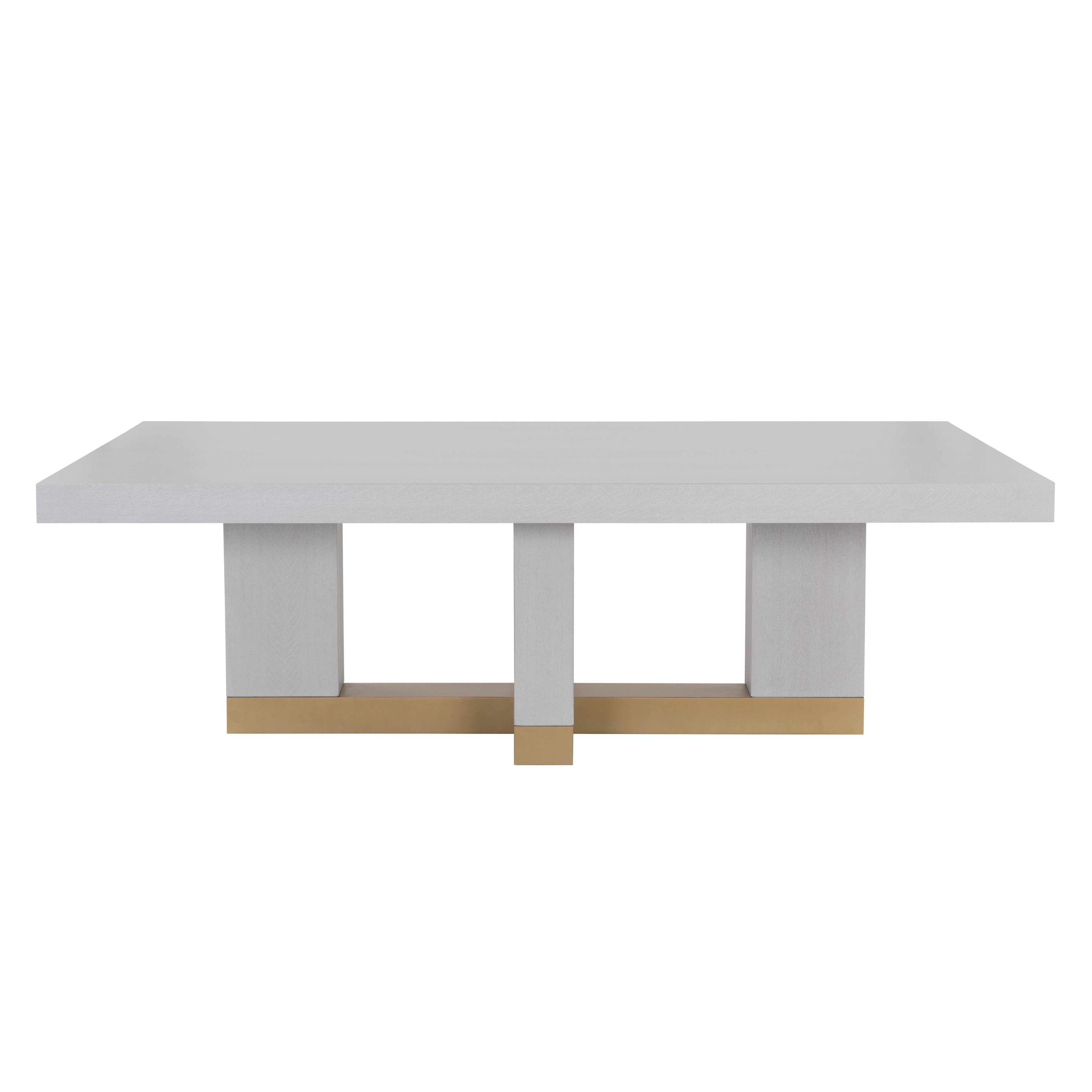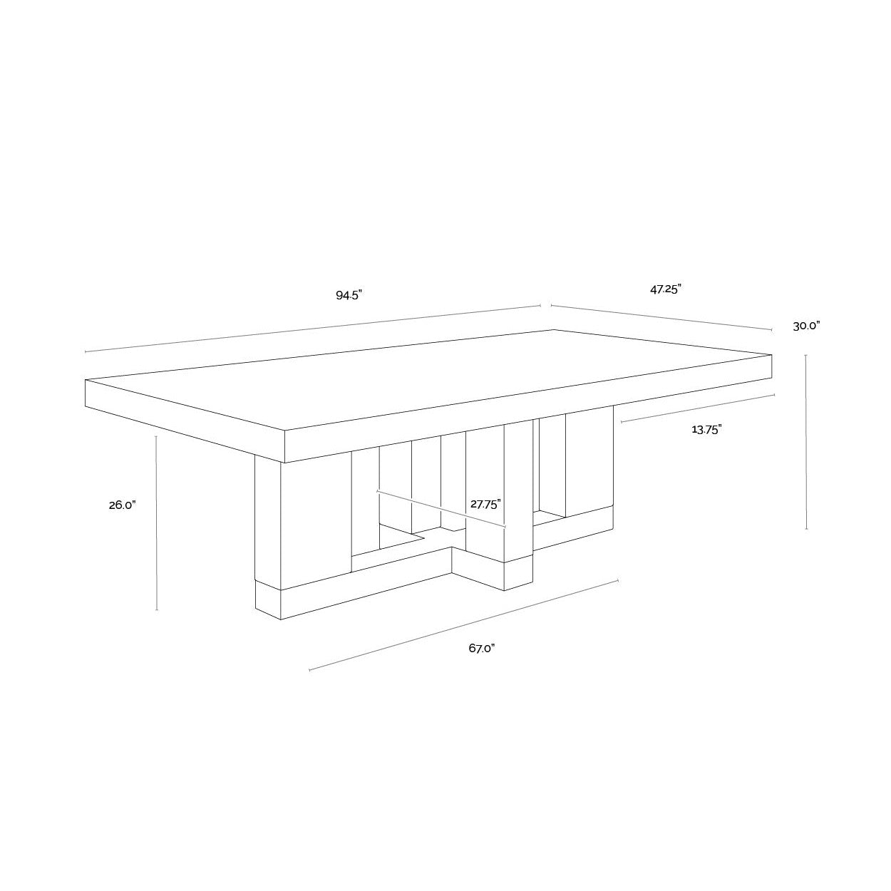 Create a dining space full of futuristic appeal with this contemporary dining table. Features a gaunlet grey wood veneer table top with solid poplar wood legs. Completed with an accenting rustic bronze metal base. As wood is an organic, porous material, these pieces will contain natural variation of texture and may also exhibit fine indentations and cracks. Wood pieces will also display a disparity of colour and grain, and visible knots and burls that add to the character of each piece.