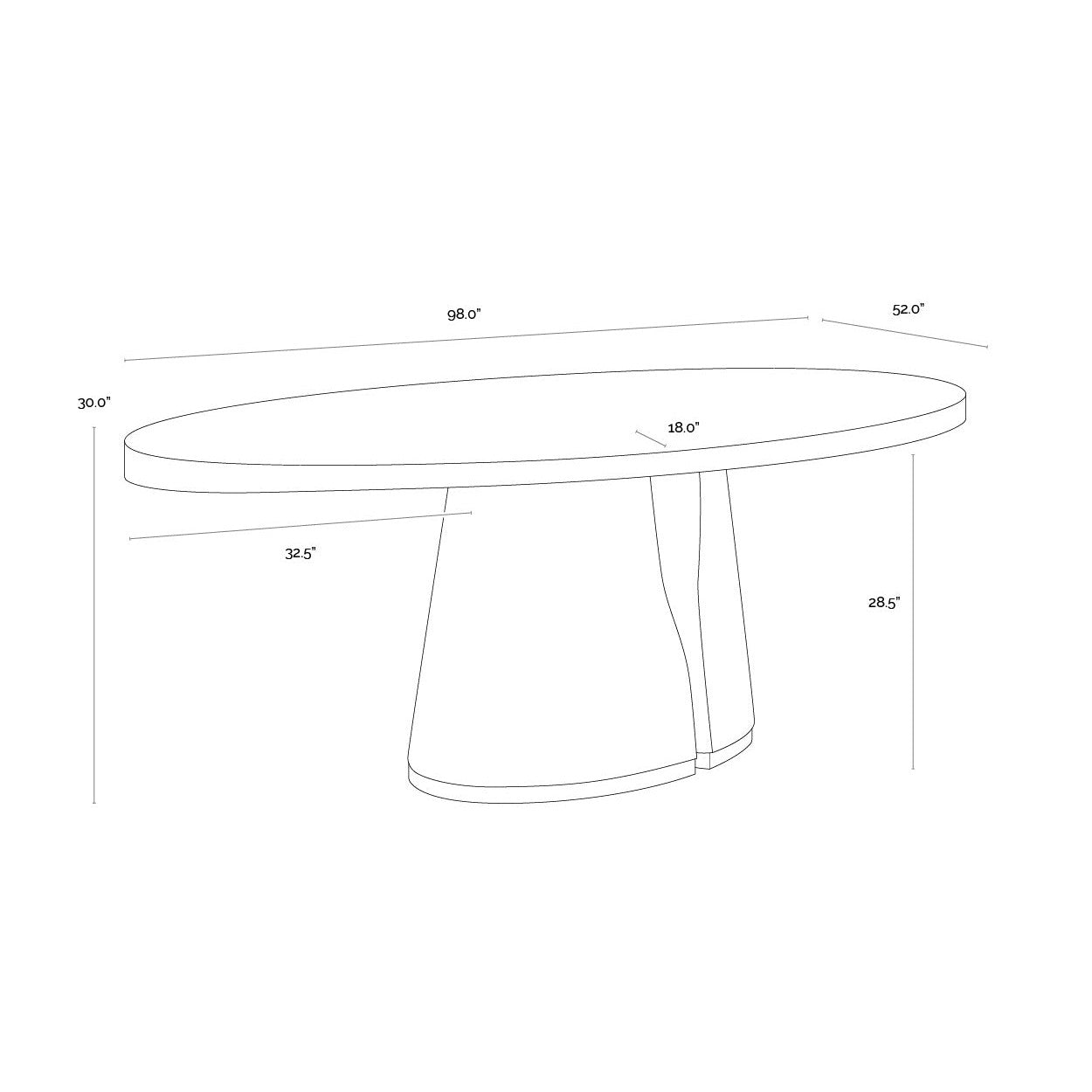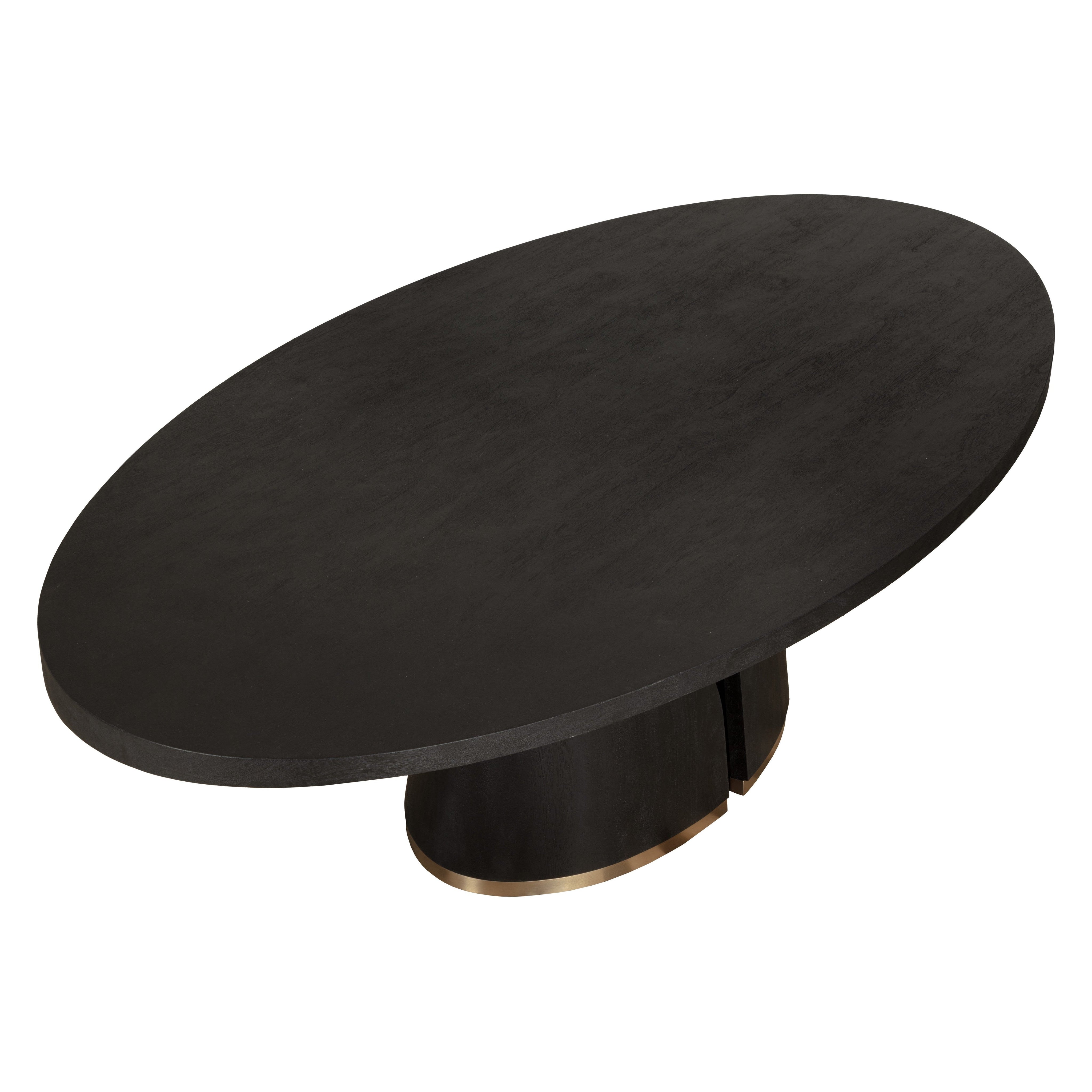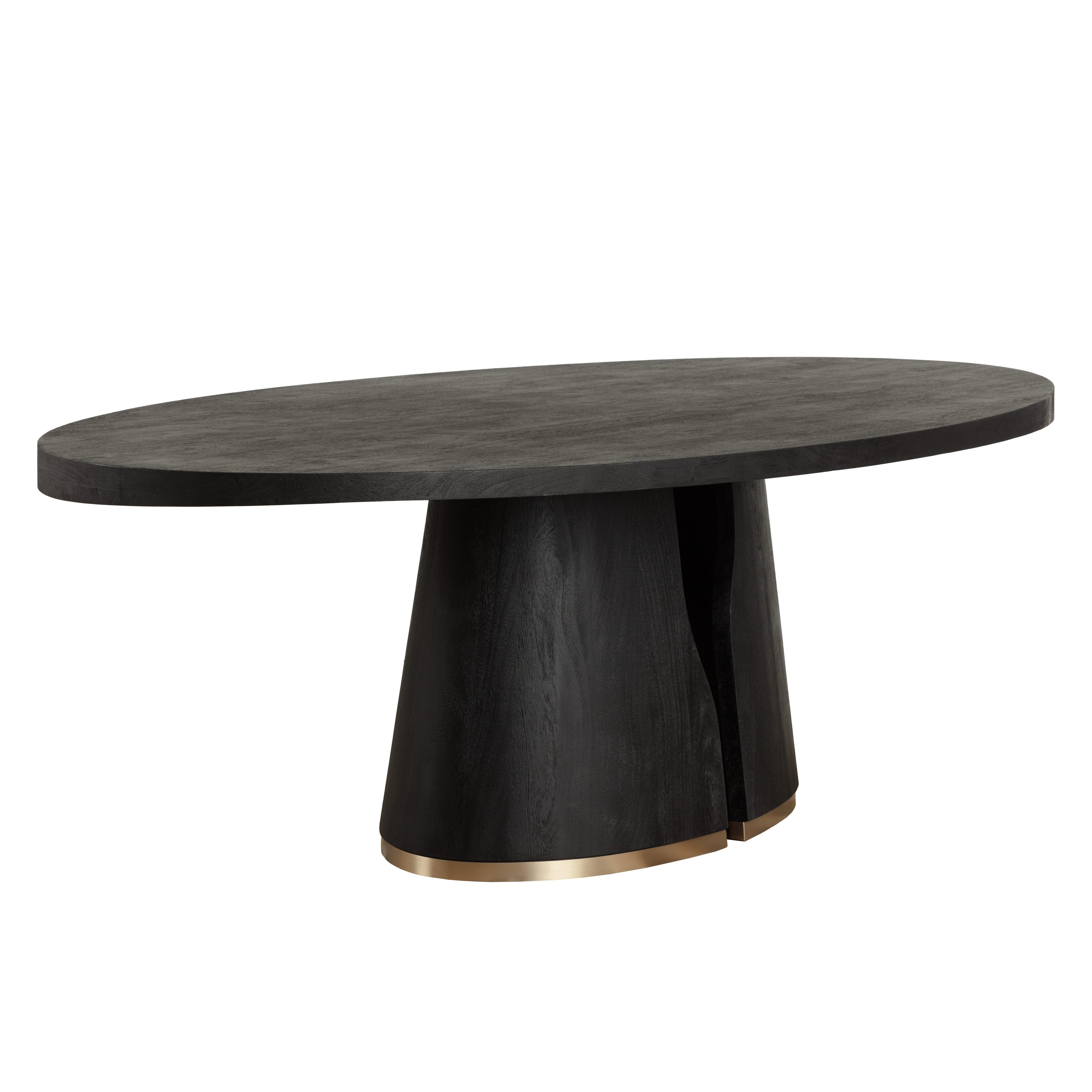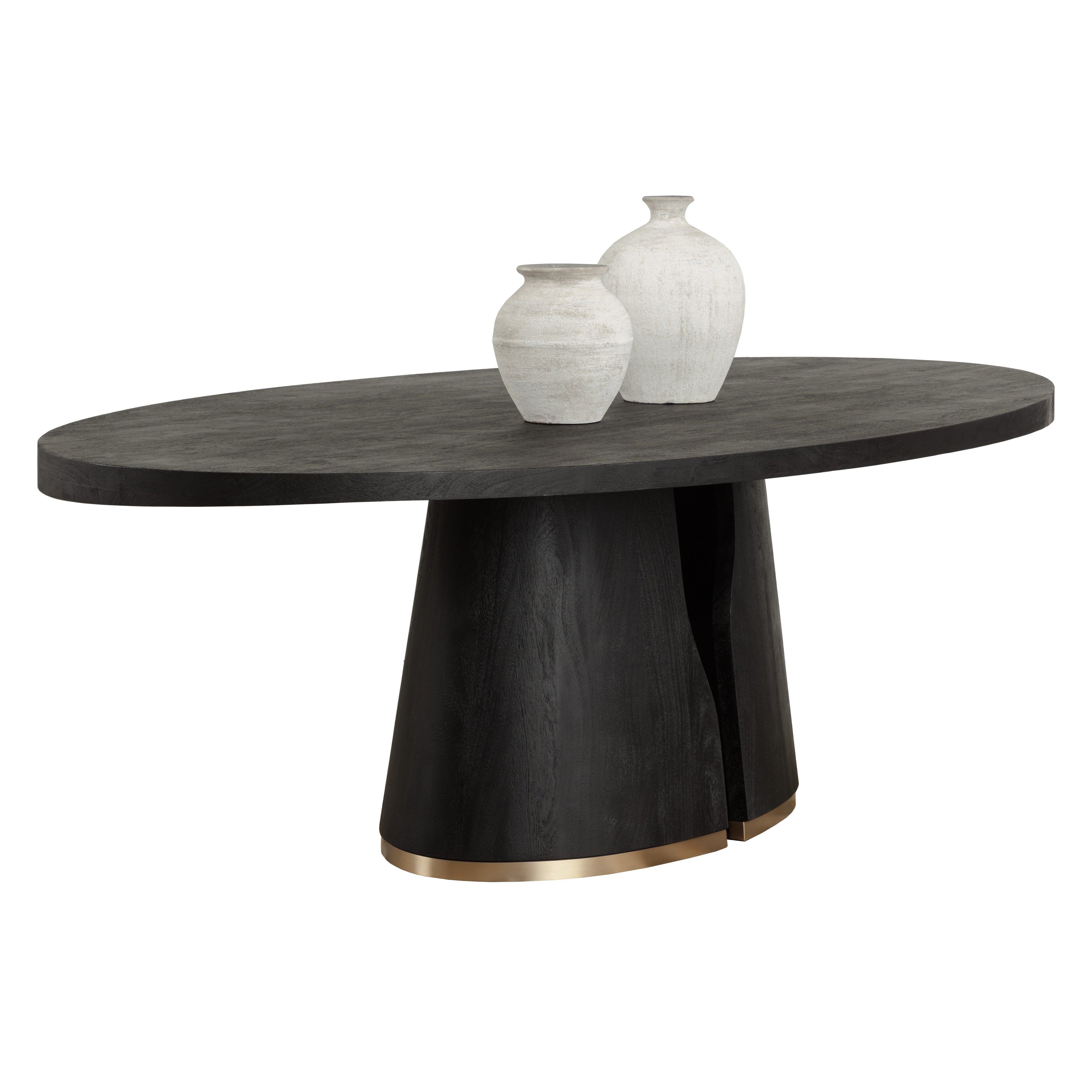 The Tasmin Dining Table brings sculptural elegance to modern dining spaces. Crafted from solid acacia wood, its dual pedestal base draws the eye with softly flared silhouettes. A brushed gold trim along the base offers a subtle hint of glamour.
