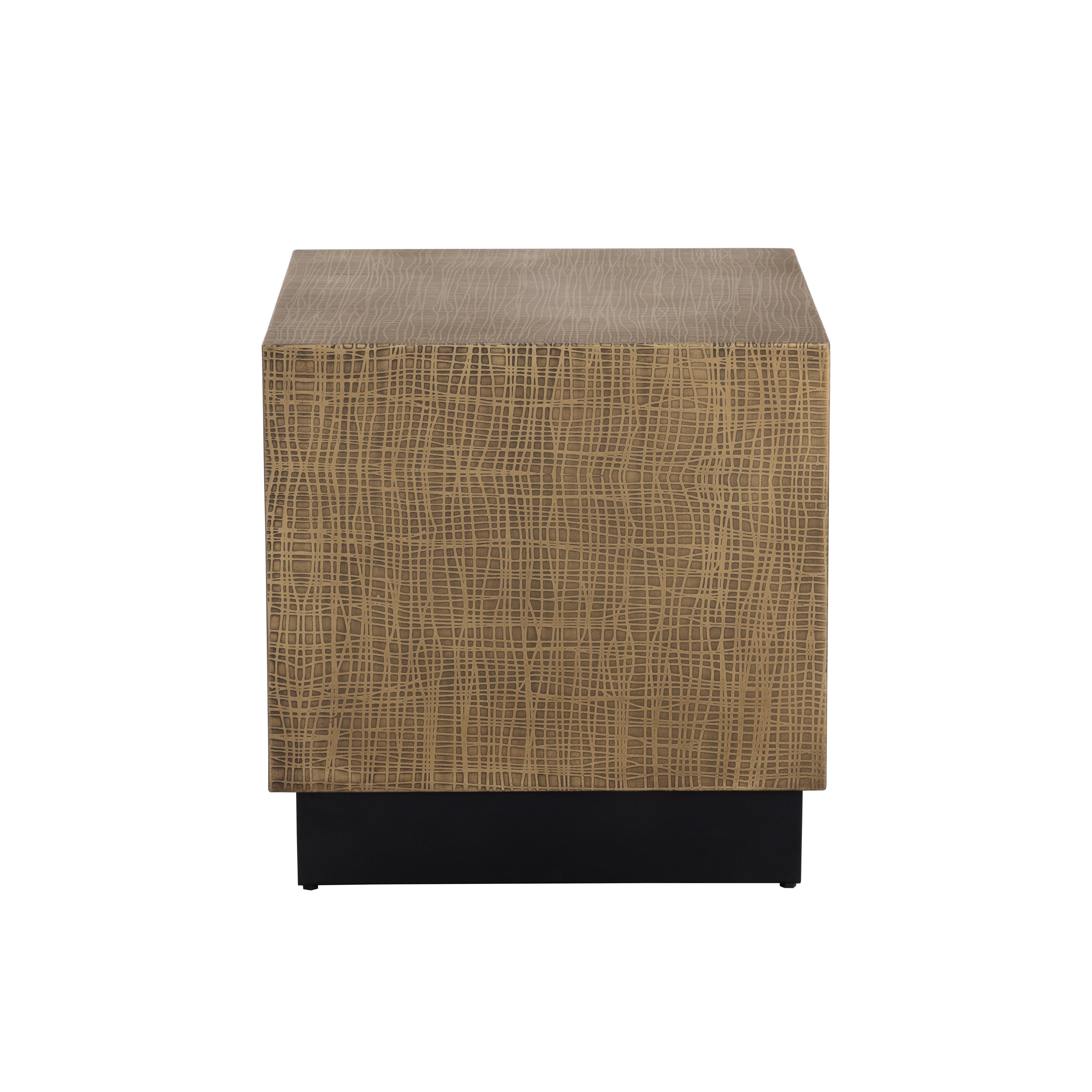 The Albans Side Table celebrates the beauty of handcrafted design. Constructed from iron with an burnished brass finish, the structured tabletop features an intricate etched design. A black powder-coated iron base completes the look. Made in India. With refined craftsmanship, this design was brought to life by skilled local artisans. Due to the nature of handcraftsmanship, unique imperfections such as fissures, markings and variations in colour and shape are welcomed and appreciated characteristics for a truly one-of-a-kind piece.