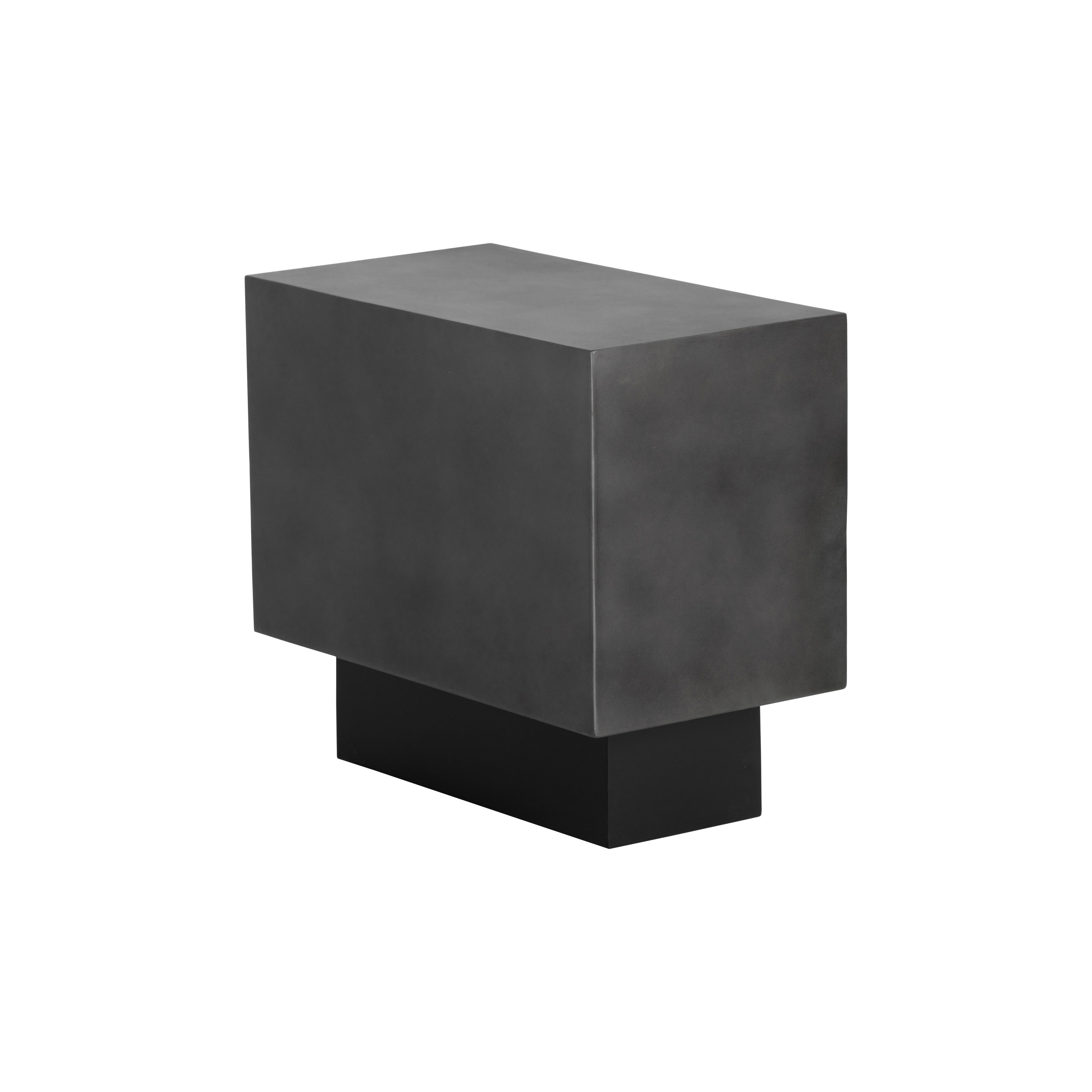 Turn heads with this contemporary, rectangular end table that features a bold design. Crafted with a gunmetal steel top and a matte black powder coated steel base. Made in India. With refined craftsmanship, this design was brought to life by skilled local artisans. Due to the nature of handcraftsmanship, unique imperfections such as fissures, markings and variations in colour and shape are welcomed and appreciated characteristics for a truly one-of-a-kind piece.