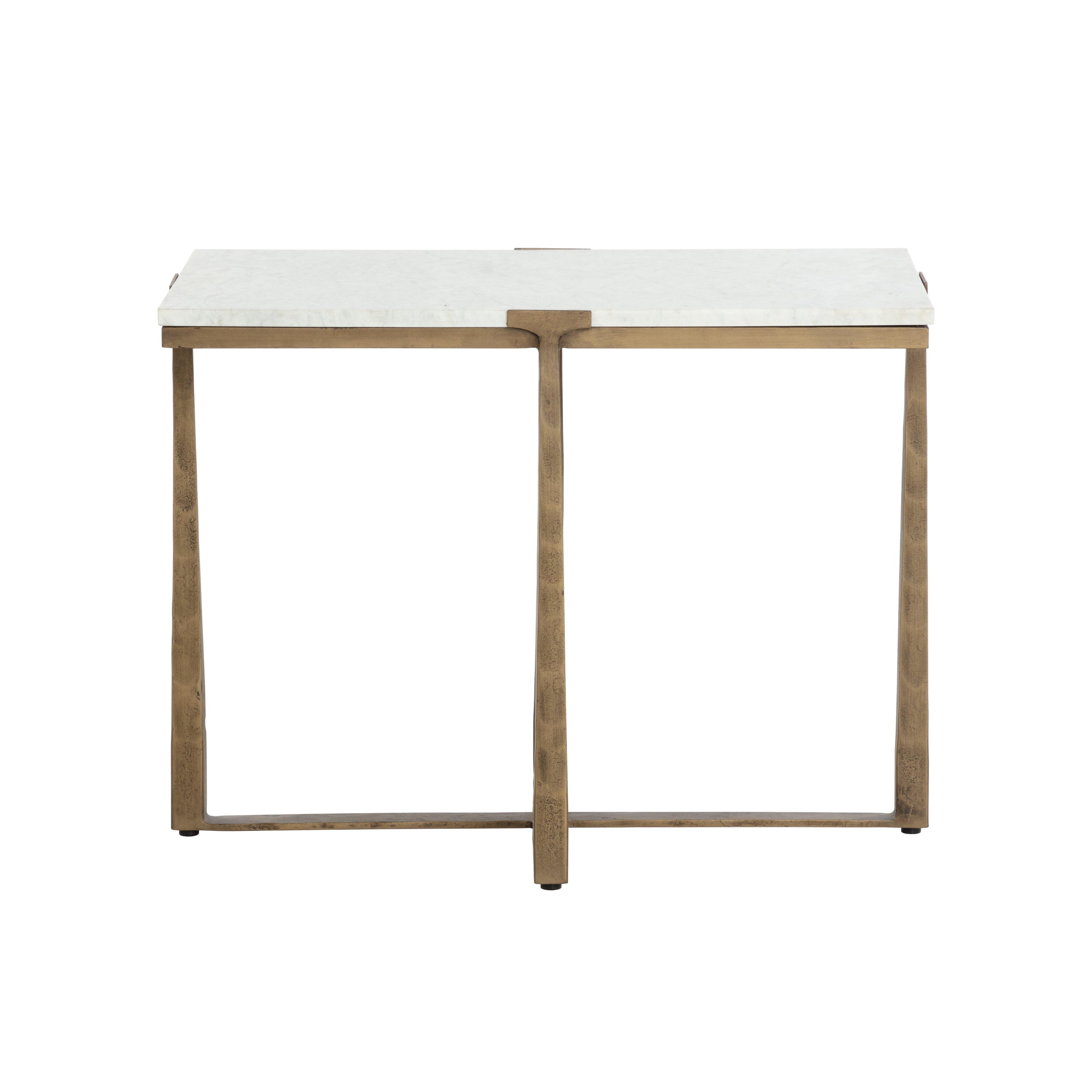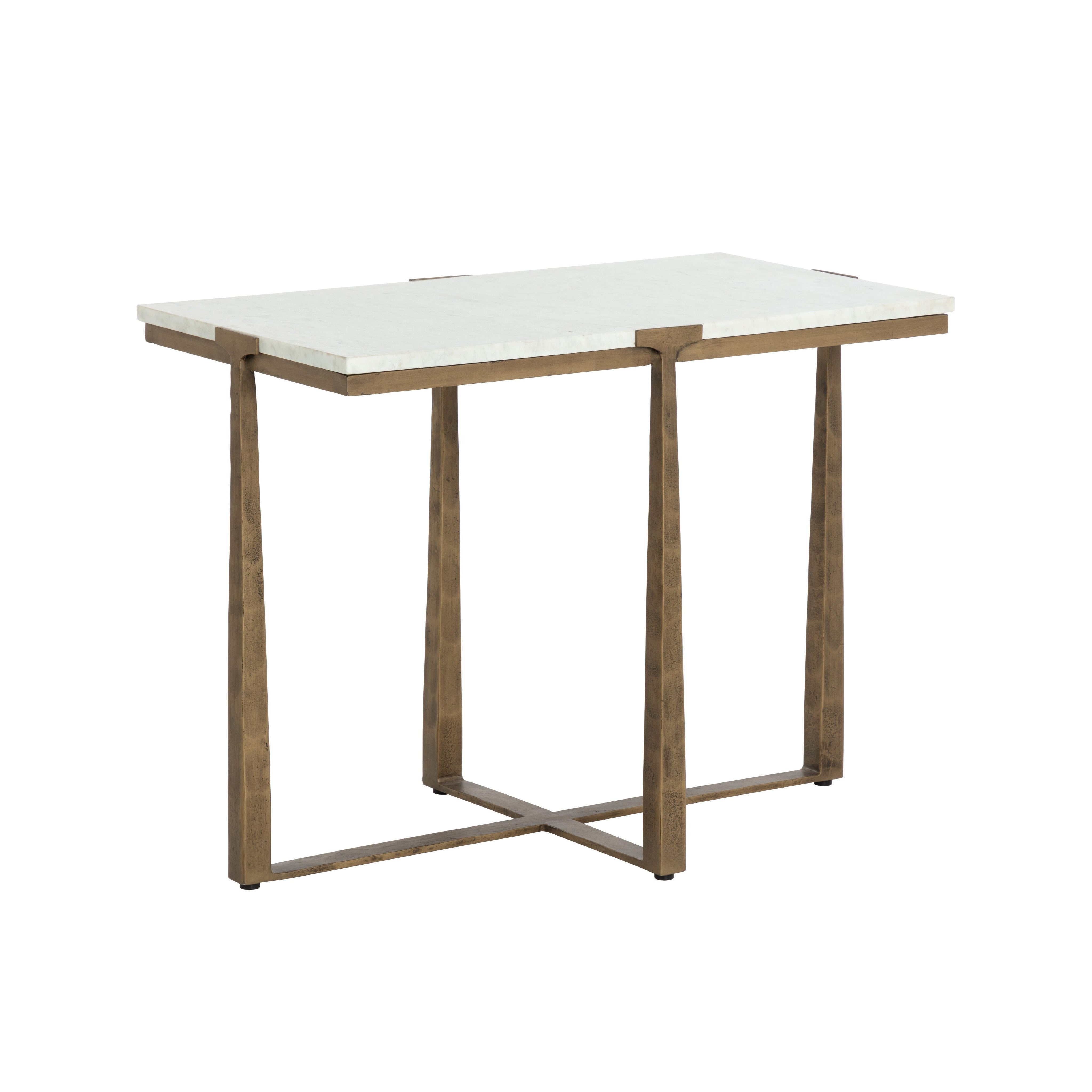 Inspired by mid-century design, the Cowell Side Table features a chic, minimal aesthetic that will elevate any room. The powder-coated antique brass finished legs give off a rustic sensibility that contrasts with the cool white marble top. As marble is a natural material, unique veining, pitting, fissures, micro-cracks and colour variations are all characteristics that add to the uniqueness and beauty of each piece. Made in India. With refined craftsmanship, this design was brought to life by skilled local artisans. Due to the nature of handcraftsmanship, unique imperfections such as fissures, markings and variations in colour and shape are welcomed and appreciated characteristics for a truly one-of-a-kind piece.