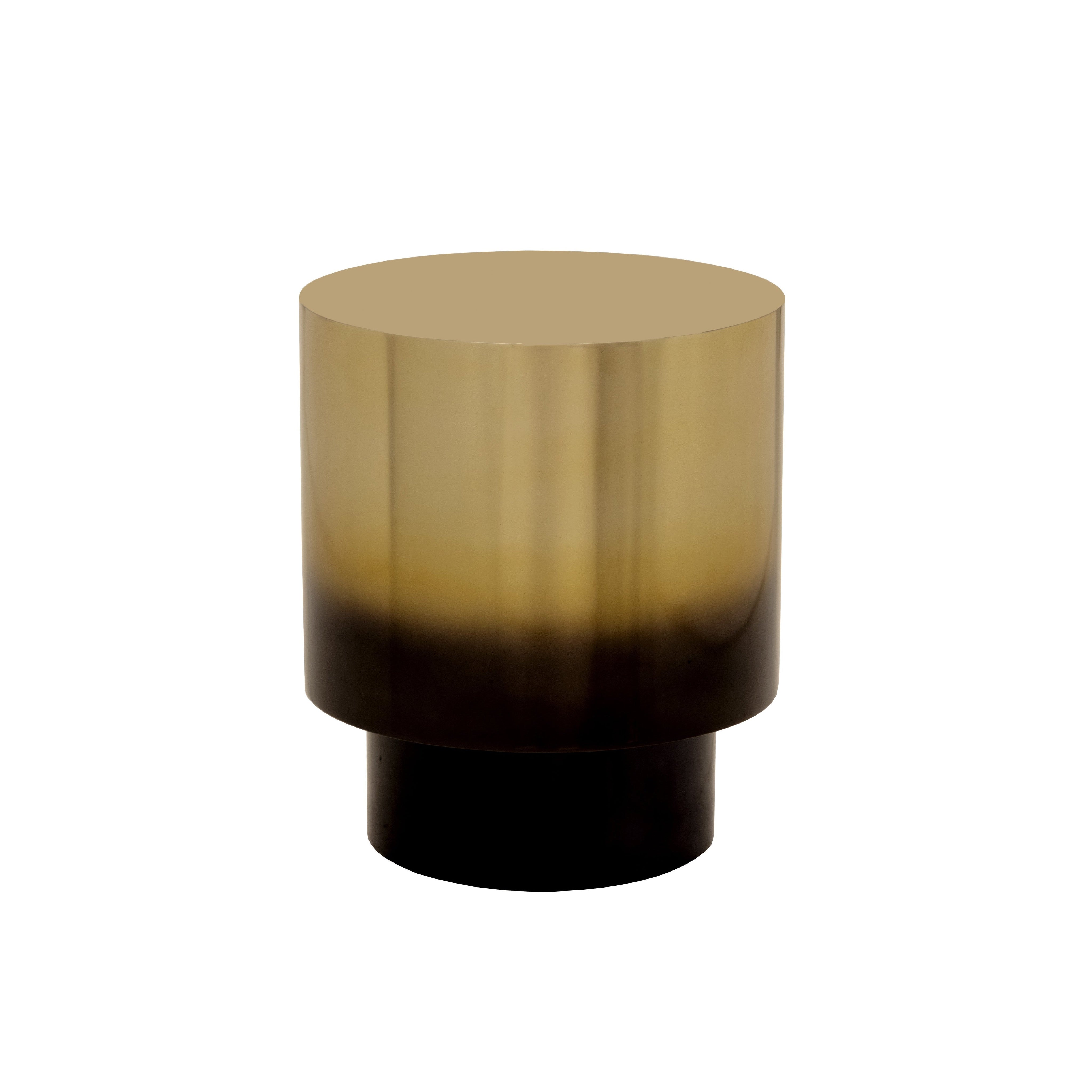 The perfect accent piece for any space, this end table is made to stand out. Features a stainless steel composition with a polished ombré finish in antique brass and black. Coordinating coffee table also available. Made in India. With refined craftsmanship, this design was brought to life by skilled local artisans. By nature, these materials develop unique imperfections such as fissures, markings and colour variations for a truly one-of-a-kind piece.