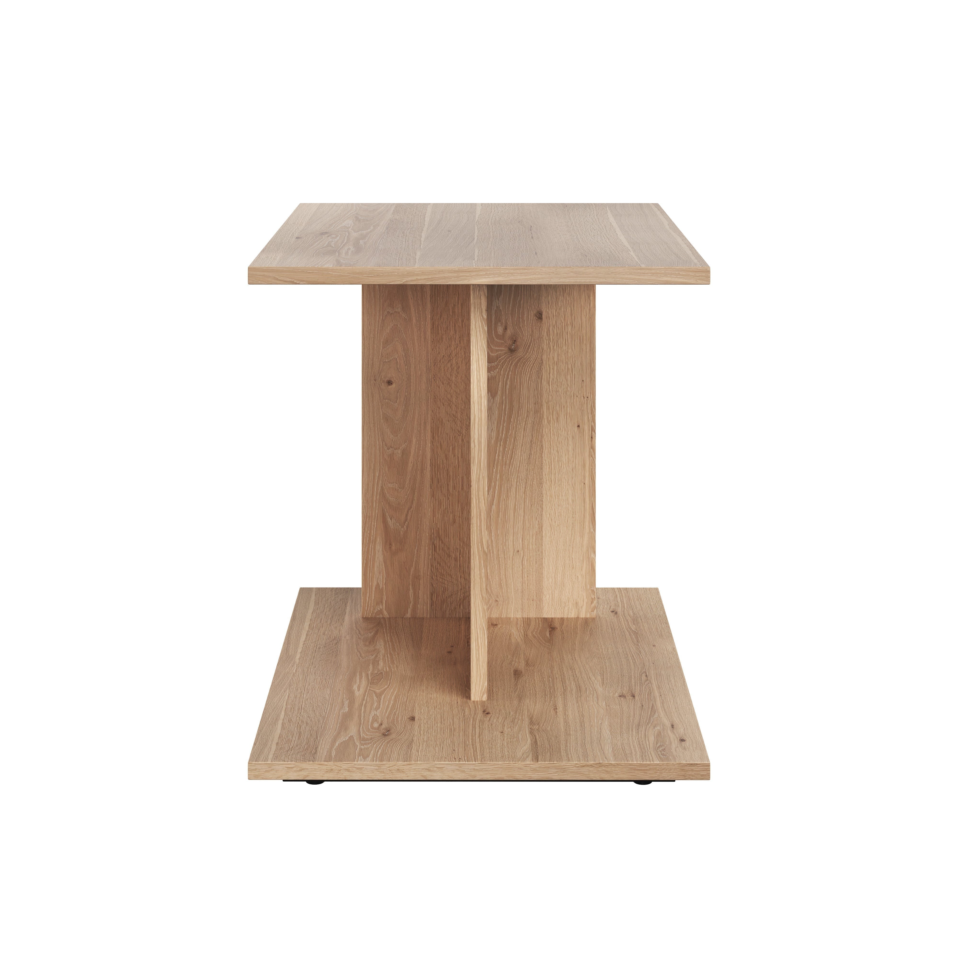Introduce an earthy element to any living room space with this rectangular end table made from rustic oak wood. Features a solid oak wood veneer in a natural finish. Coordinating console and coffee tables also available. As wood is an organic, porous material, these pieces will contain natural variation of texture and may also exhibit fine indentations and cracks. Wood pieces will also display a disparity of colour and grain, and visible knots and burls that add to the character of each piece.