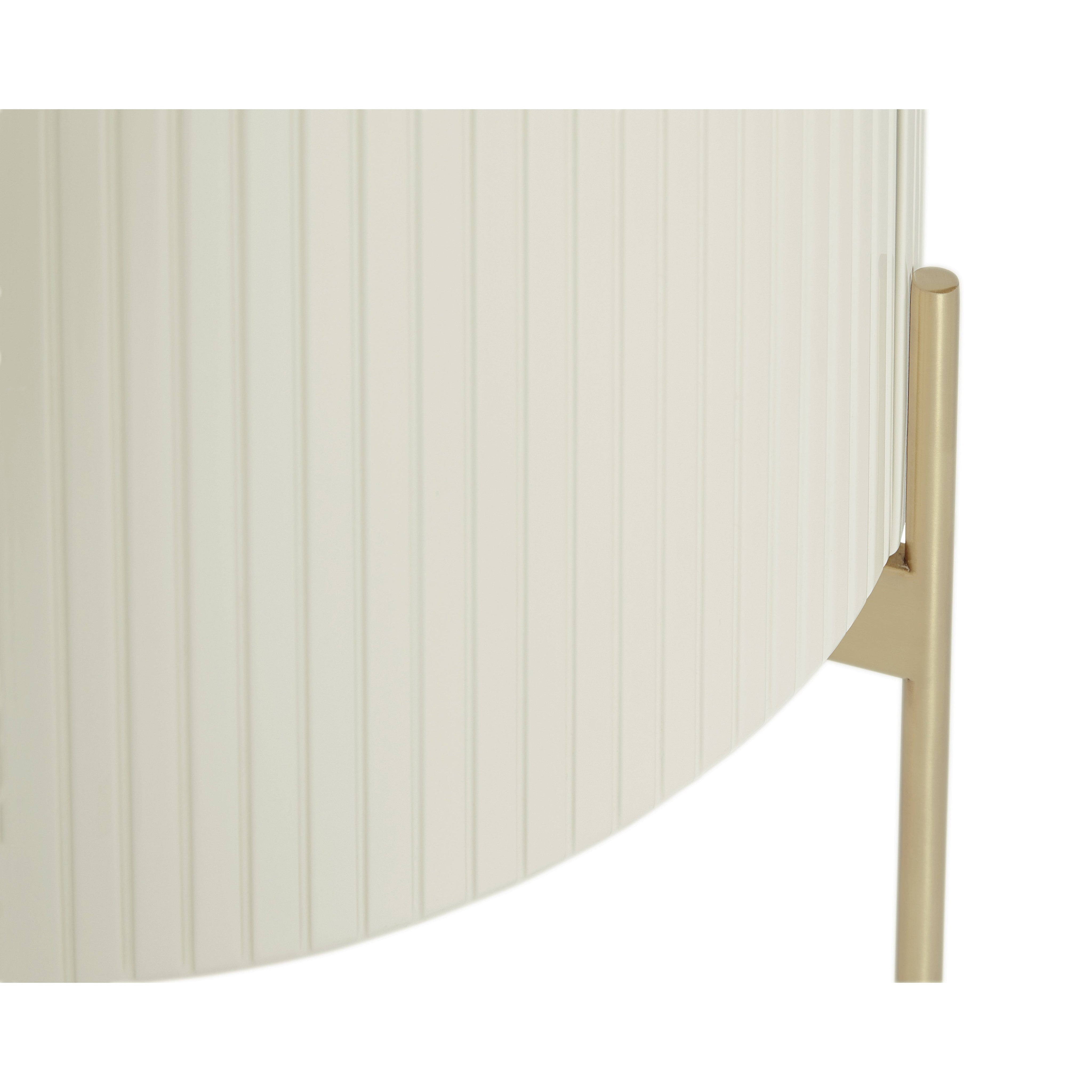 This luxurious end table will bring a sculptural spirit to any space. The curved frame, finished in high gloss cream, is contrasted with intricate vertical reeding.