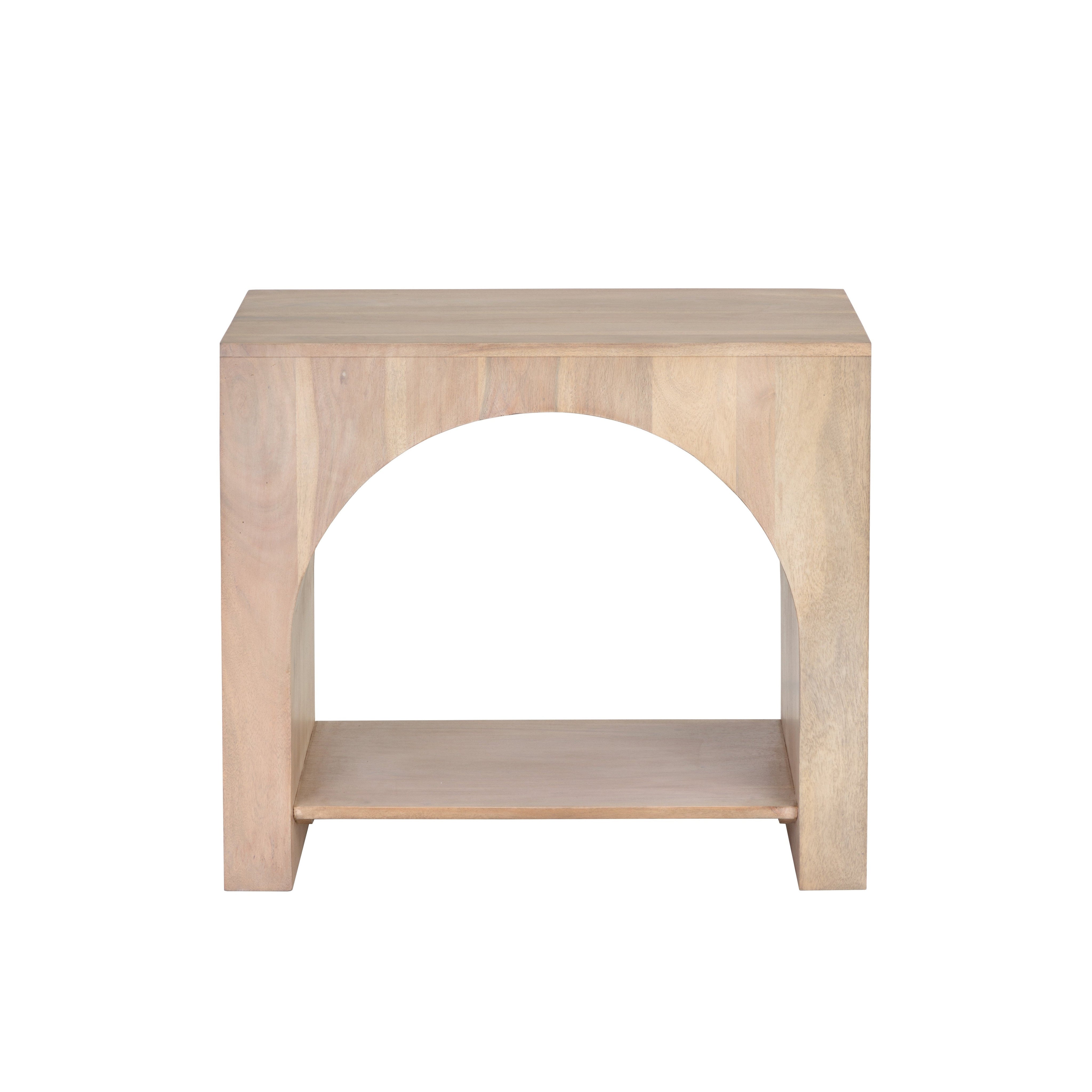 With a captivating arch design, this modern side table illustrates the beauty of simplicity. Crafted from solid light acacia wood with a whitewash finish. Coordinating console table also available. As wood is an organic, porous material, these pieces will contain natural variation of texture and may also exhibit fine indentations and cracks. Wood pieces will also display a disparity of colour and grain, and visible knots and burls that add to the character of each piece. Made in India. With refined craftsmanship, this design was brought to life by skilled local artisans. Due to the nature of handcraftsmanship, unique imperfections such as fissures, markings and variations in colour and shape are welcomed and appreciated characteristics for a truly one-of-a-kind piece.