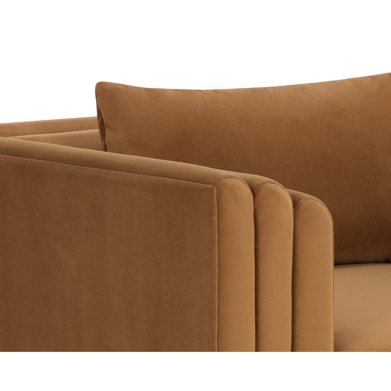 Artfully designed with soft geometric lines, the Kira Armchair evokes a distinctly modern style. Fully upholstered in our meg gold fabric, this sofa is velvety soft.