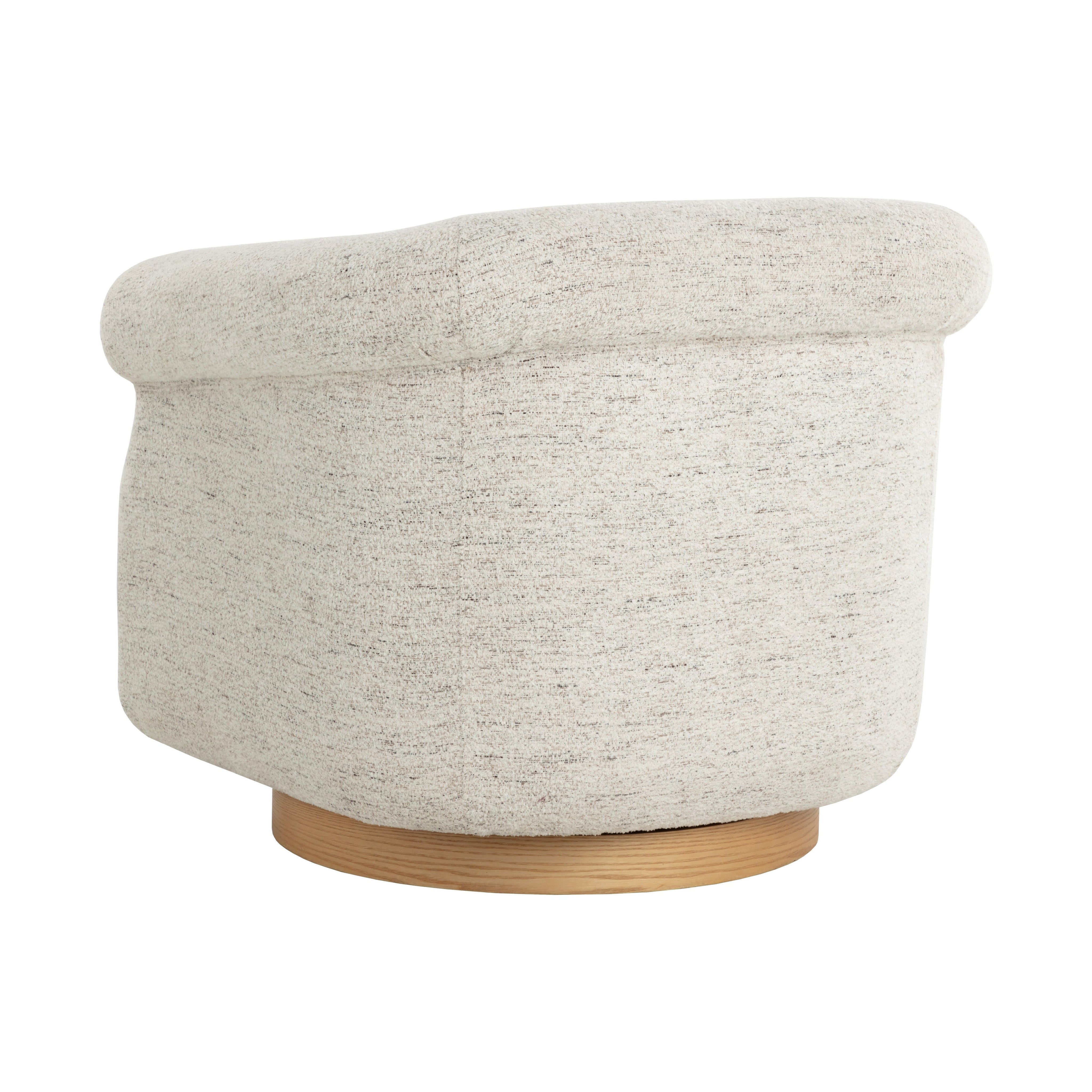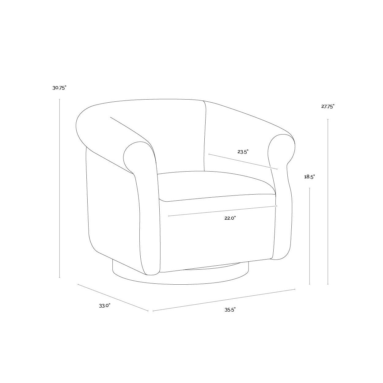 The Libby Swivel Lounge Chair is a high-style iteration of modern invention. Upholstered in hailey moon fabric, and with a polyurethane foam fill back and seat and swivel base, this attractive and shapely armchair brings minimal design to centre stage.