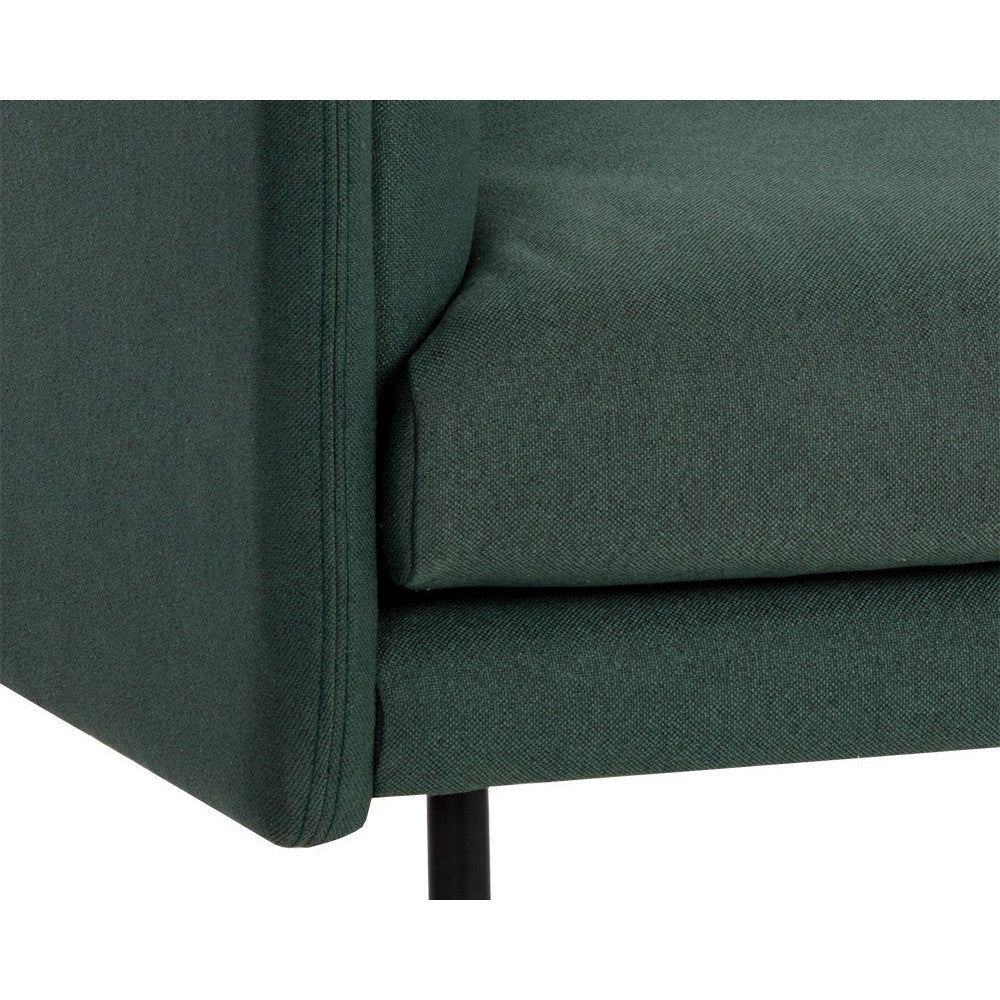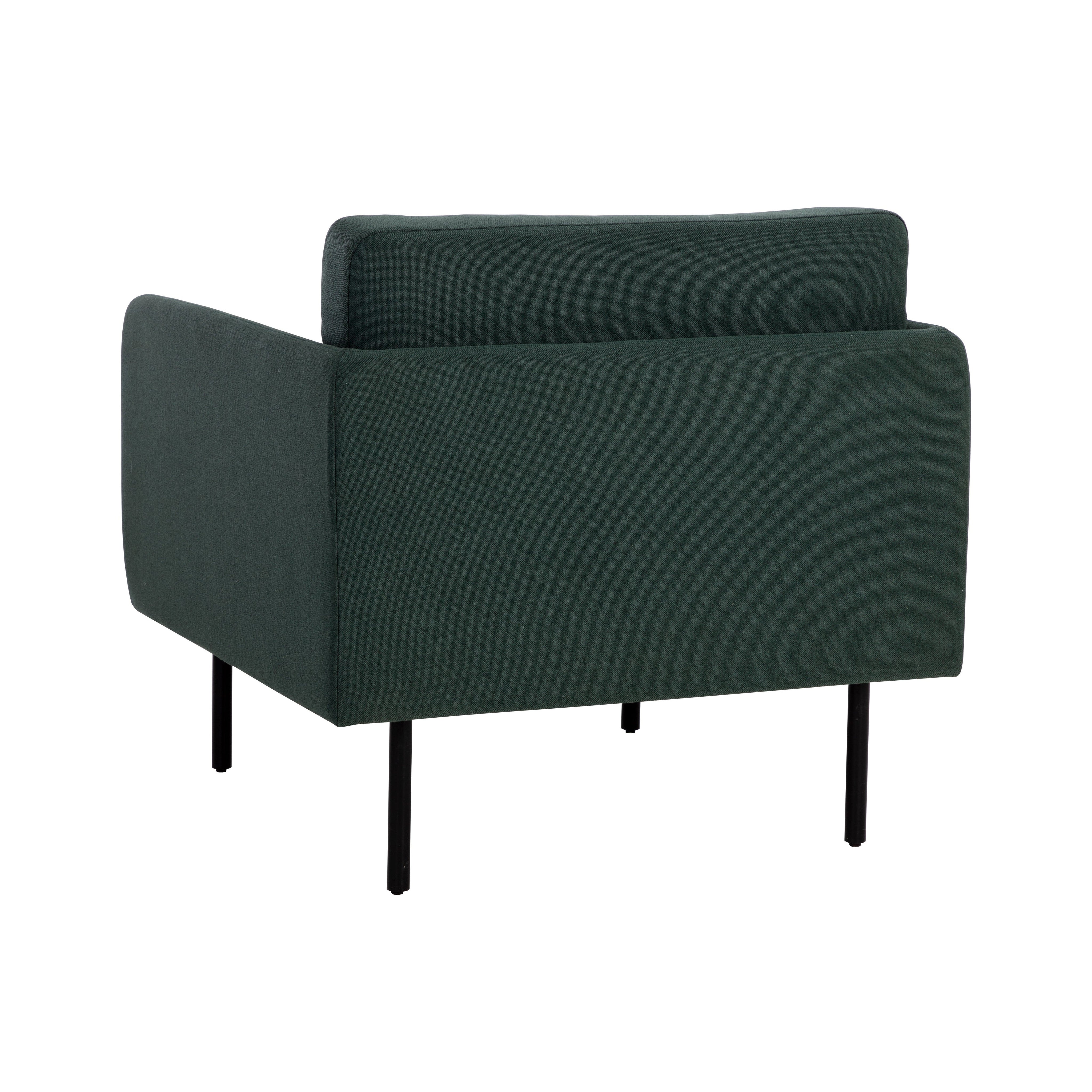 A classic and comfortable armchair that takes inspiration from mid-century designs. Stocked in mina pine and ivory fabrics with generously-cushioned seating. Completed with black metal legs. Coordinating sofa also available.