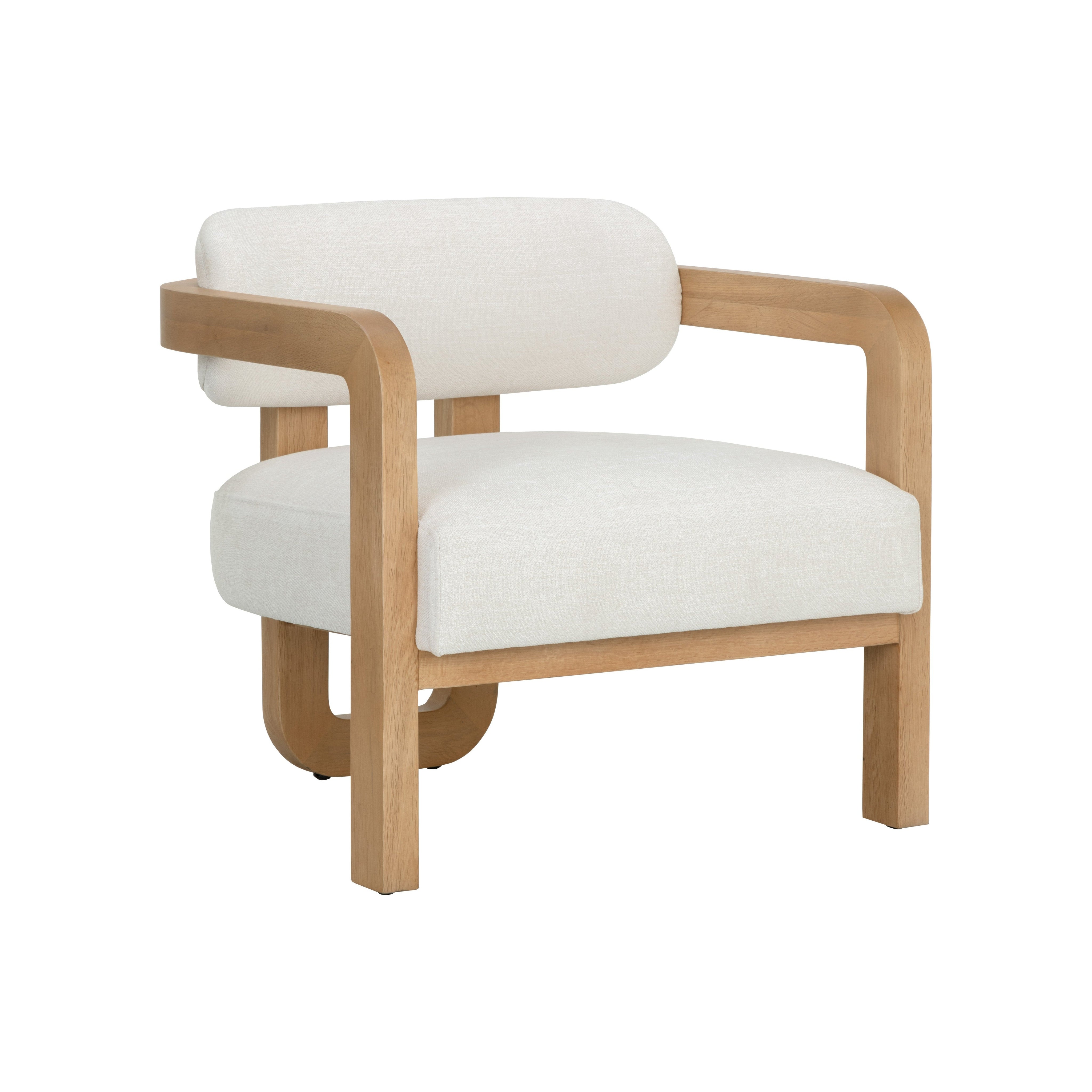 The eye-catching silhouette of the Madrone Lounge Chair will stun from all angles. The curved lines of the three-legged brown oak wood frame lend a statuesque presence to any room. The low back seat is upholstered in heather ivory fabric for luxurious comfort. Performance fabric is moisture repellent, durable and easy to clean. As wood is an organic, porous material, these pieces will contain natural variation of texture and may also exhibit fine indentations and cracks. Wood pieces will also display a disparity of colour and grain, and visible knots and burls that add to the character of each piece.