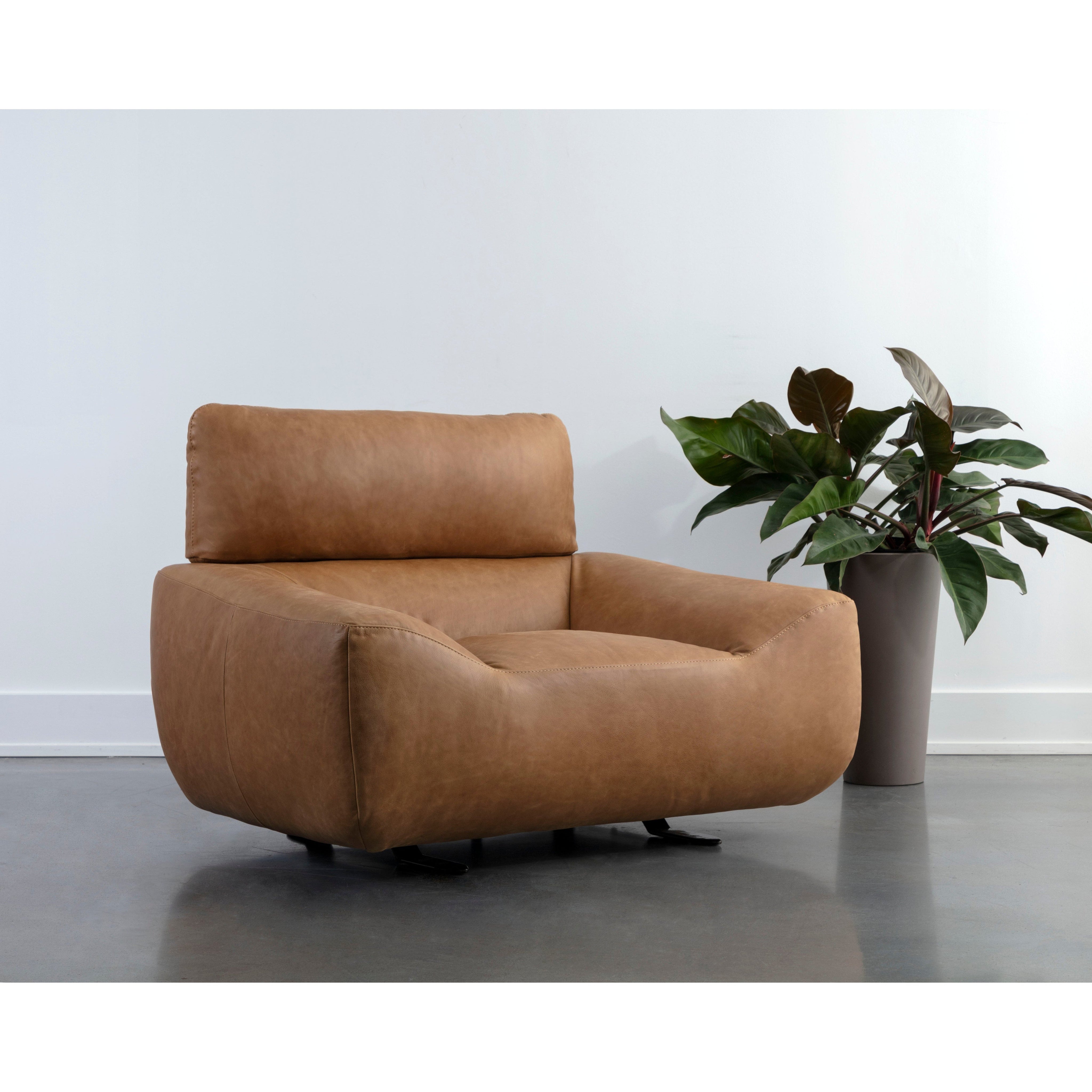 The Paget Glider Lounge Chair highlights the beauty of contemporary design. Upholstered in our camel Italian leather, this glider lounge chair invites you to indulge in comfort. Features a locking mechanism at the back. Handle with Care: This design has been crafted with leather. Leather is a natural material; as such, colour variations, markings, wrinkles, grooves and light scratches are acceptable and appreciated characteristics. No two pieces are alike. Visit our Product Care page for more information on how to ensure the lasting beauty of this piece.